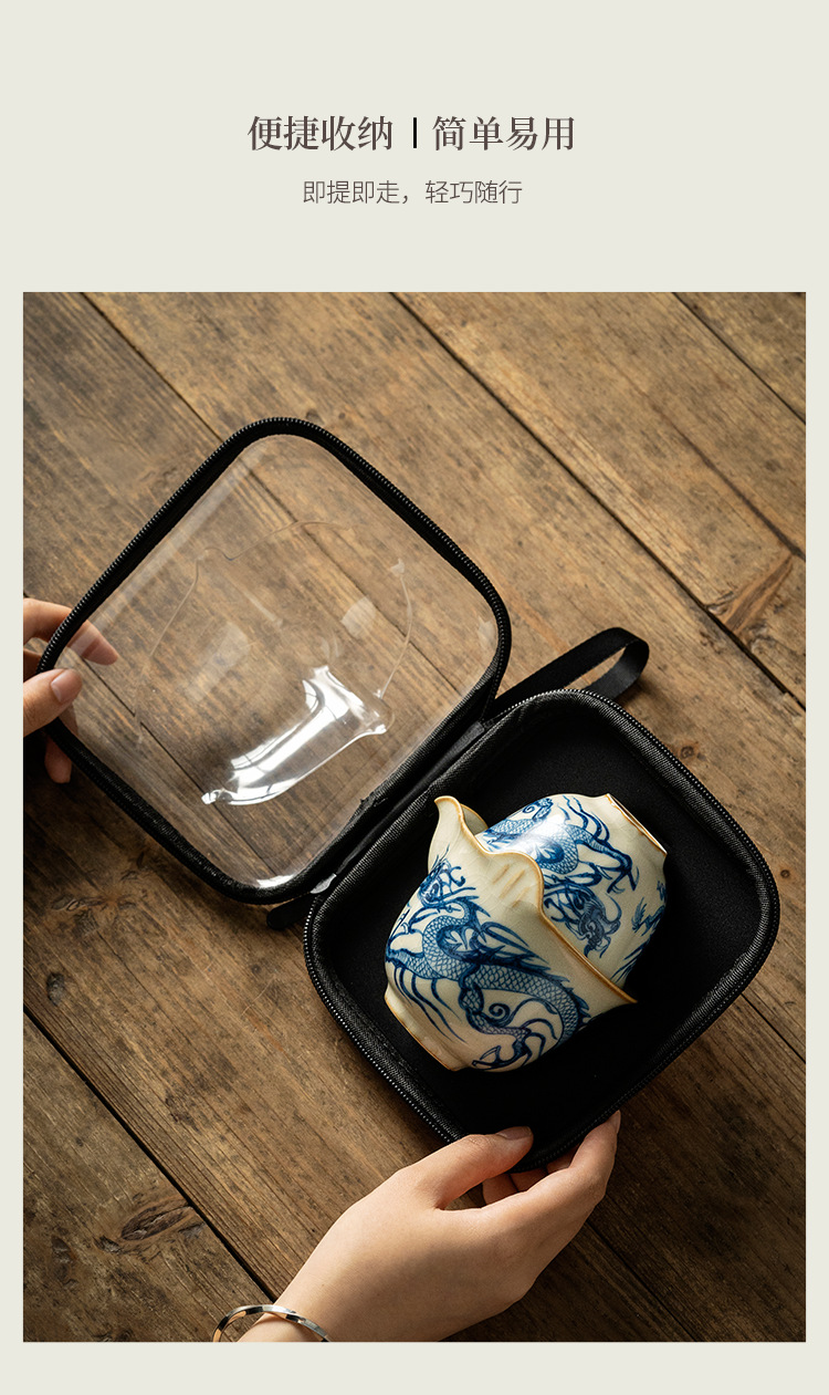 Ruyao Kuaike Cup Bộ trà du lịch Một ấm Ba cốc Bộ trà cắm trại ngoài trời Thiết bị uống trà gốm di động