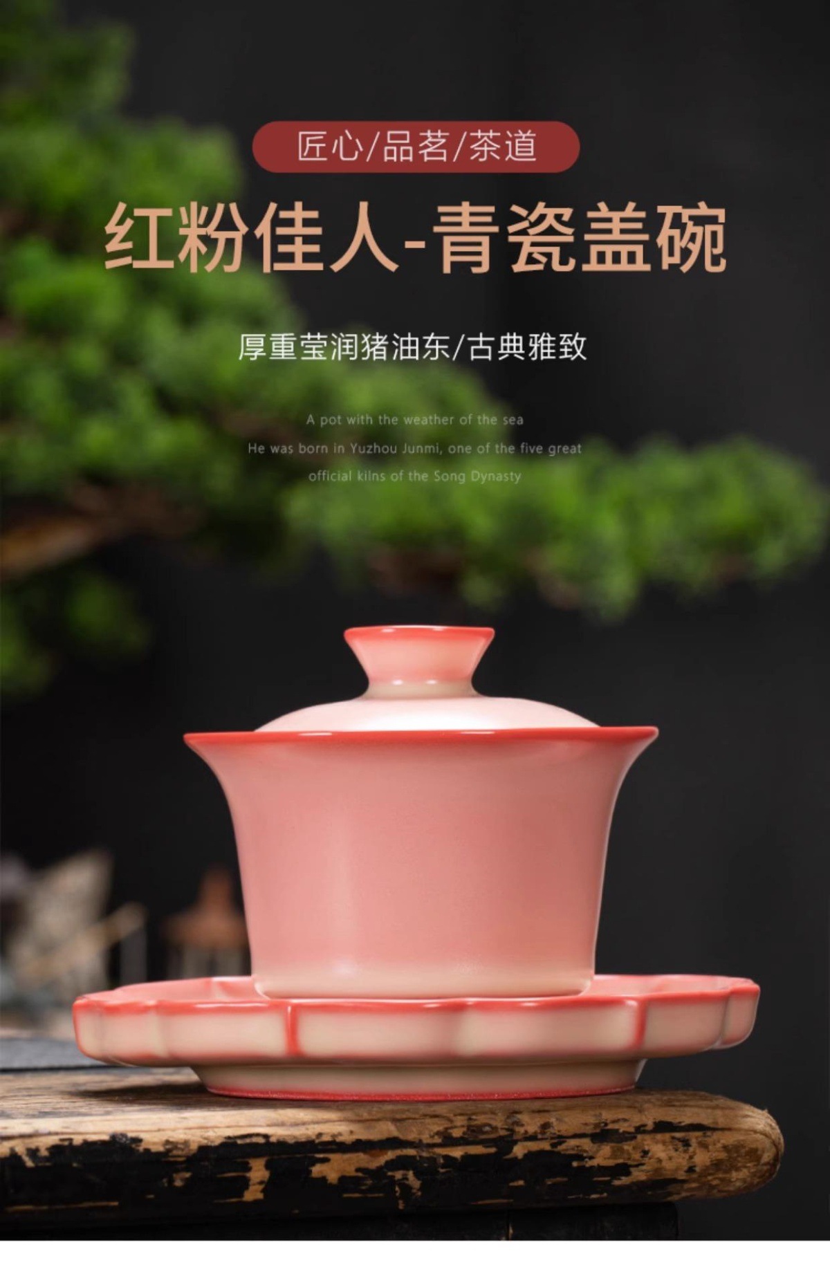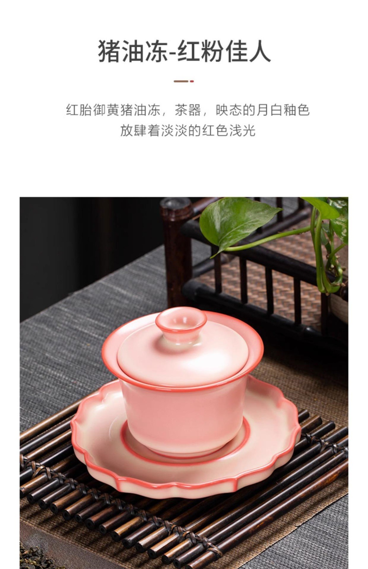 Ruyao mỡ lợn đông lạnh bột đỏ phụ nữ móng ngựa nắp bát carmine phụ nữ pha trà bát Li Huizuo 2025 sản phẩm mới