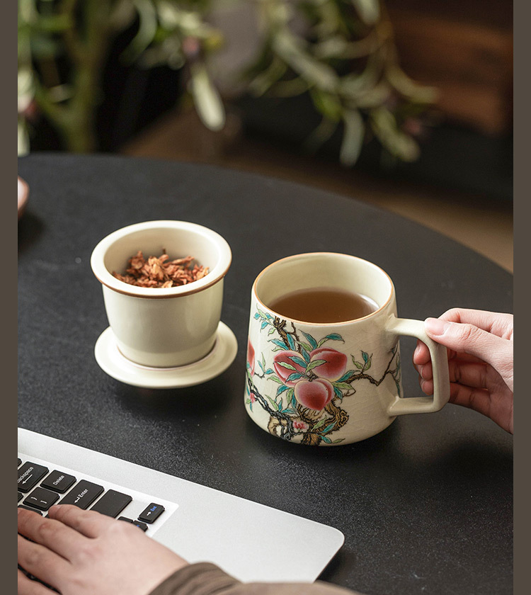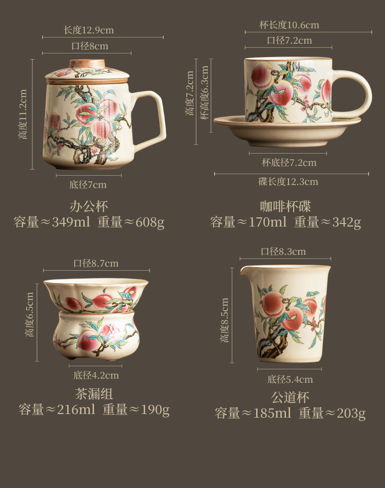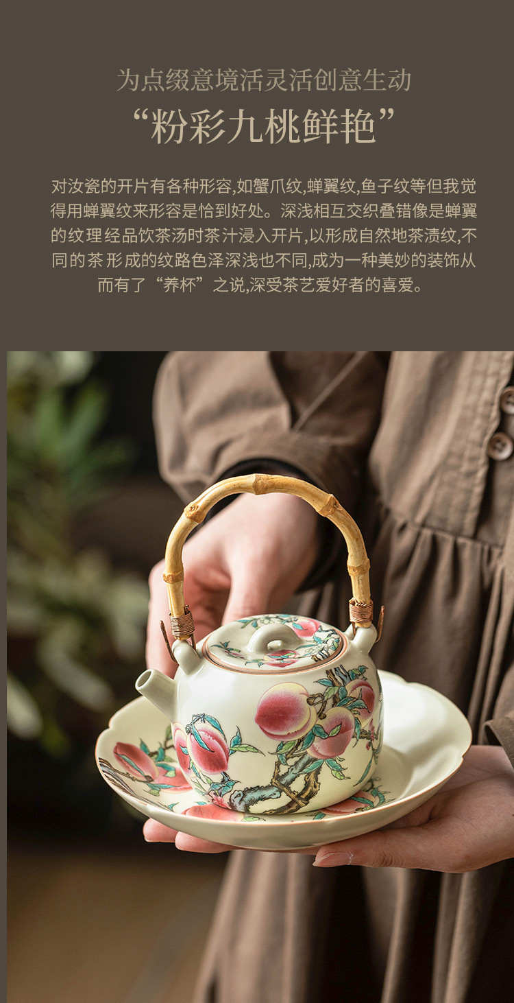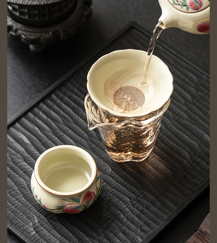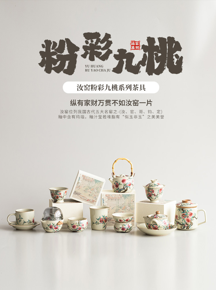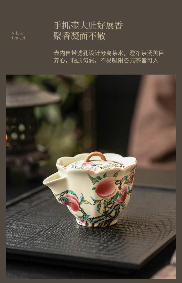 Ruyao Pastel Nine Peach Bộ ấm trà Daquan Ấm trà lọc trà tách cà phê có nắp bát gốm sứ Kung Fu Cốc chủ nhân