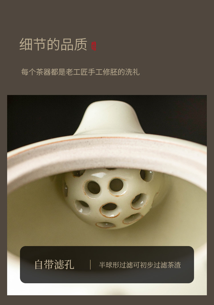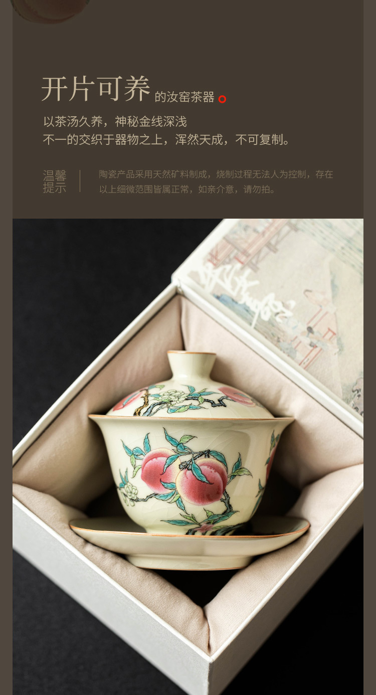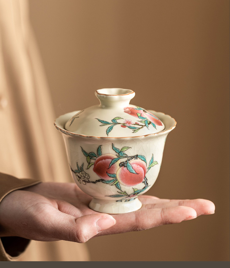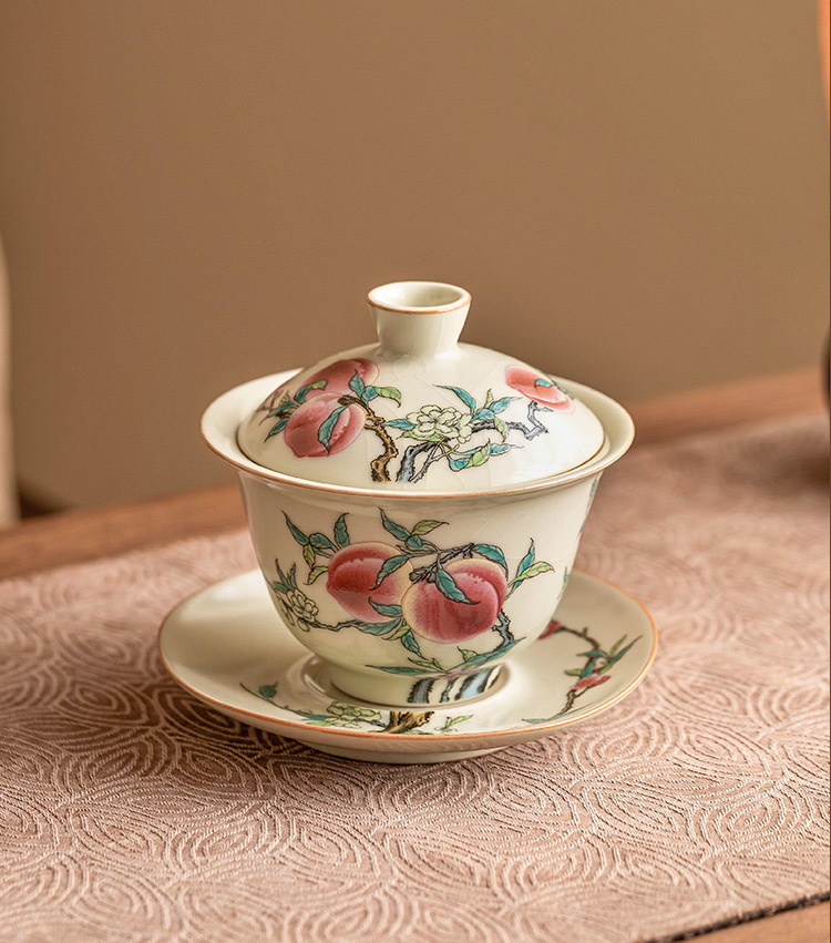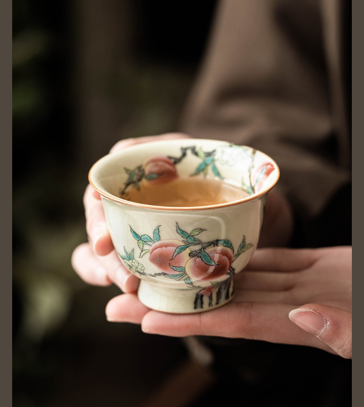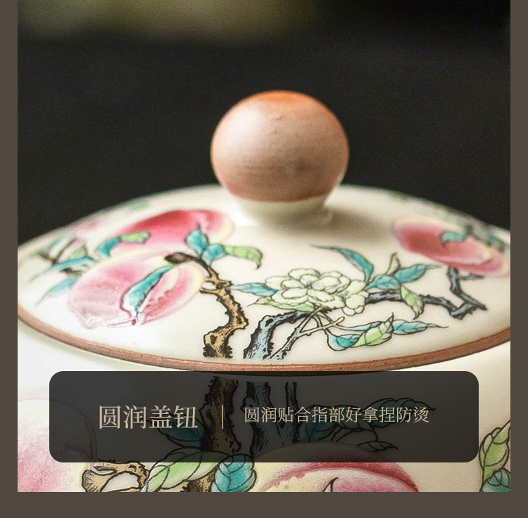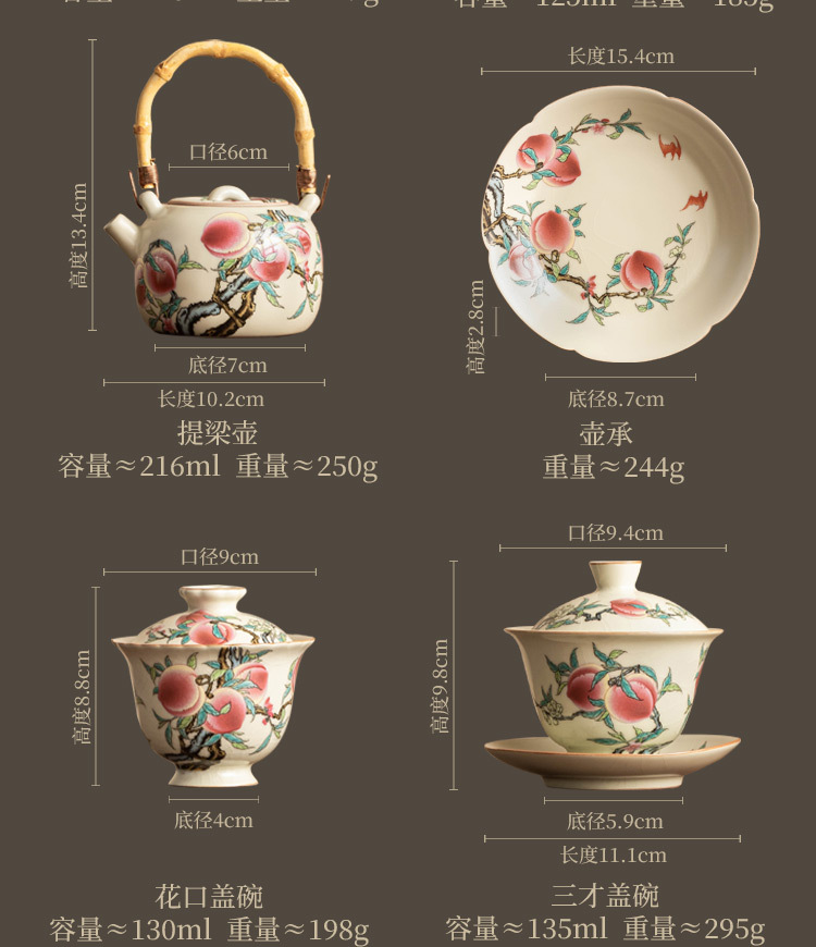 - Ruyao Pastel Nine Peach Bộ ấm trà Daquan Ấm trà lọc trà tách cà phê có nắp bát gốm sứ Kung Fu Cốc chủ nhân