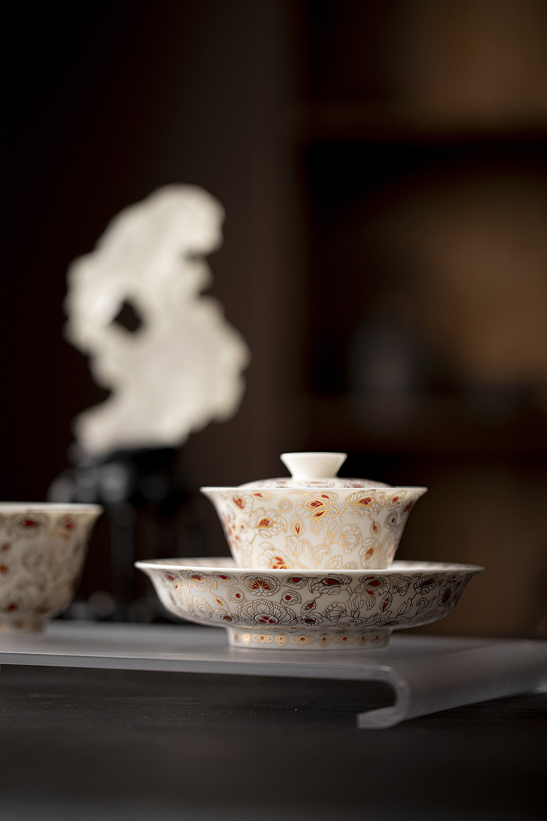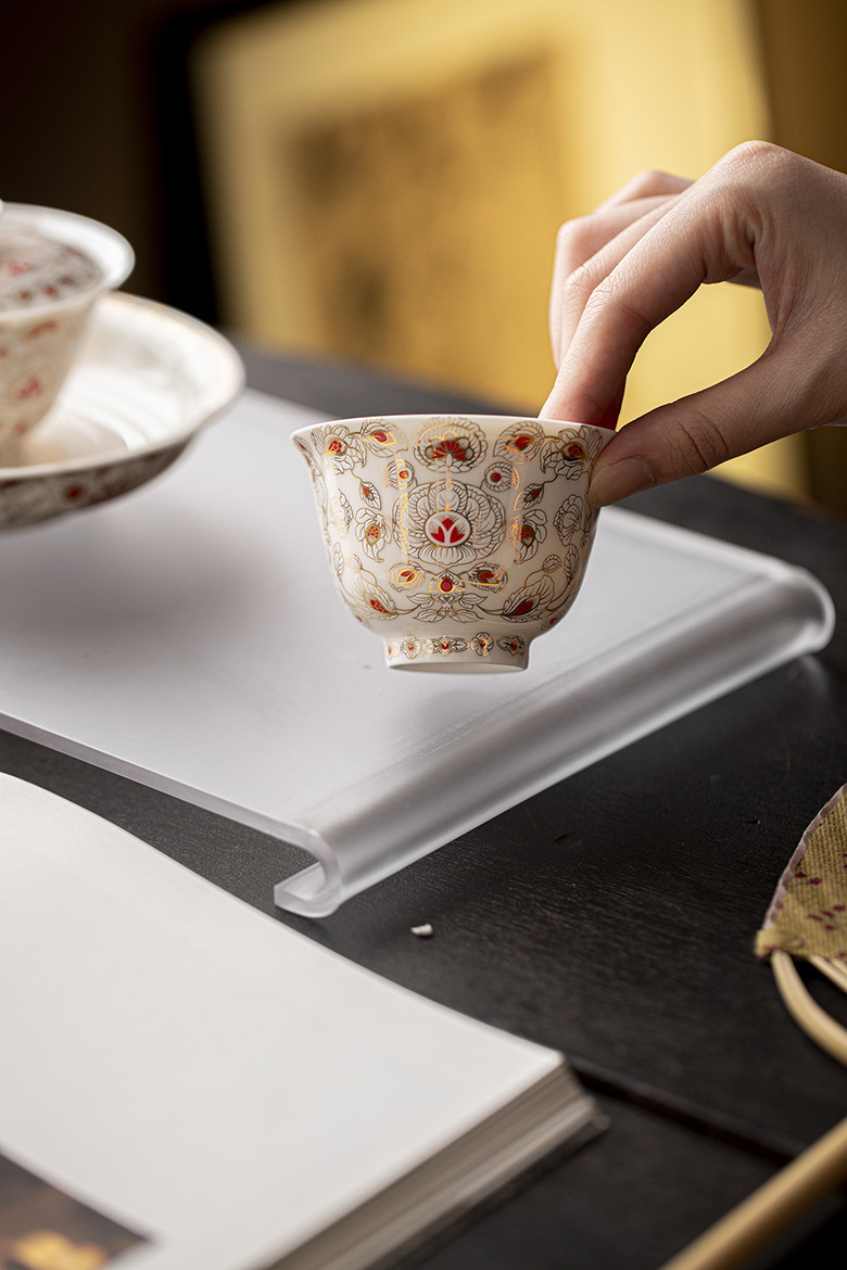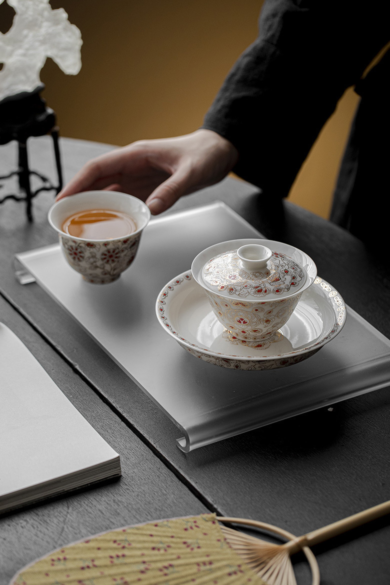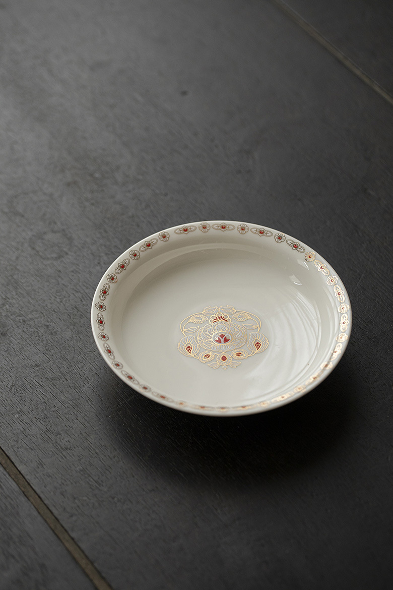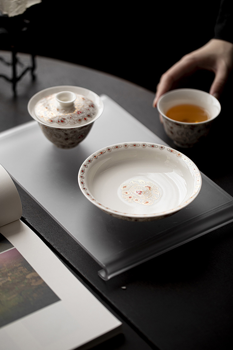 - Shengtang Yeyan Bát sứ trắng Đĩa gốm Phụ kiện trà đạo Chậu sai vàng bạc Khay pha khô Chén dưa và đĩa giải khát trái cây
