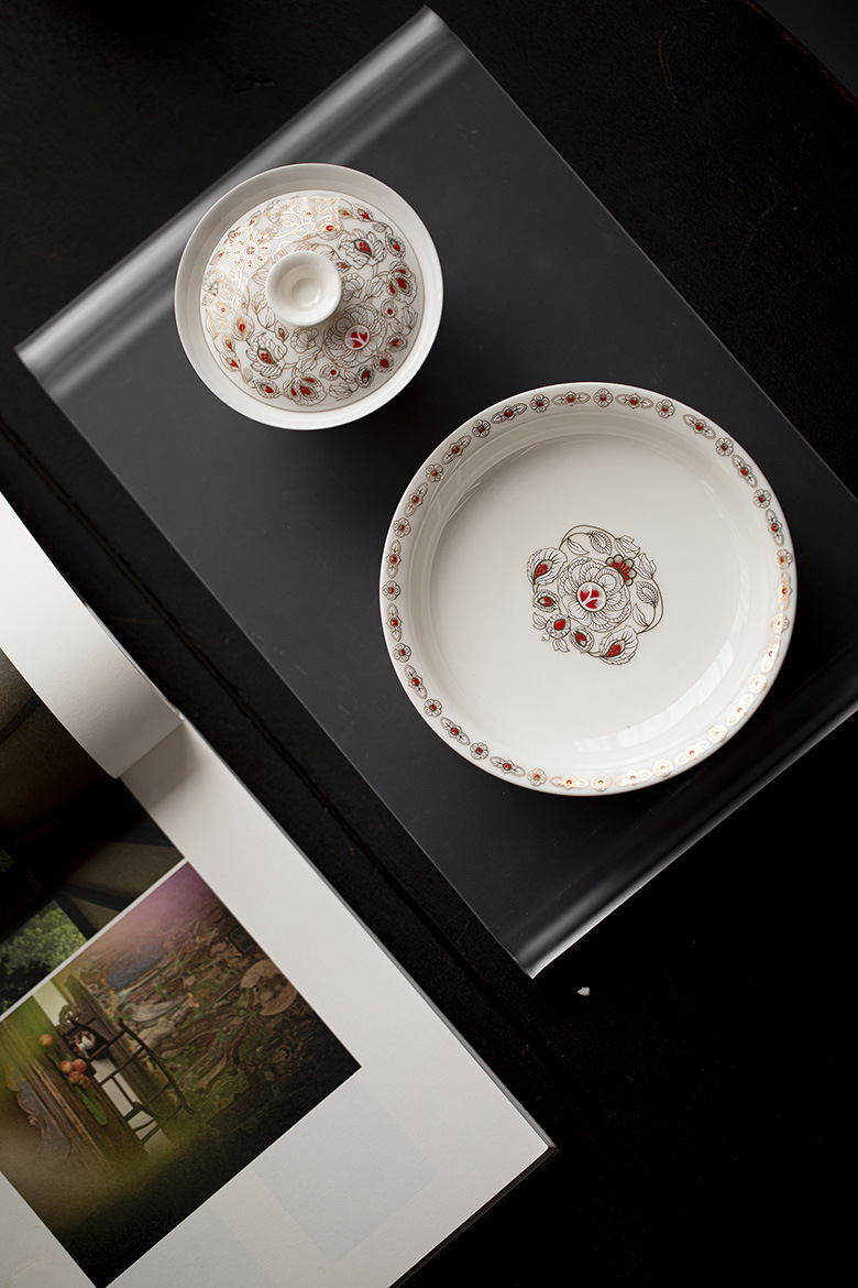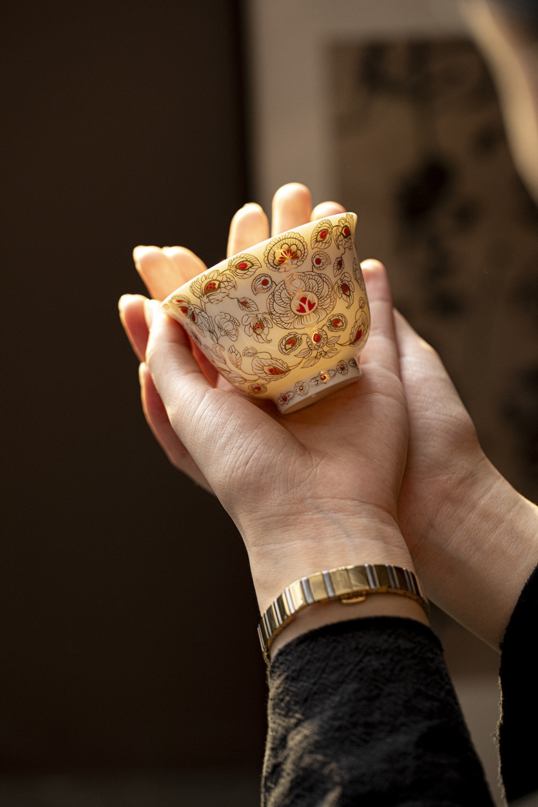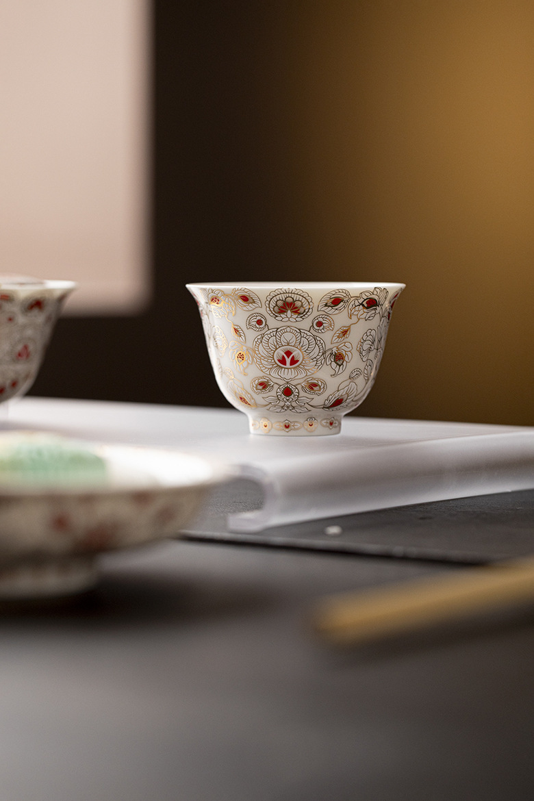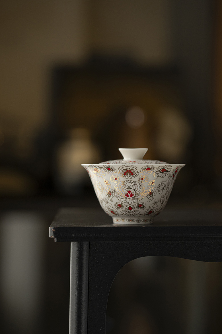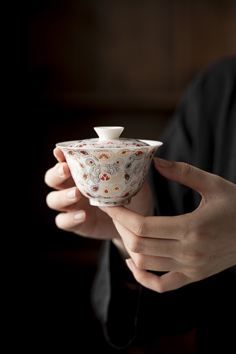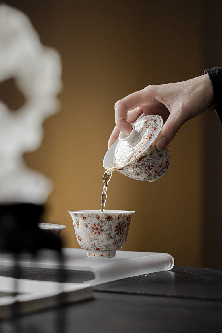 - Shengtang Yeyan Bát sứ trắng Đĩa gốm Phụ kiện trà đạo Chậu sai vàng bạc Khay pha khô Chén dưa và đĩa giải khát trái cây
