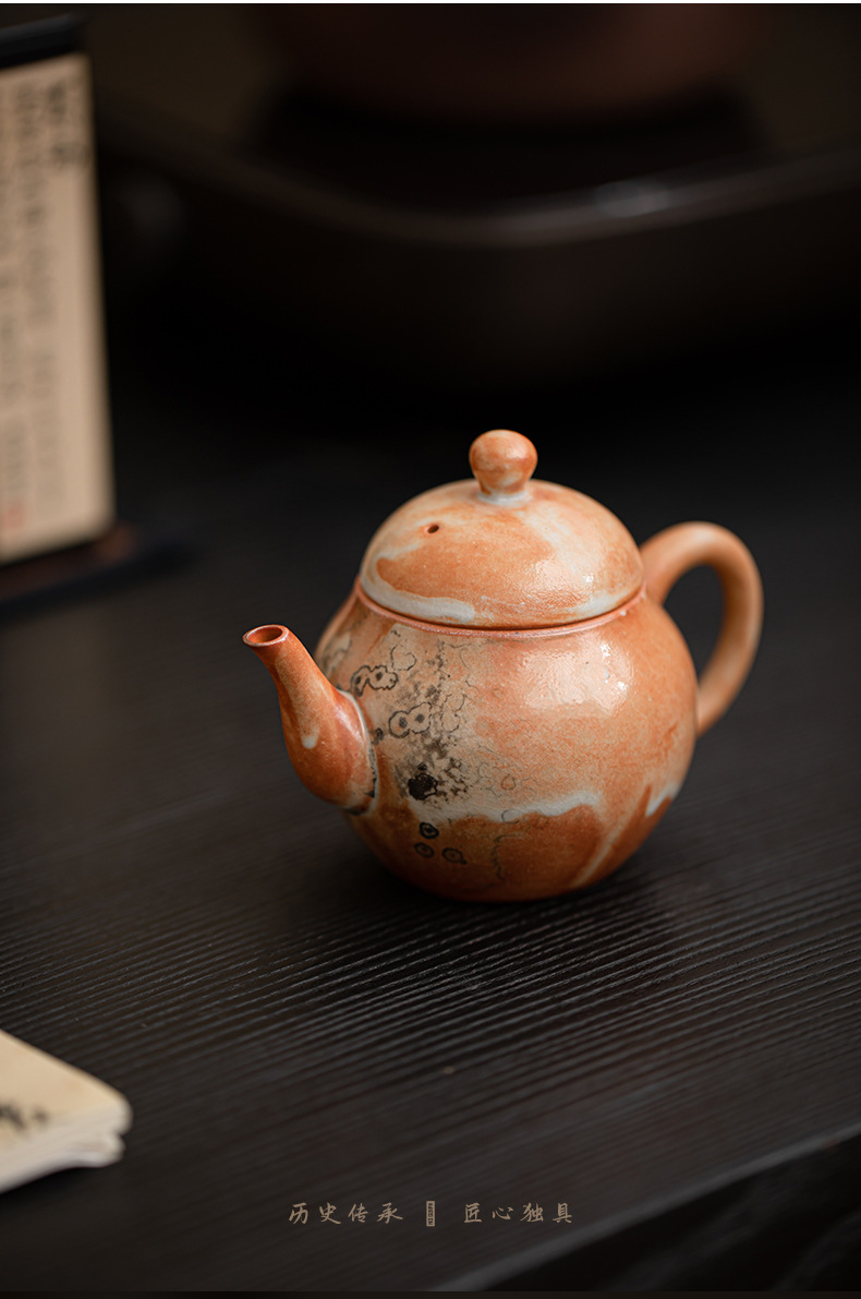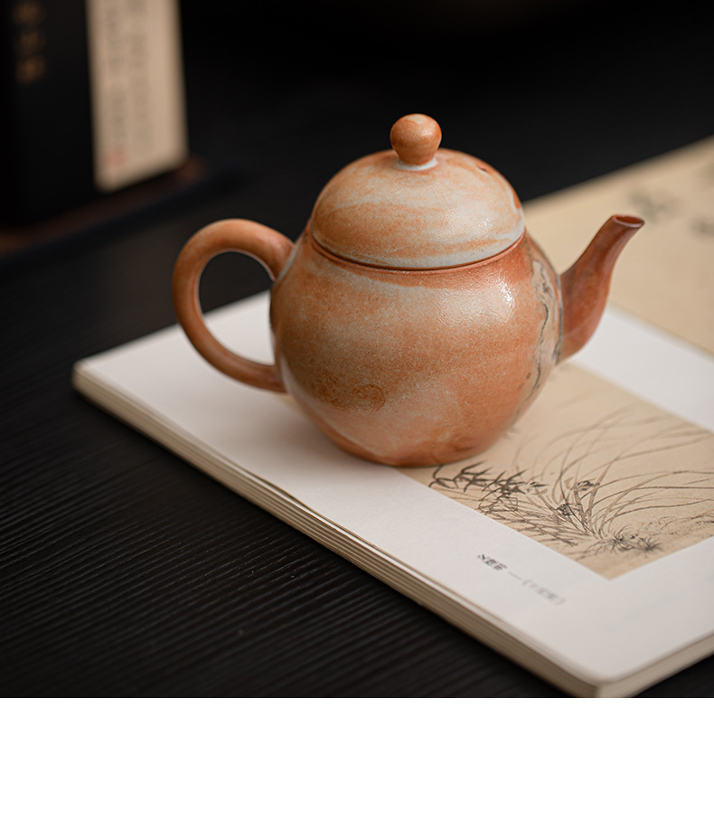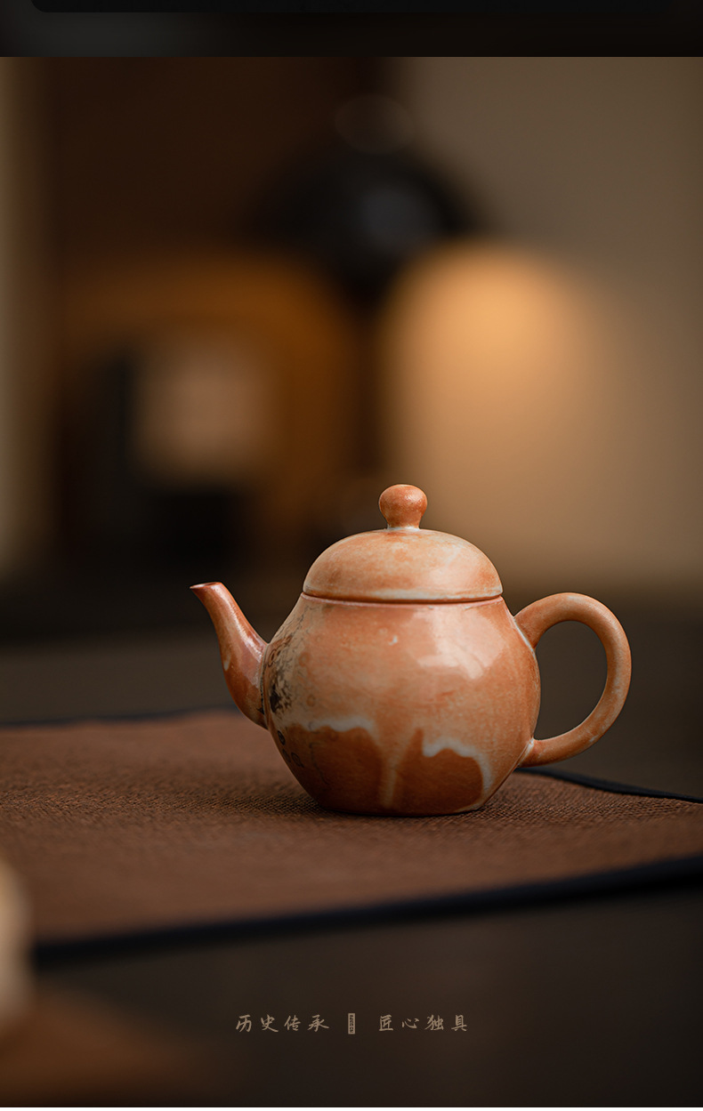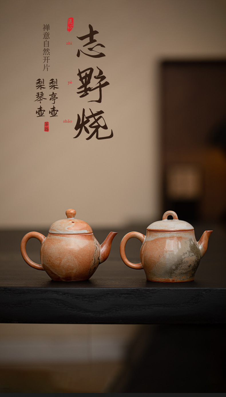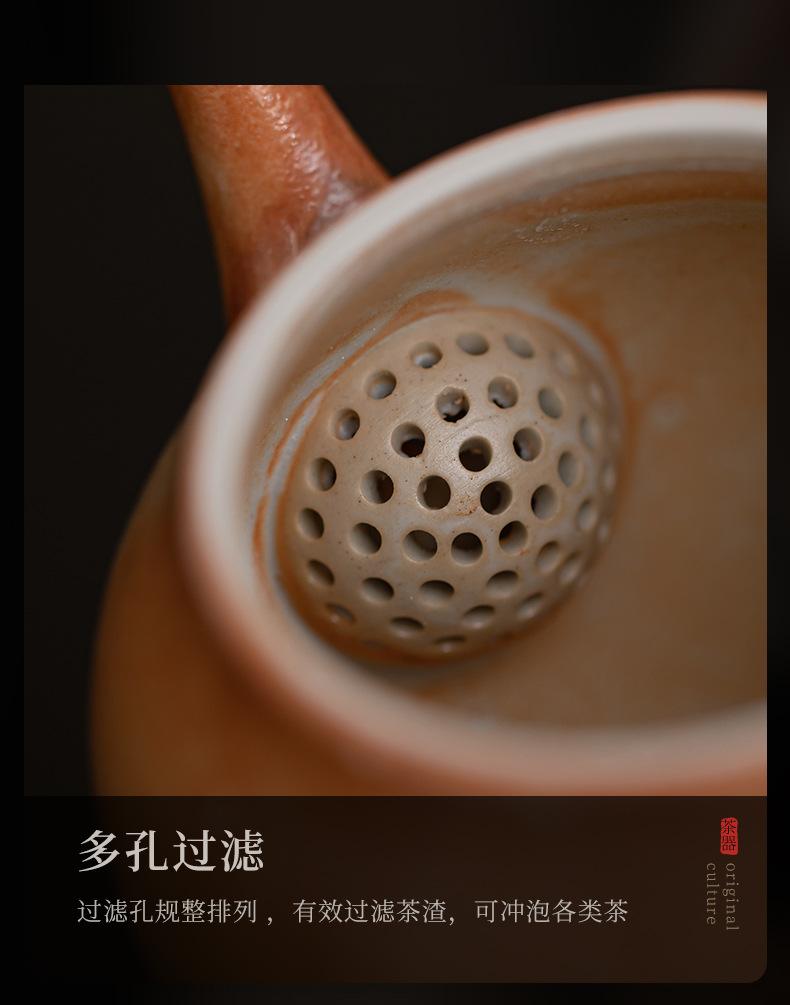 Shino-yaki hình quả lê ấm trà retro kung fu bộ trà hộ gia đình lò quay gốm bóng lỗ lọc ấm trà nồi đơn hộp quà tặng