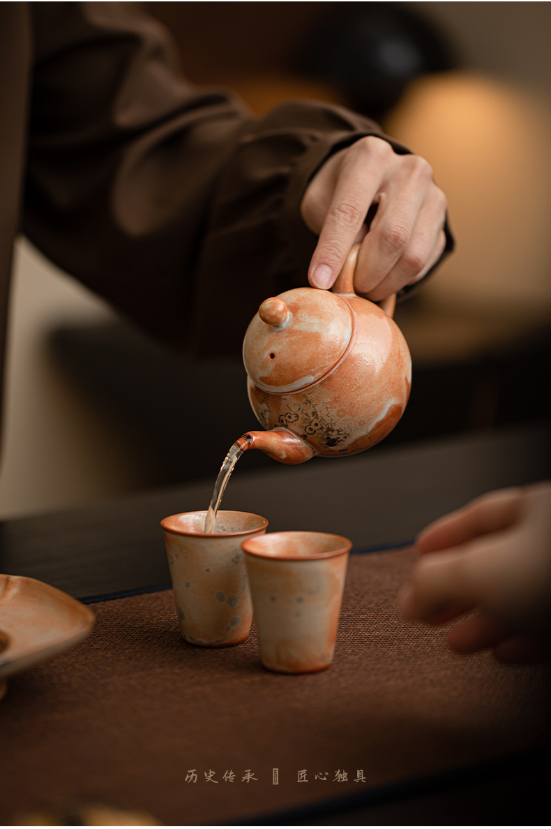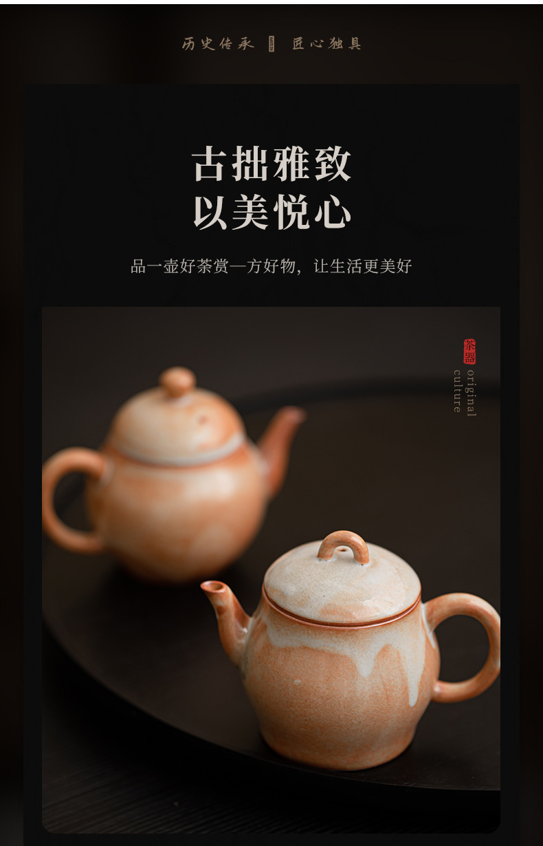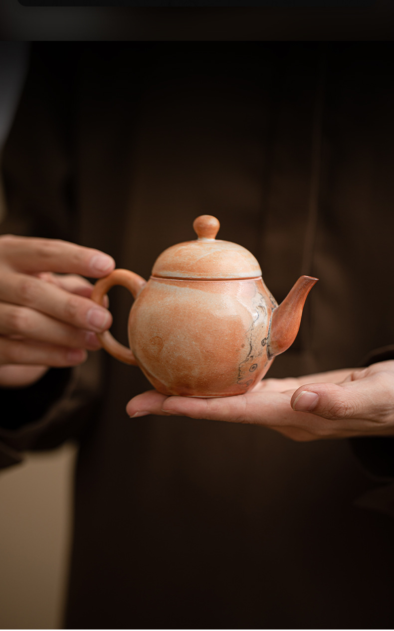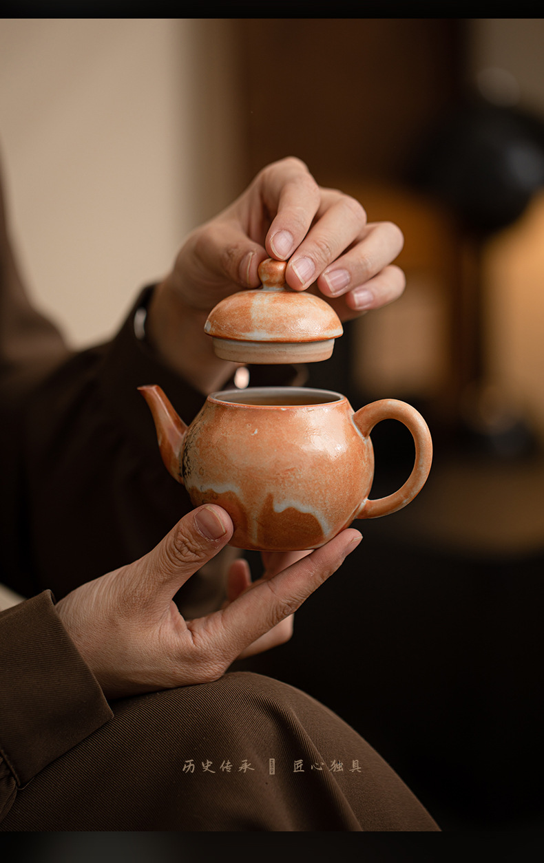 Shino-yaki hình quả lê ấm trà retro kung fu bộ trà hộ gia đình lò quay gốm bóng lỗ lọc ấm trà nồi đơn hộp quà tặng
