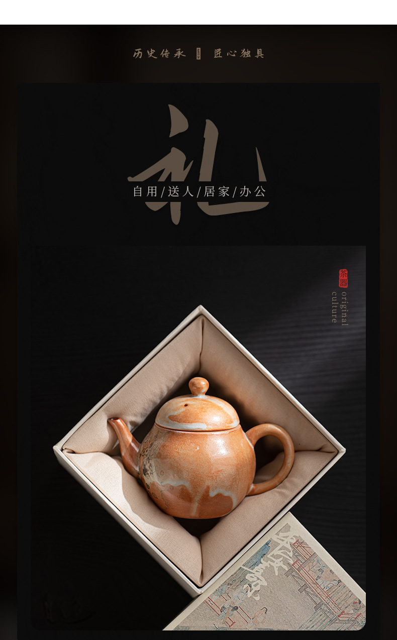 - Shino-yaki hình quả lê ấm trà retro kung fu bộ trà hộ gia đình lò quay gốm bóng lỗ lọc ấm trà nồi đơn hộp quà tặng