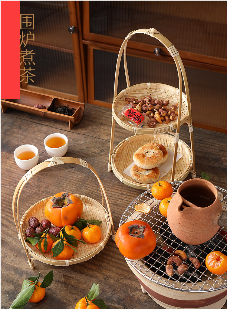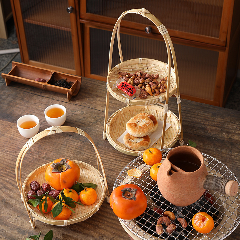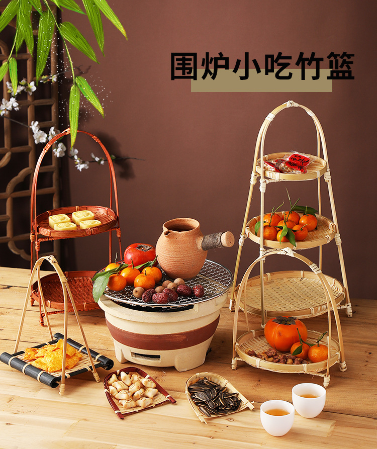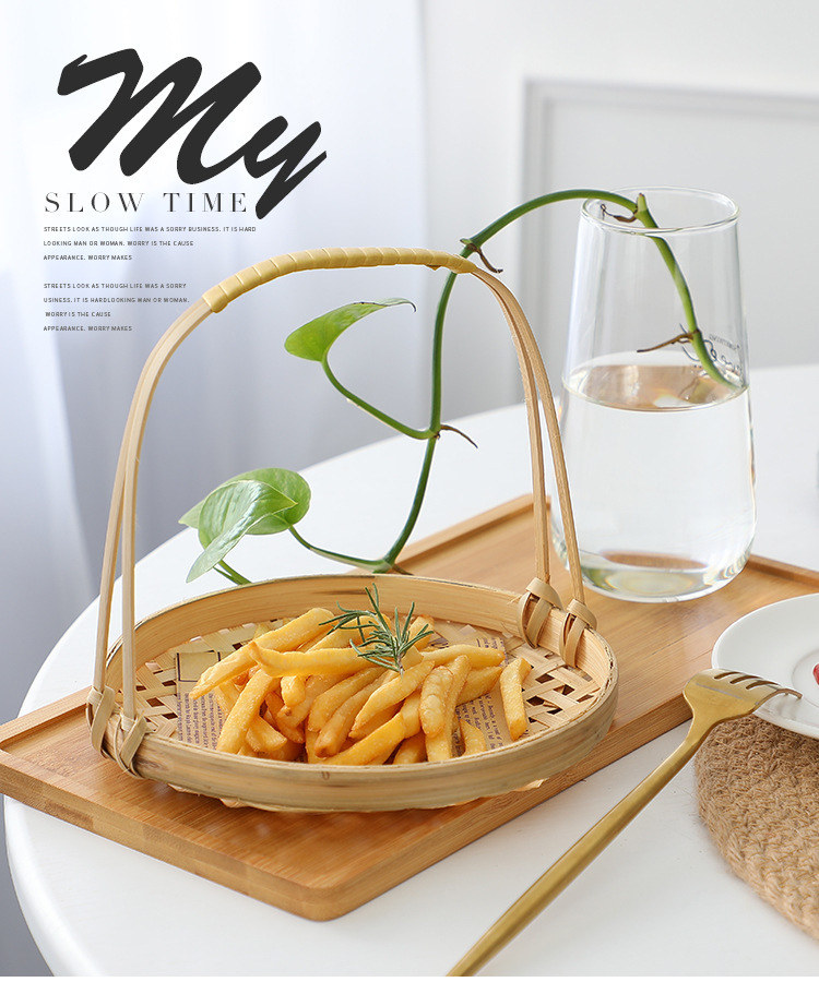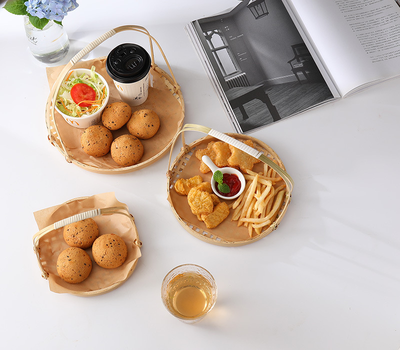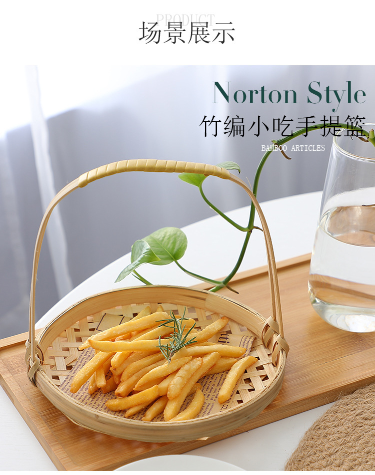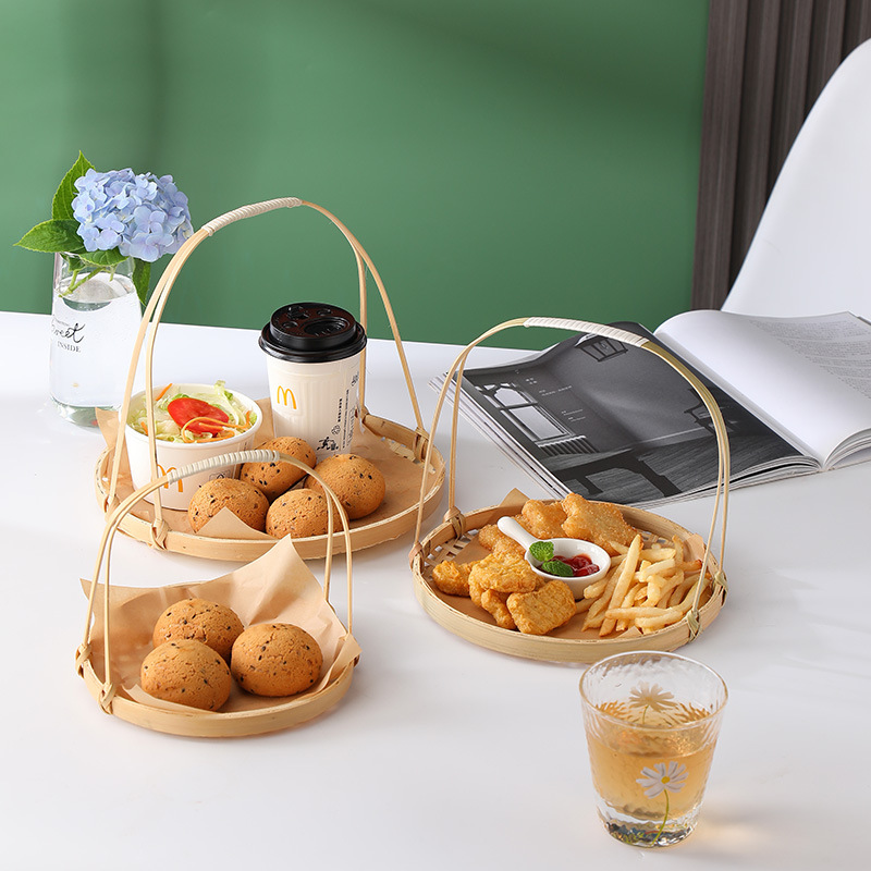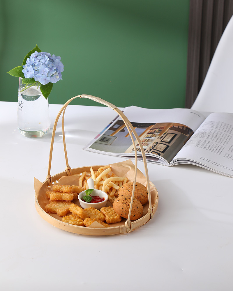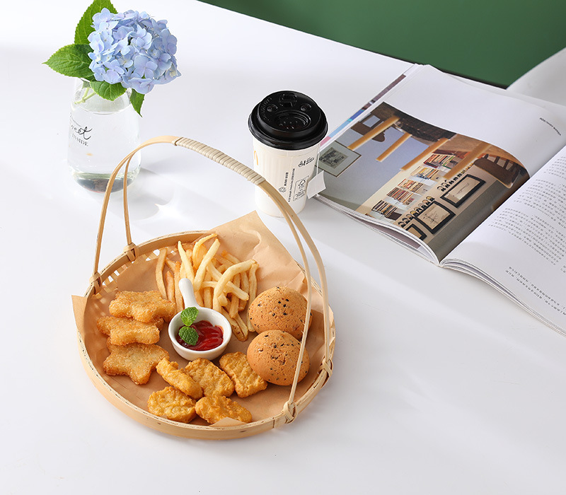 Snack, giỏ khoai tây chiên xanh, giỏ tre, giỏ ăn vặt kiểu Trung Quốc, khay đan bằng tre, đĩa chiên, giỏ trang trí trung thu, bán buôn