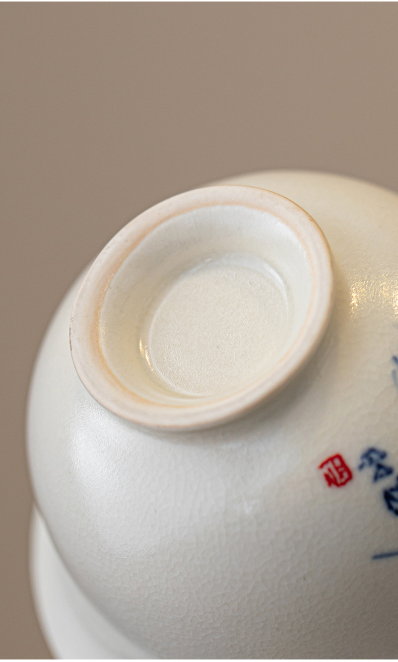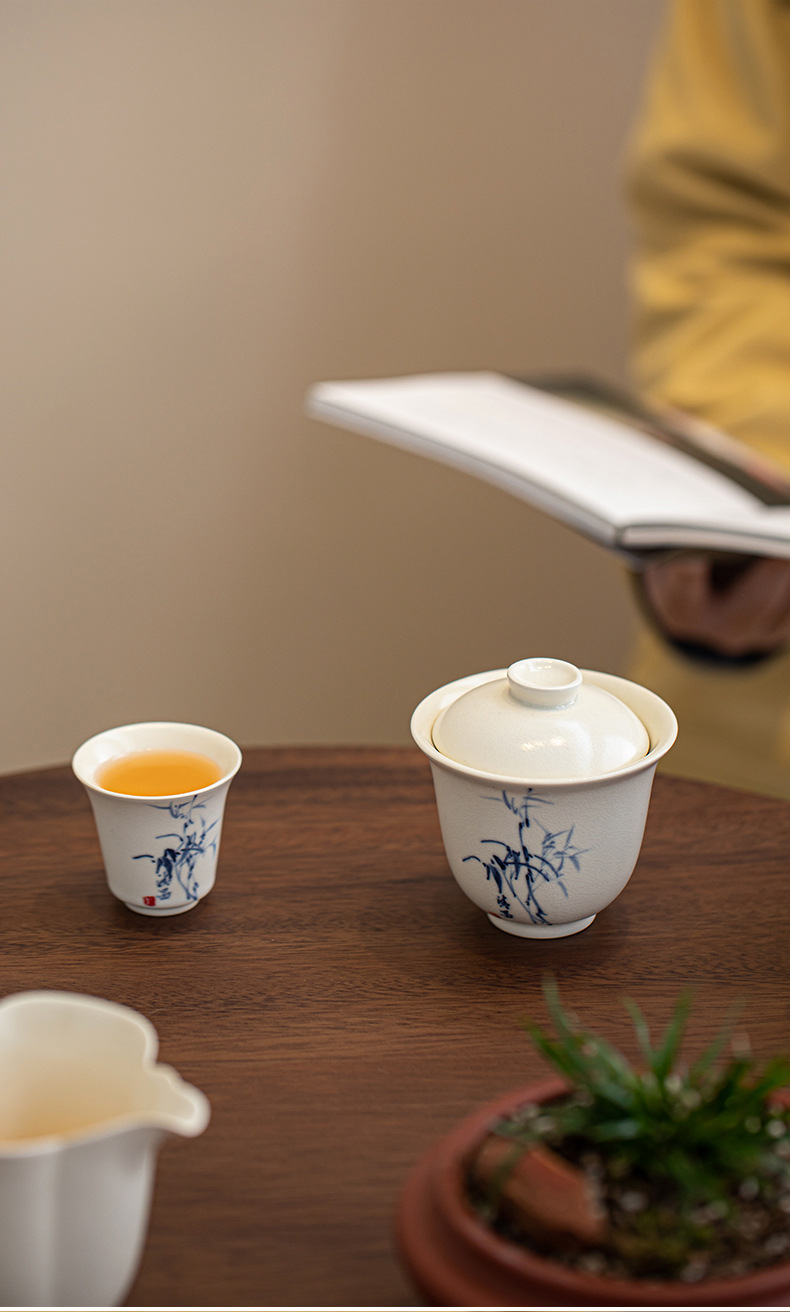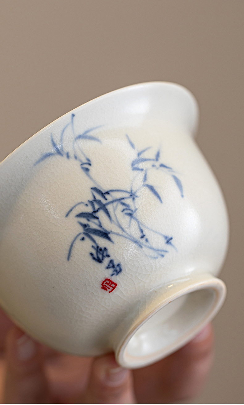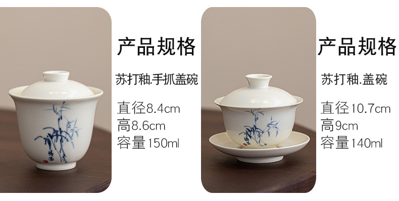 - Soda tráng men hai nắp bát pha trà tre vẽ tay dụng cụ pha trà Kung Fu gia dụng bát trà sứ trắng không nóng tay