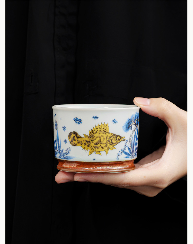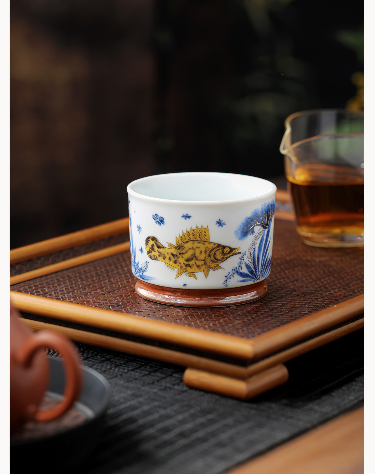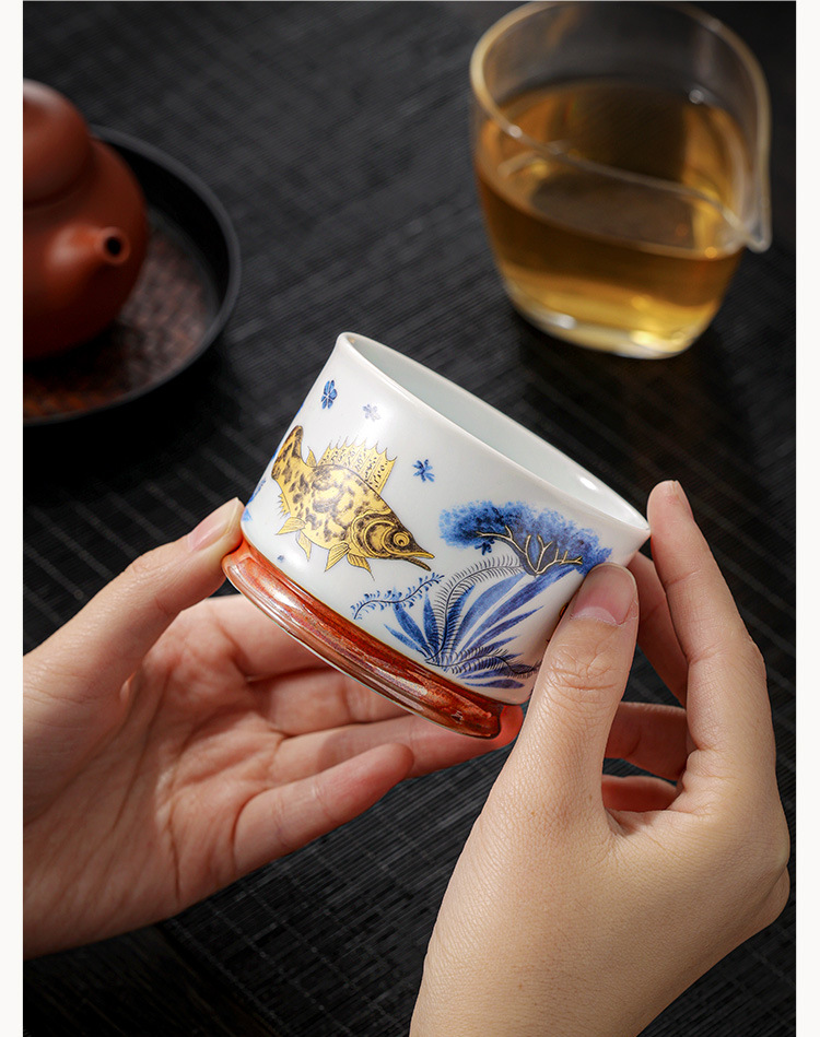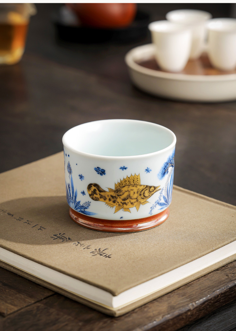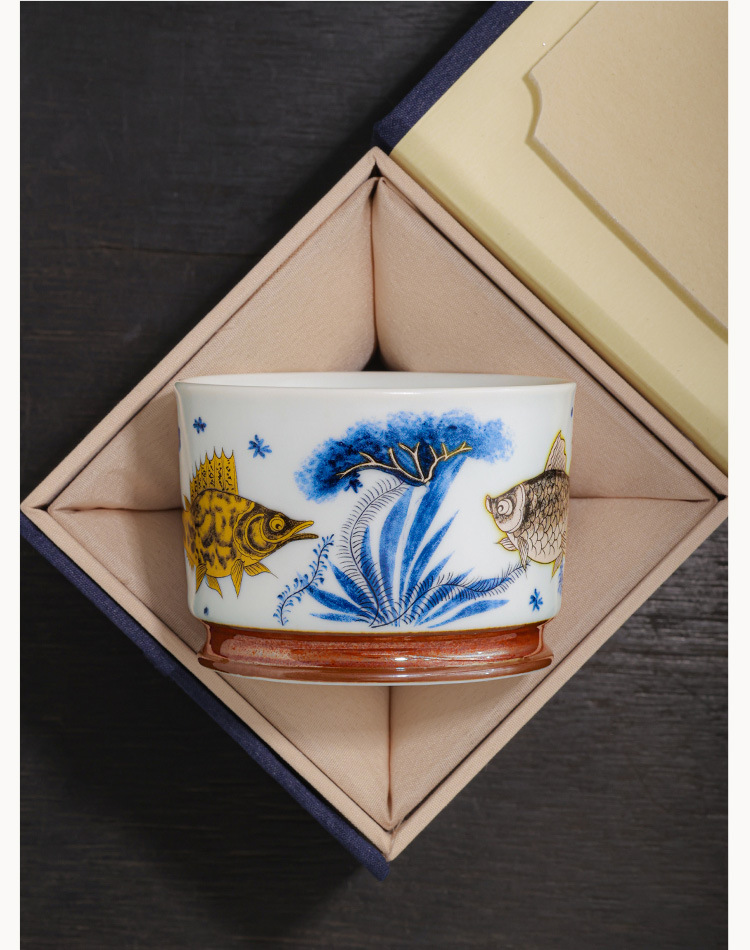 - Soda tráng men Rongtian Cup-Cá và tảo Cốc chủ nhân Cốc uống trà gốm sứ gia dụng Cốc trà Bộ trà Kung Fu Chén trà