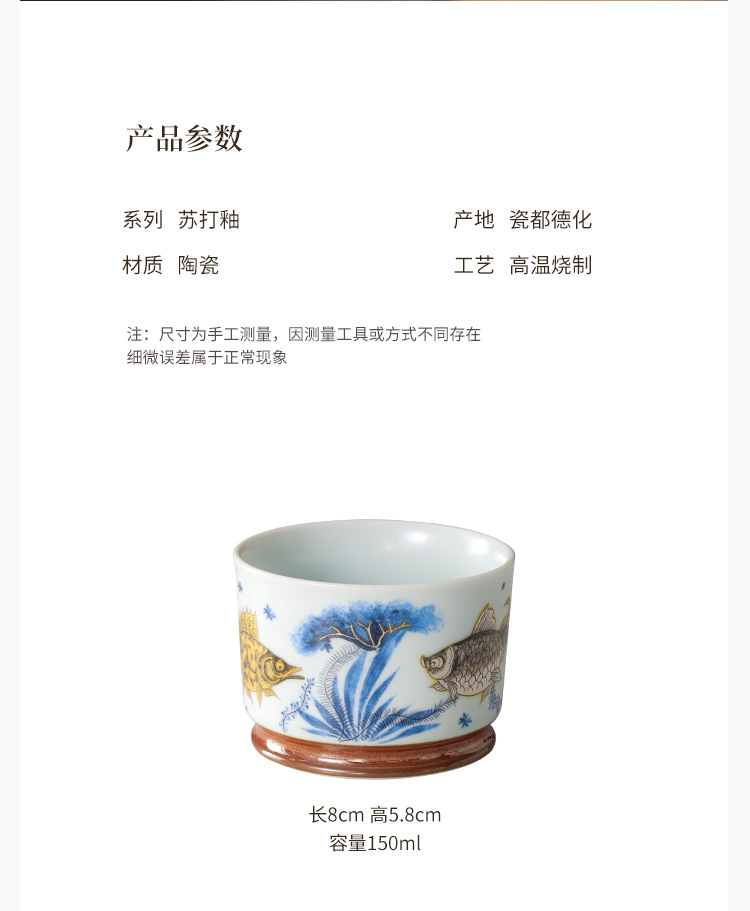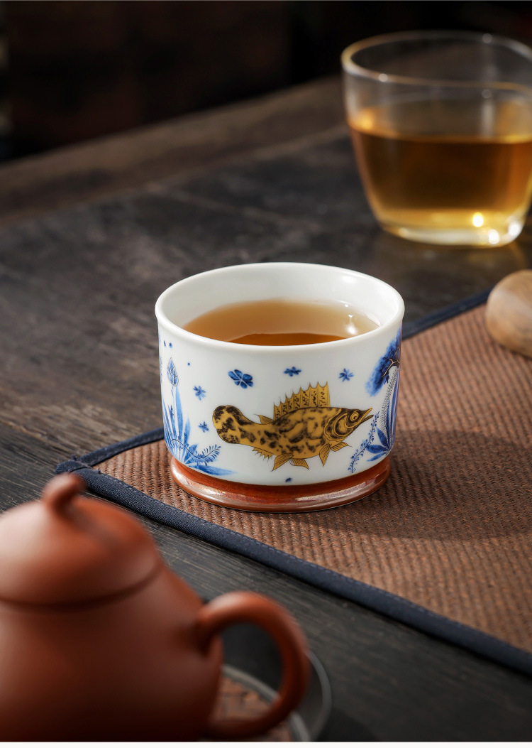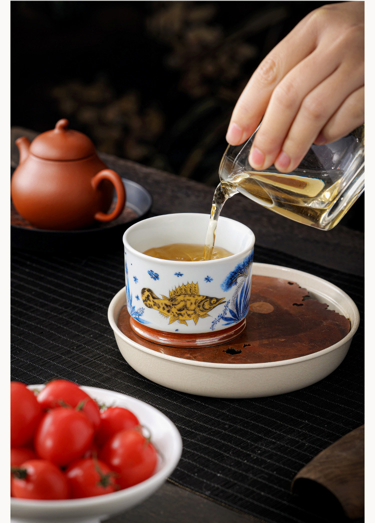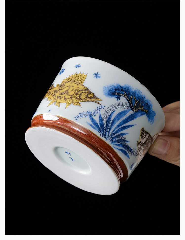 - Soda tráng men Rongtian Cup-Cá và tảo Cốc chủ nhân Cốc uống trà gốm sứ gia dụng Cốc trà Bộ trà Kung Fu Chén trà