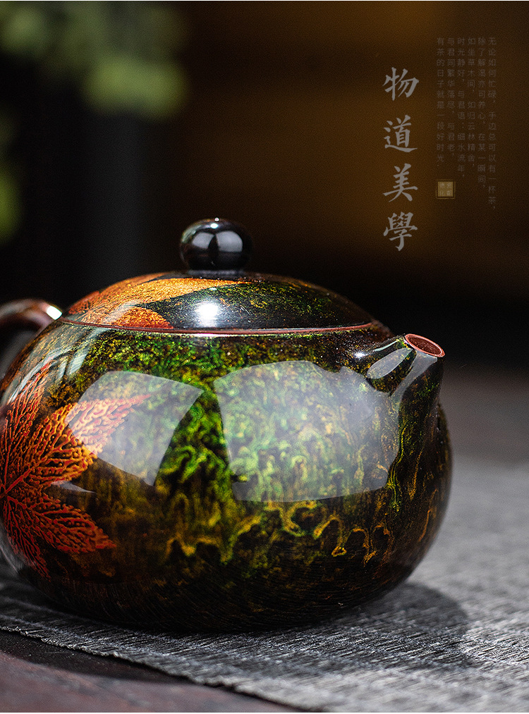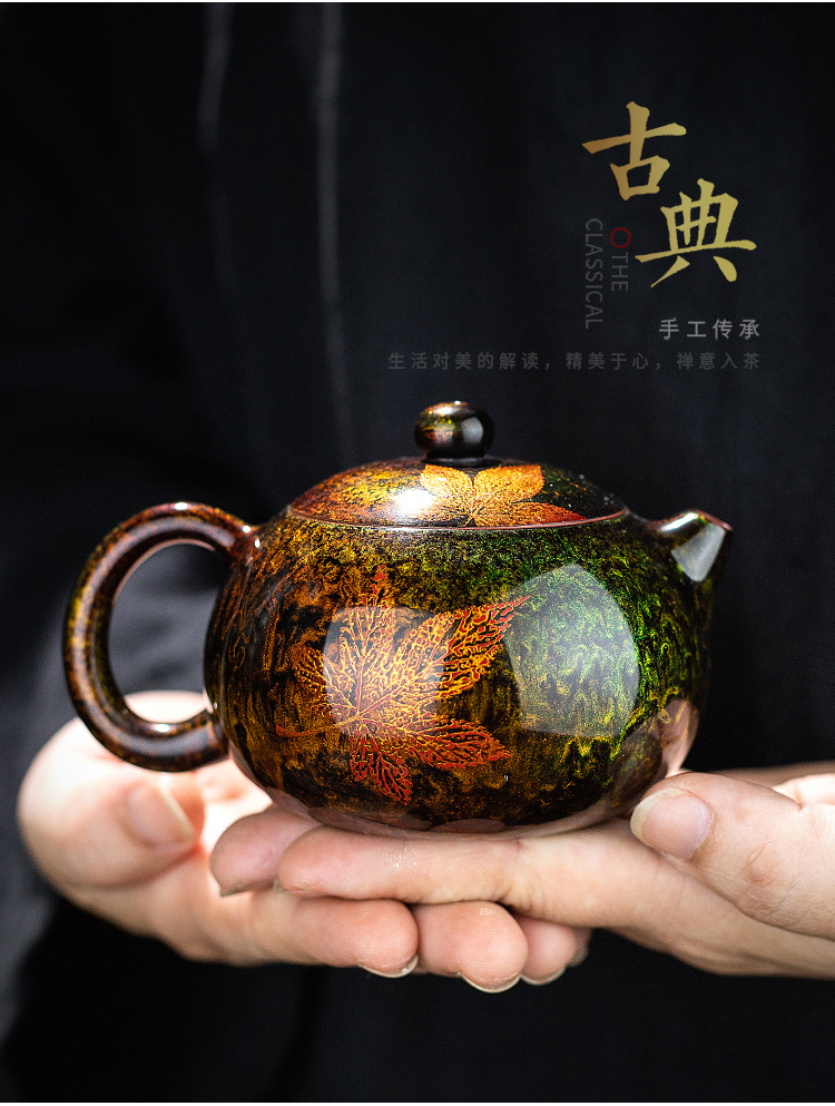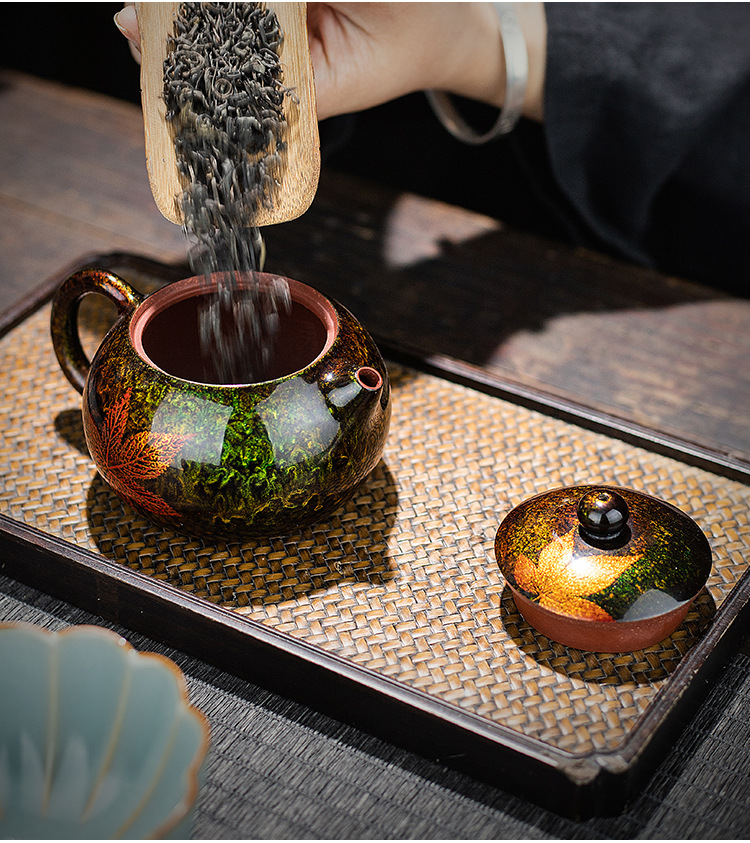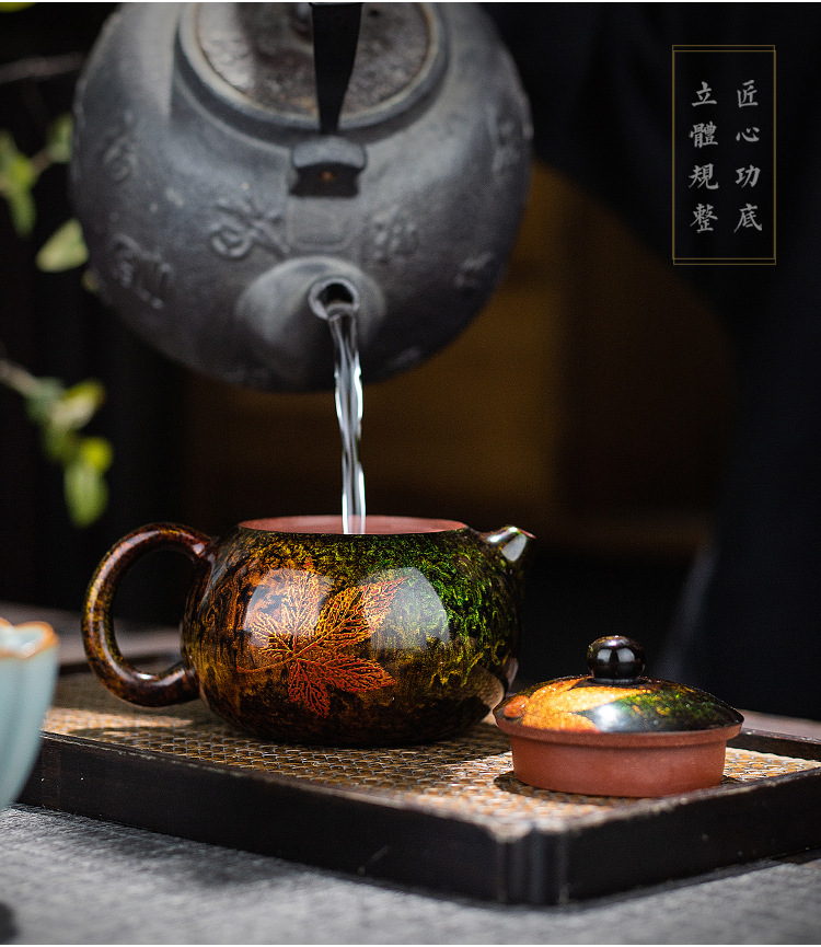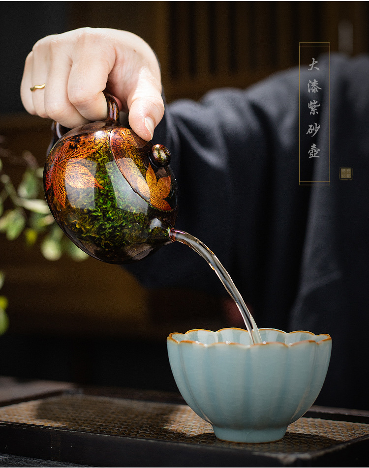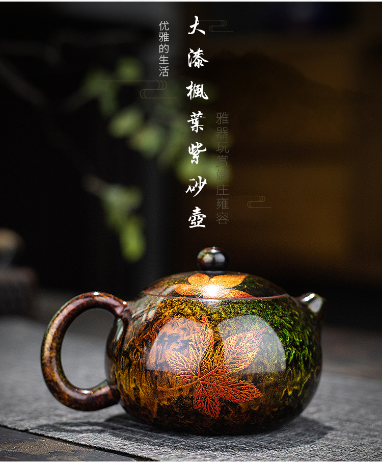 - Suyuan bộ ấm trà sơn mài Phúc Châu sơn mài thủ công lá phong ấm trà cát tím hộ gia đình Trung Quốc ấm trà Xishi nồi