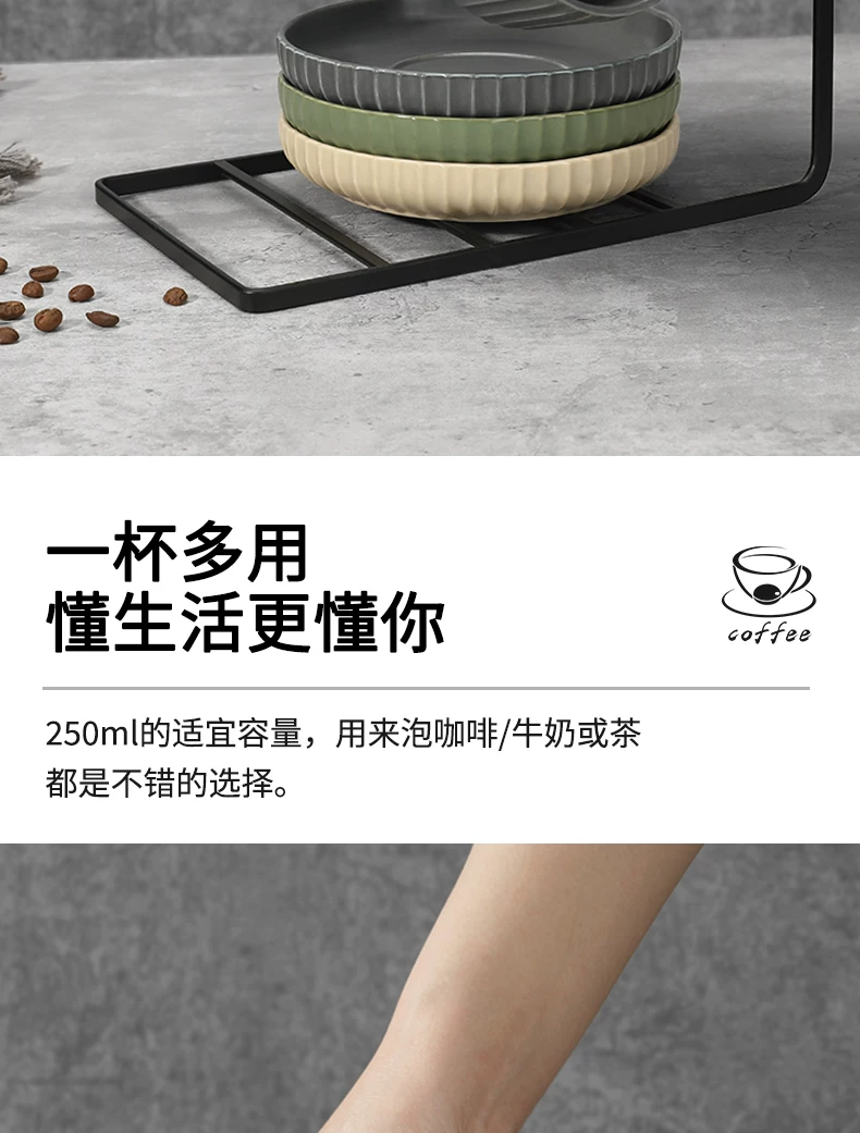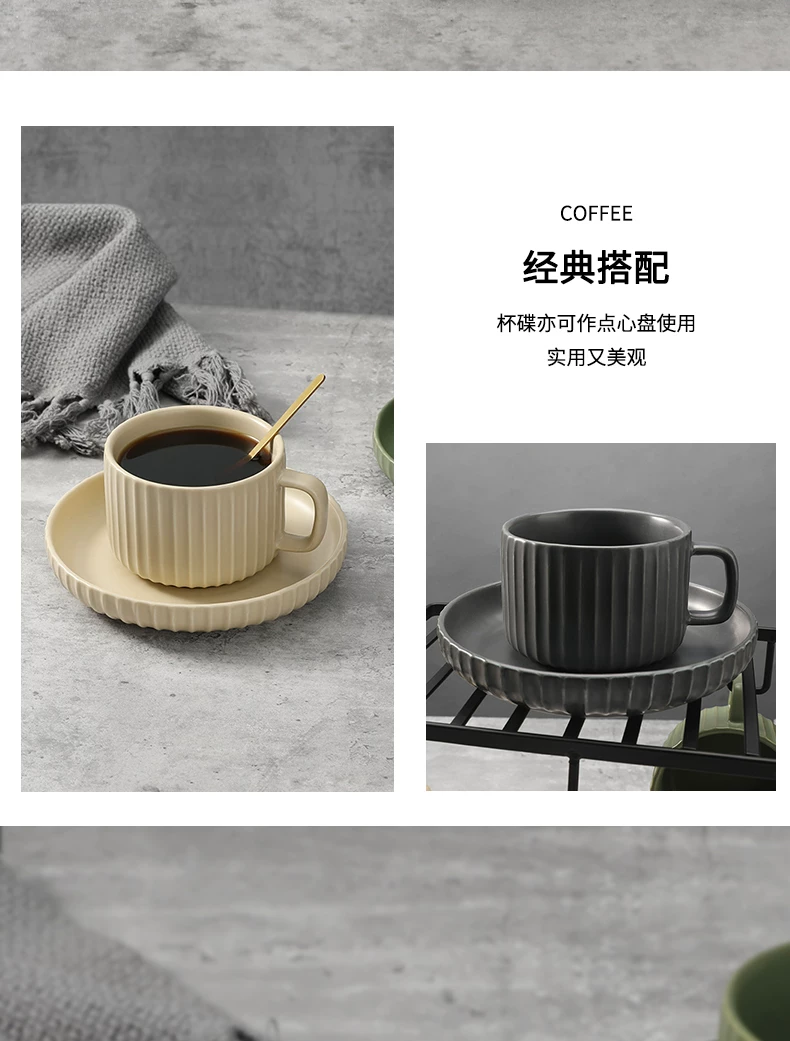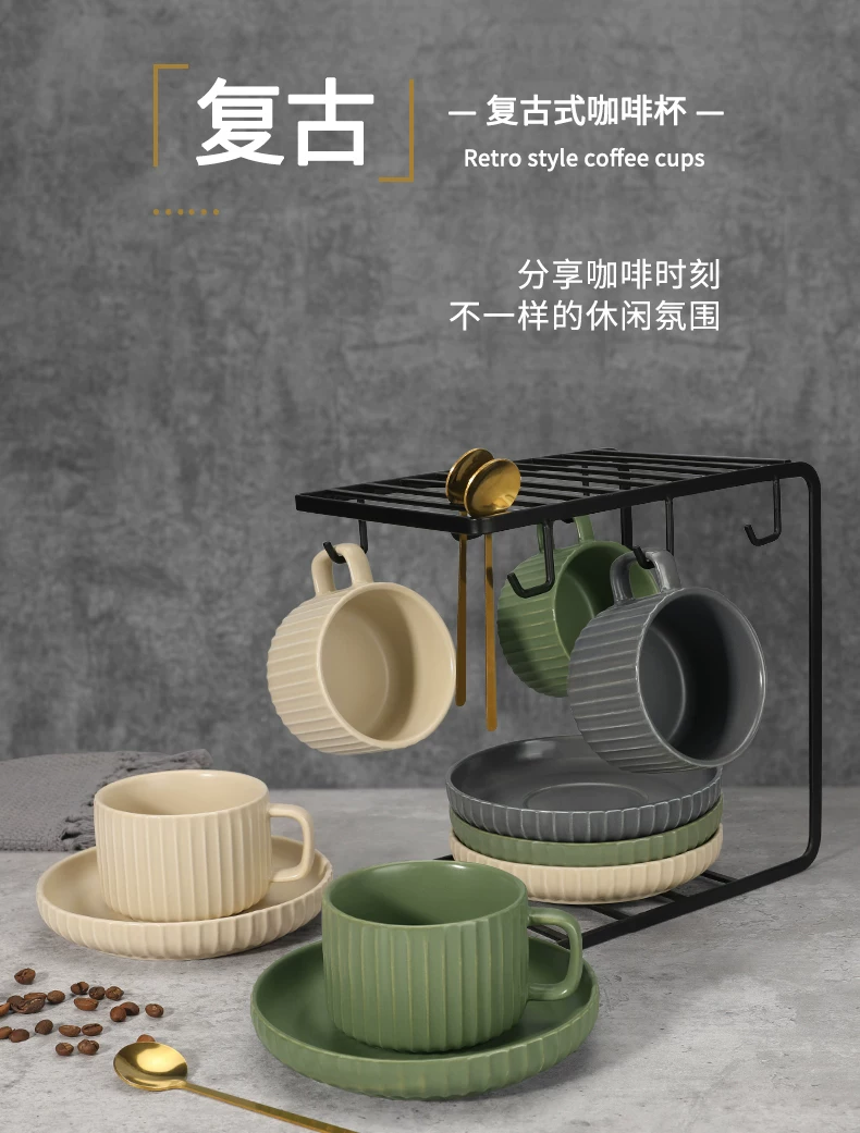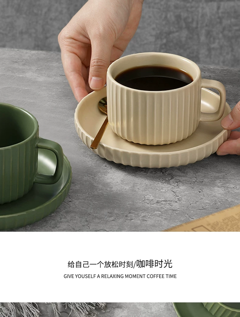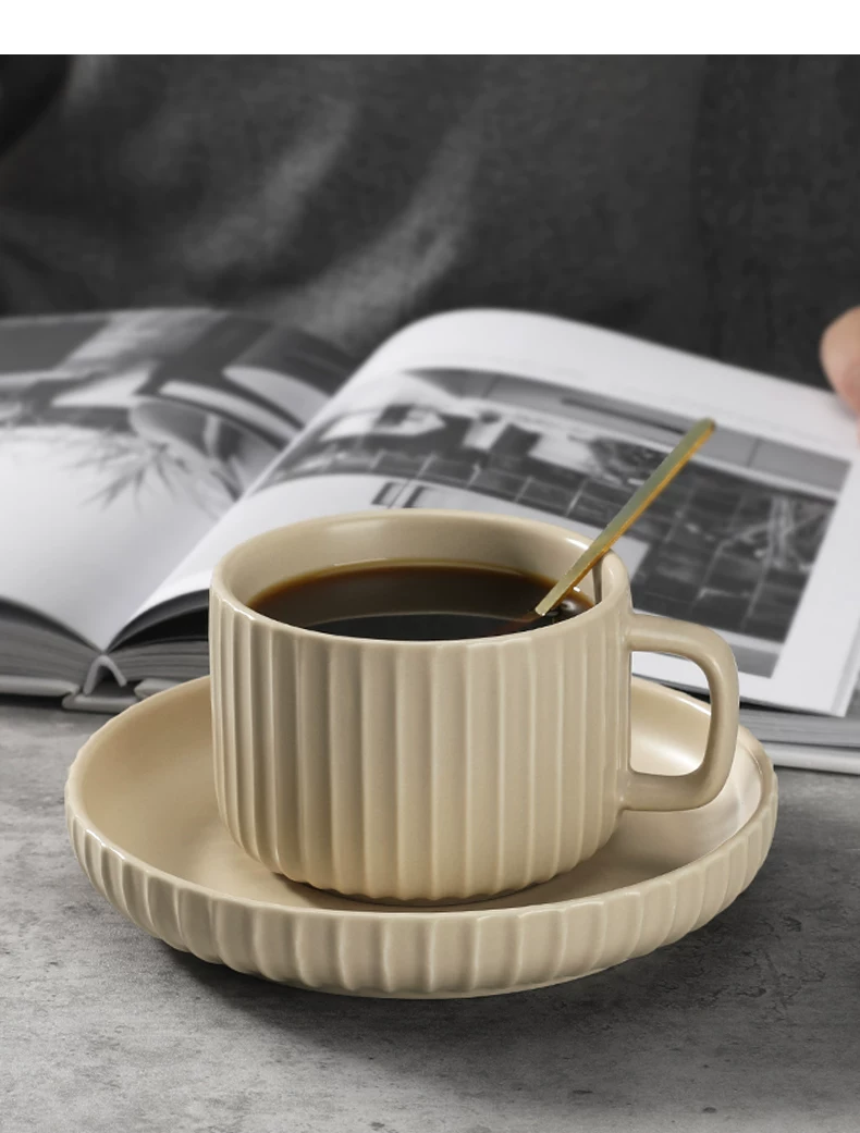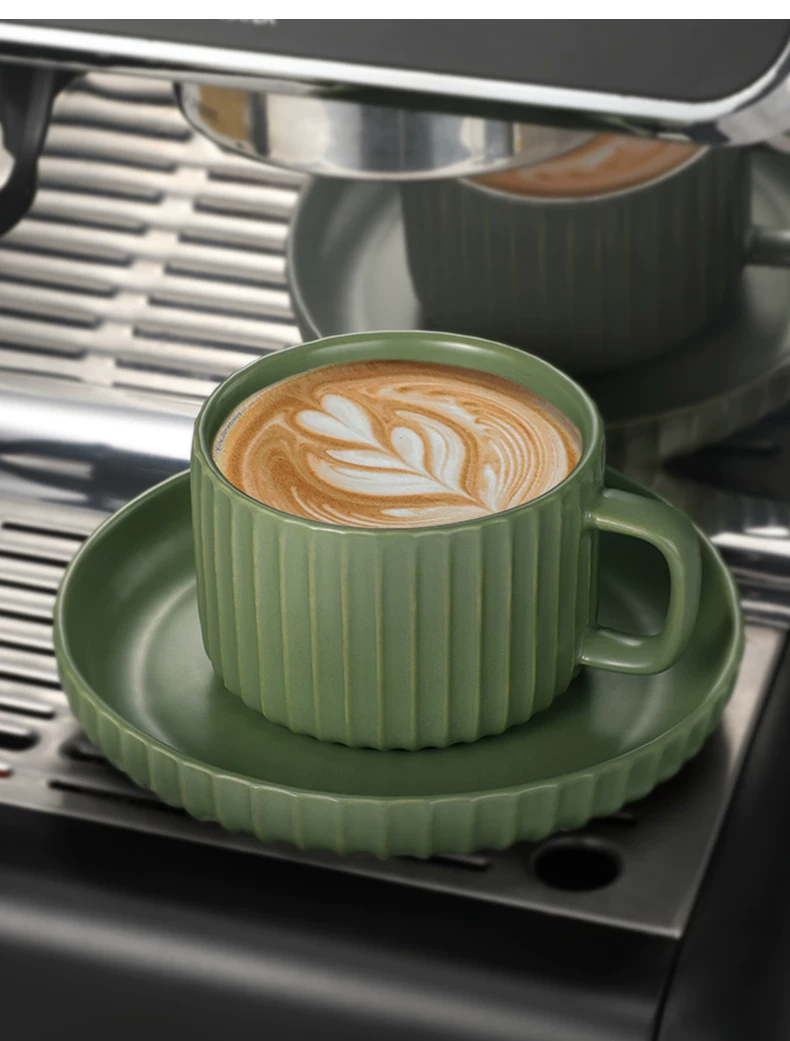 Tách cà phê gốm sứ Mongdio, tách latte cao cấp tinh tế, bộ tách và đĩa uống cà phê nghệ thuật latte cổ điển, sang trọng