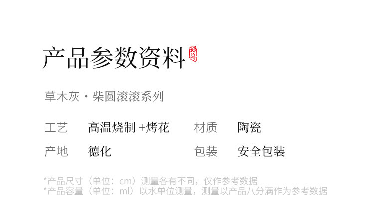 - Tách trà gốm lớn có men tro, Tách trà gia đình tròn và trang nhã, Cốc chủ, Một mảnh.