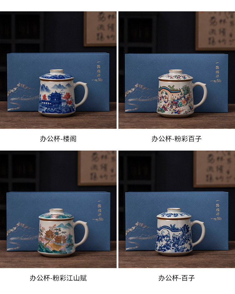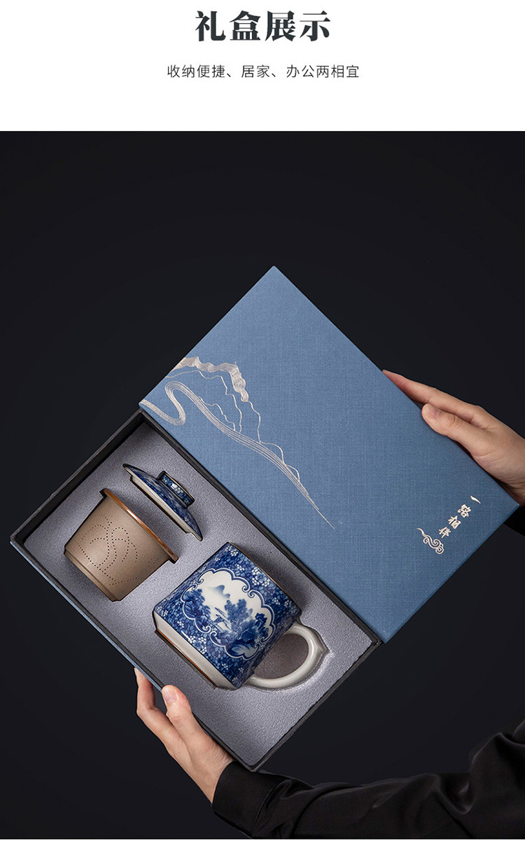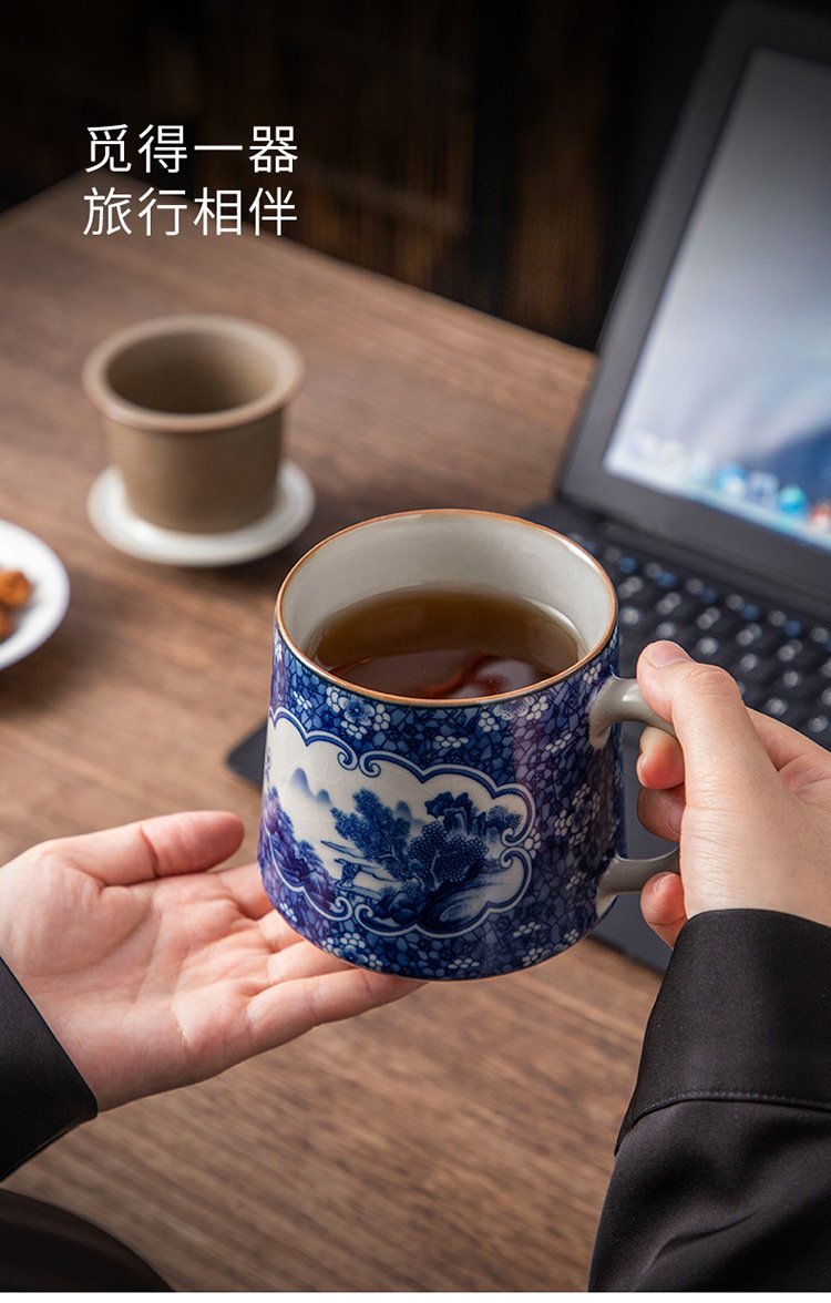 - Tách trà gốm sứ trắng xanh tách trà cốc văn phòng phong cảnh cốc văn phòng có nắp lọc lót cốc văn phòng dung tích lớn quà tặng