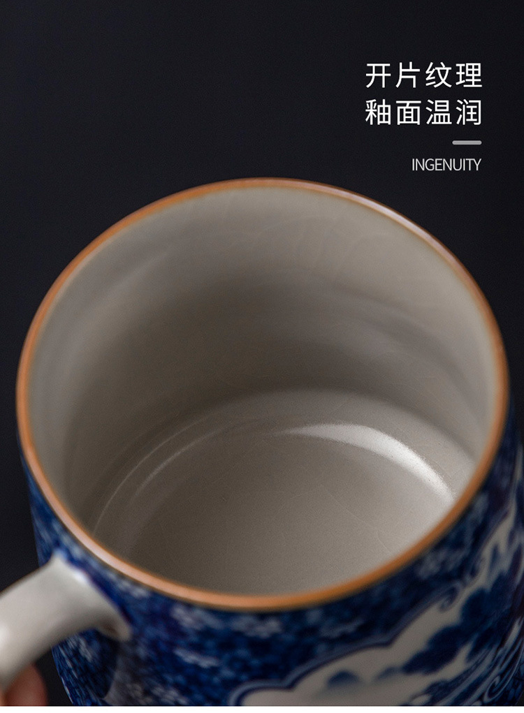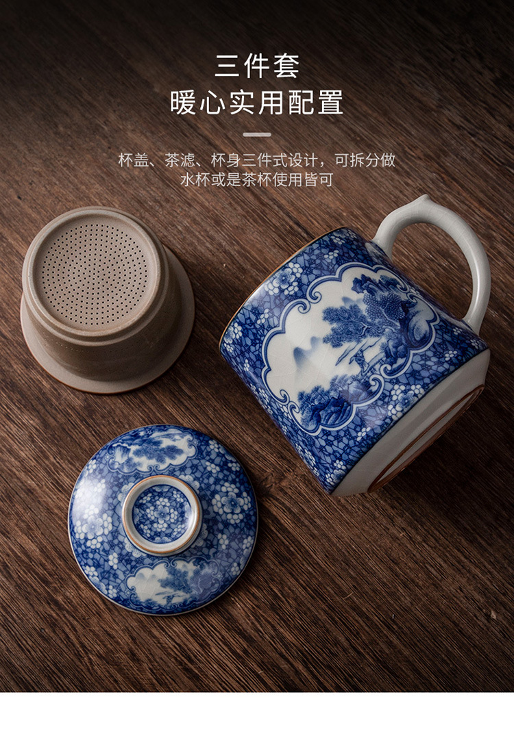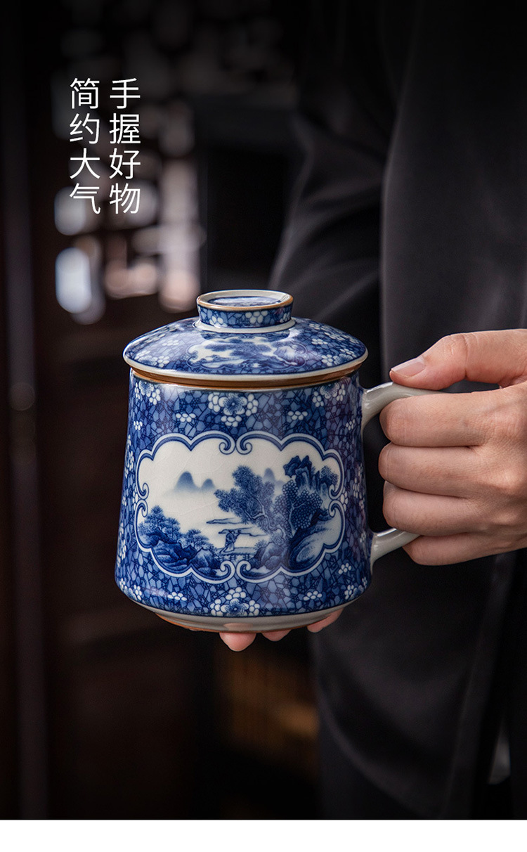 Tách trà gốm sứ trắng xanh tách trà cốc văn phòng phong cảnh cốc văn phòng có nắp lọc lót cốc văn phòng dung tích lớn quà tặng