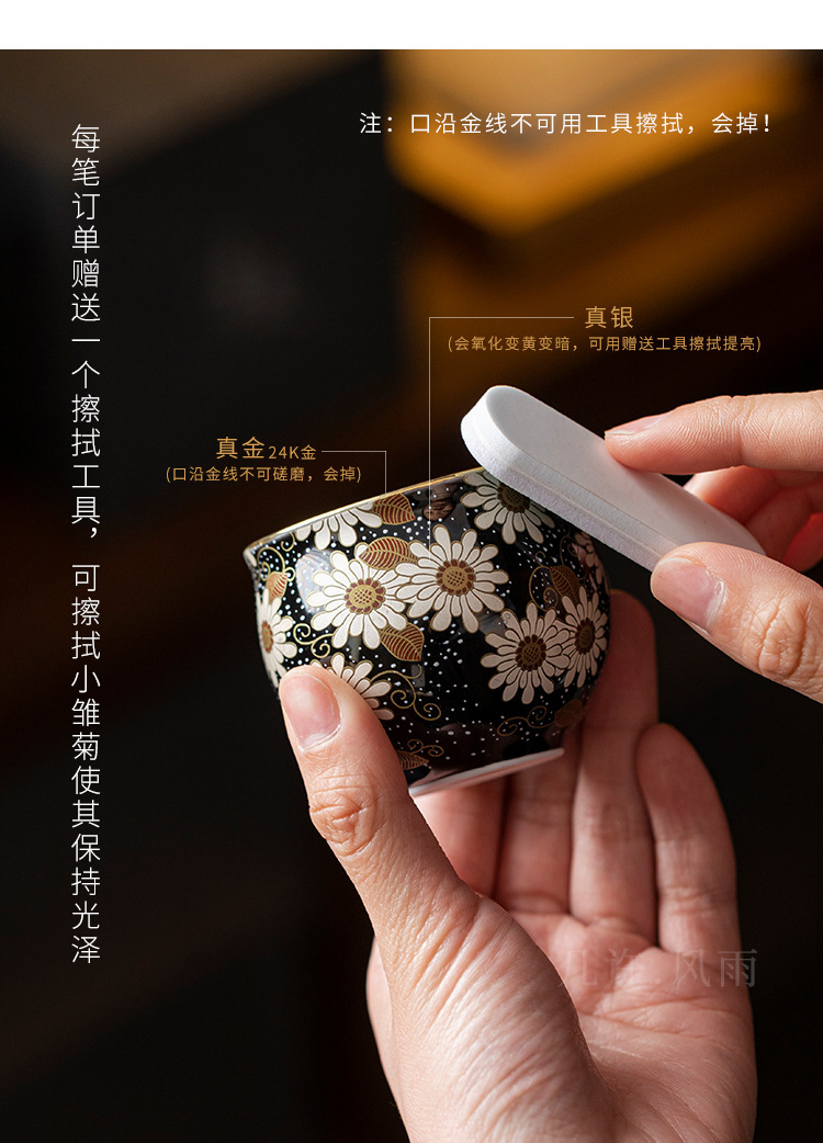 Tách trà hoa cúc nhỏ bằng vàng và bạc sai bộ trà kungfu cốc chủ nhân tách trà cá nhân cốc trà nhỏ nữ quà lưu niệm