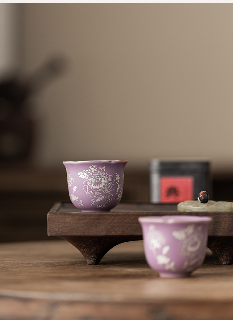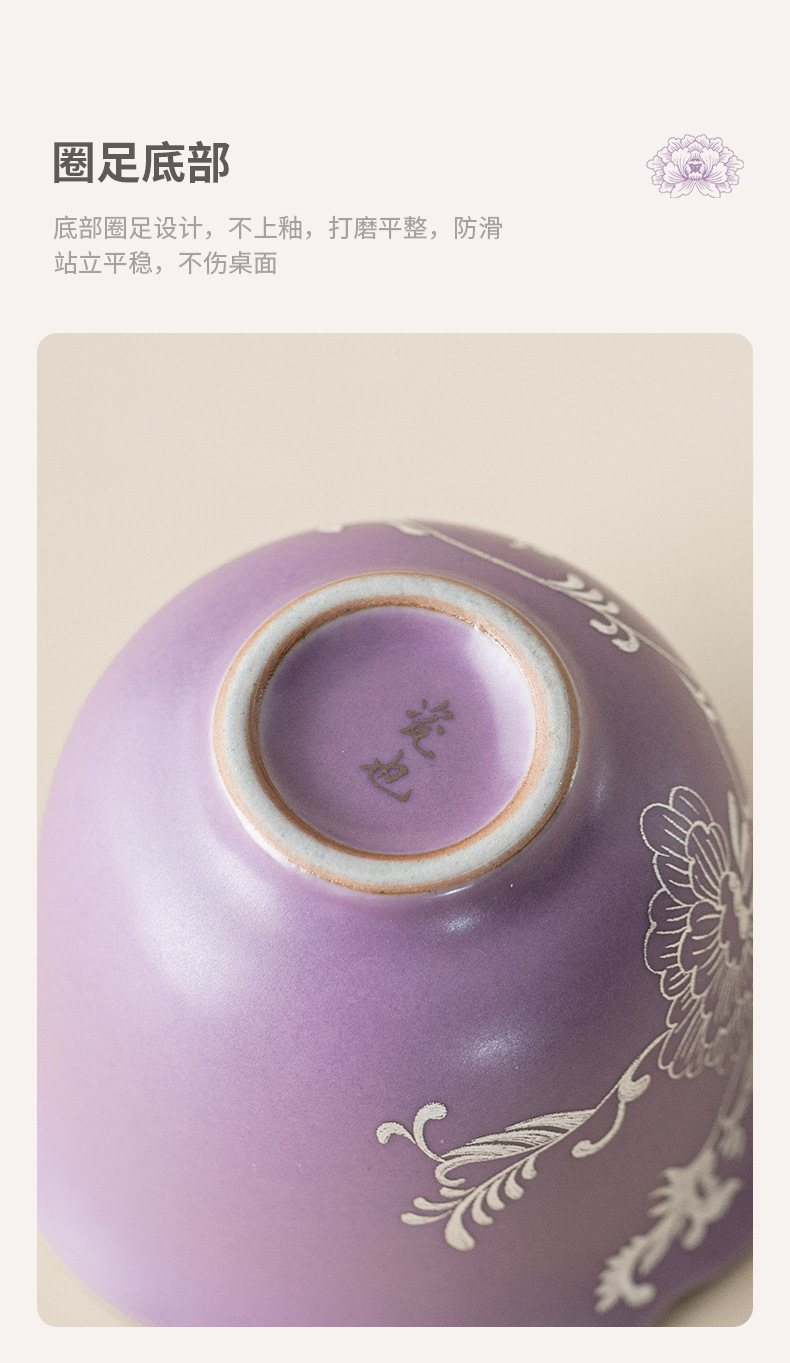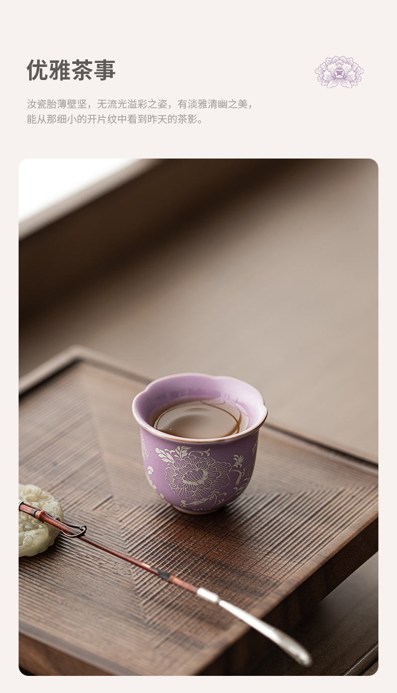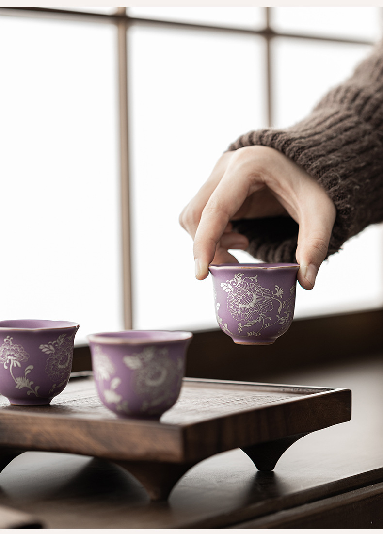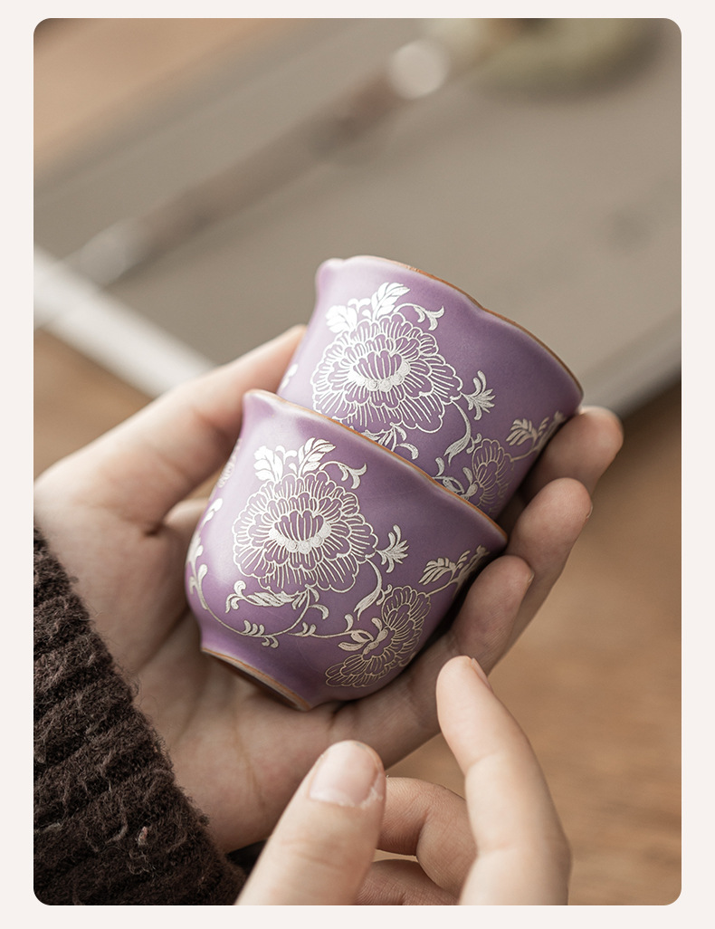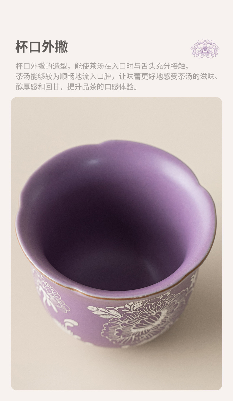 Tách trà hoa mẫu đơn bạc Ru tím Dehua, bộ ấm chén gốm sứ, tách khách, tách đơn, dành cho nữ, phong cách Kung Fu, dùng tại nhà