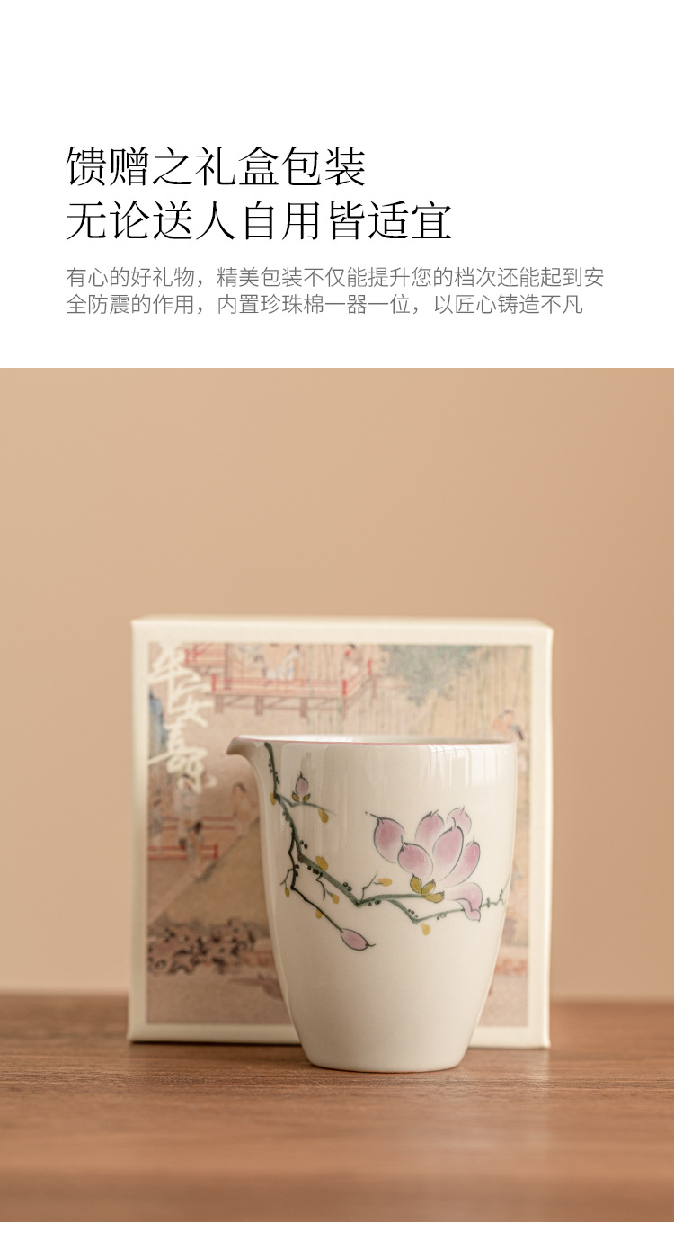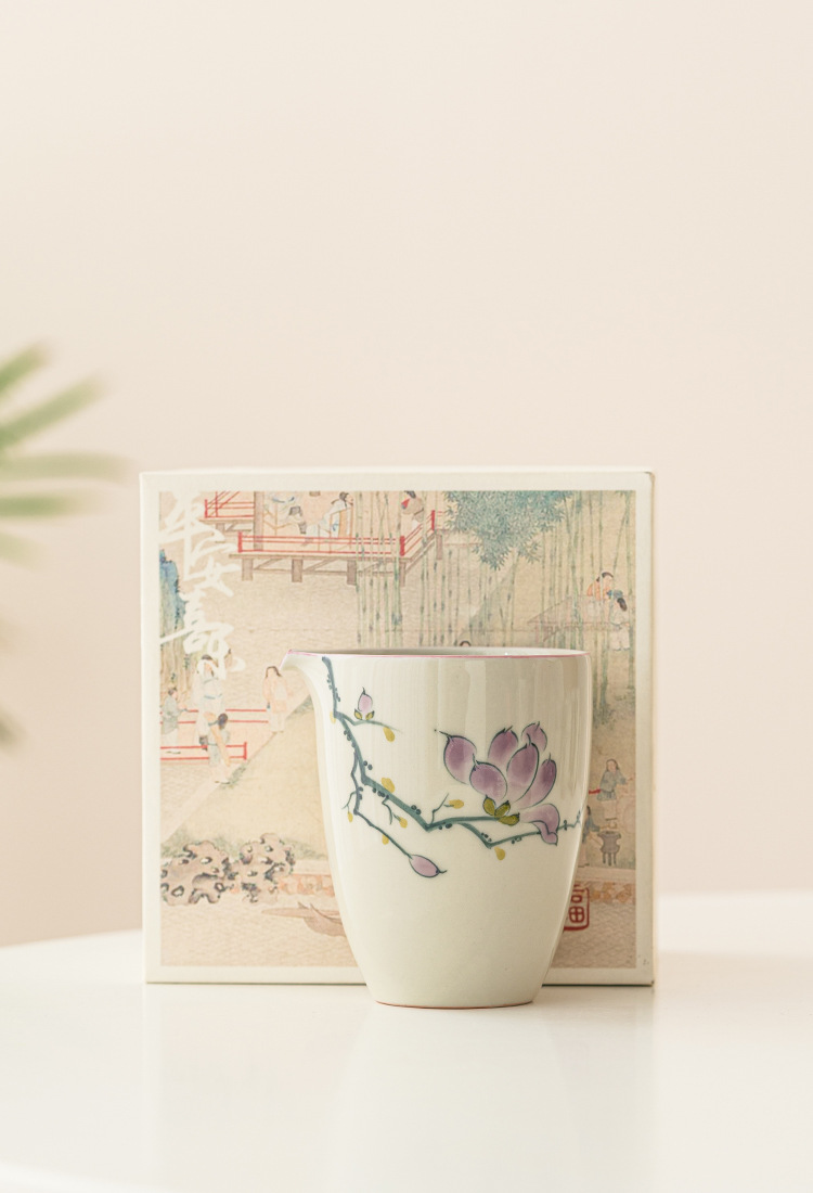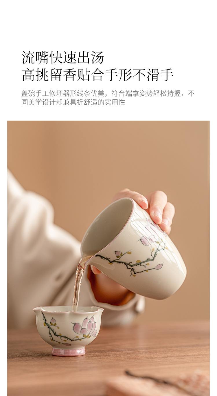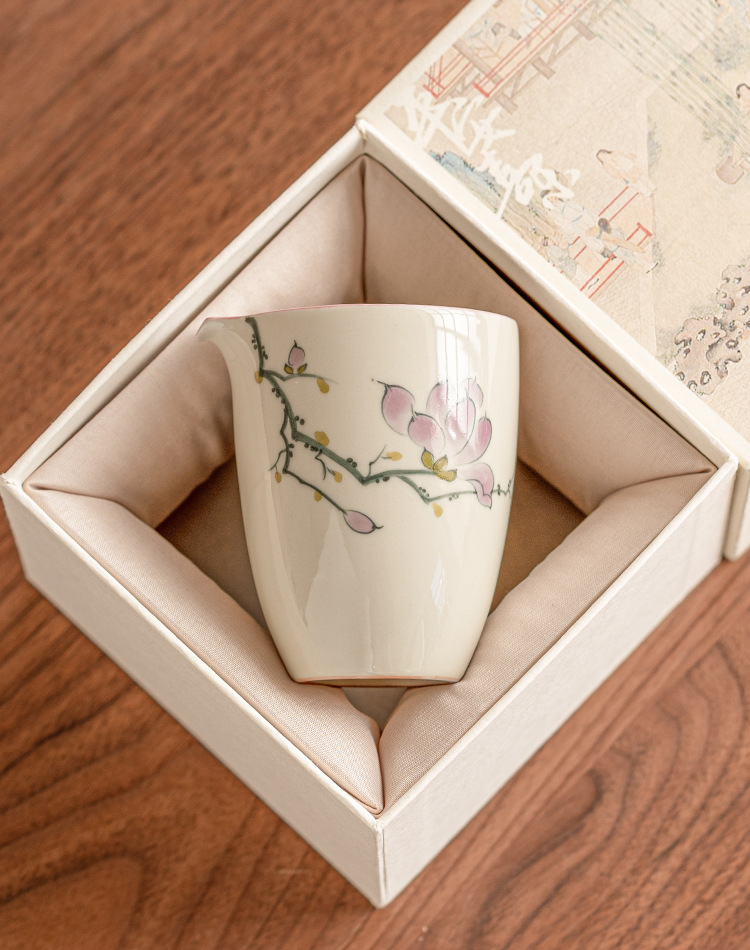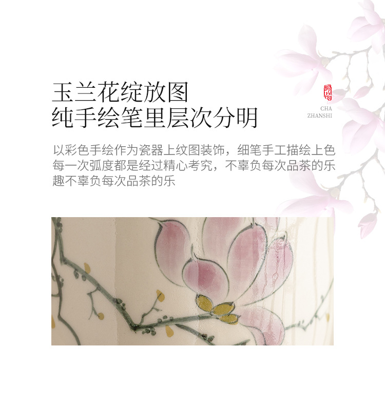 Tách Trà Hoa Mộc Lan vẽ tay, phụ kiện Bộ trà gốm sứ, tách trà đơn cao cấp, không nóng tay