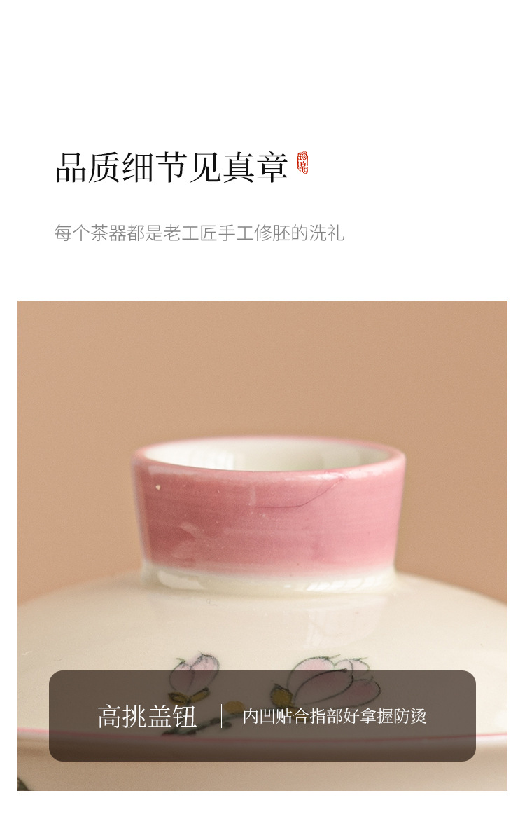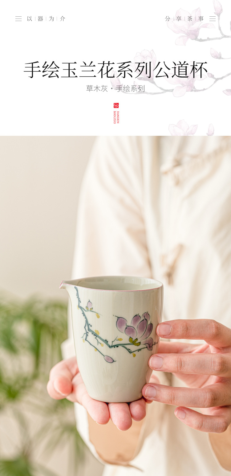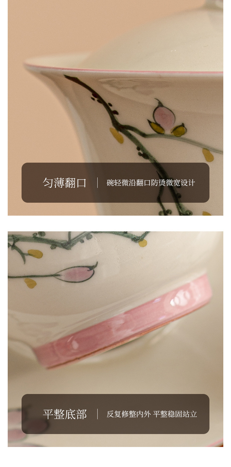 Tách Trà Hoa Mộc Lan vẽ tay, phụ kiện Bộ trà gốm sứ, tách trà đơn cao cấp, không nóng tay