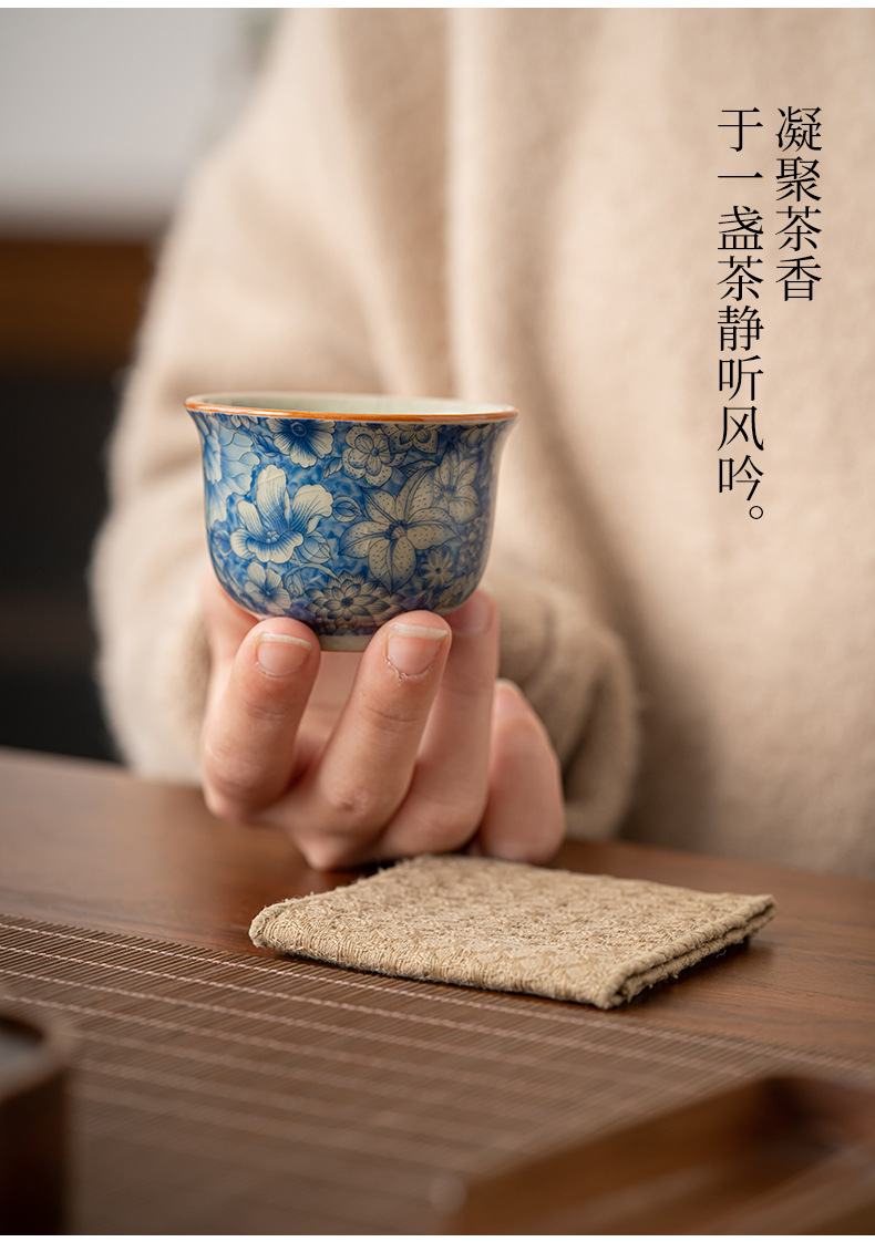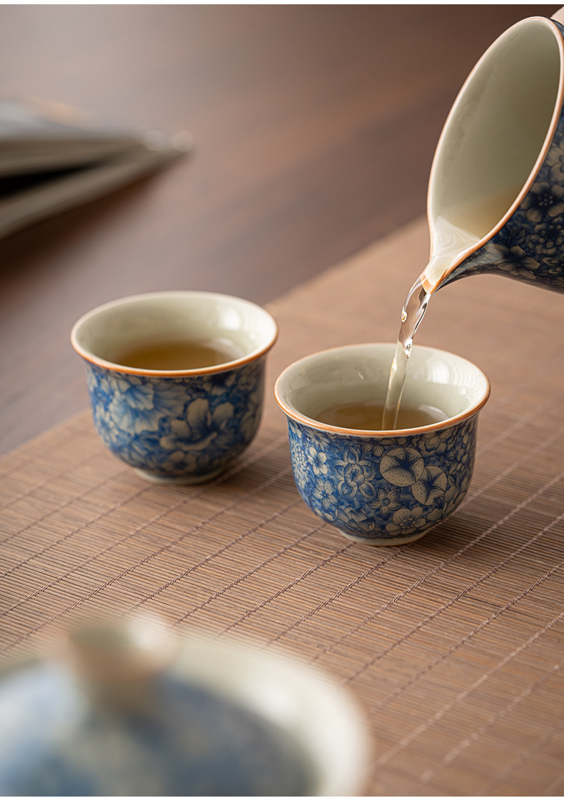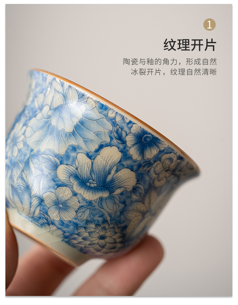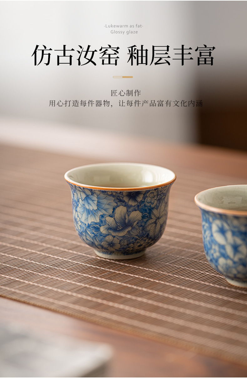 Tách trà hoa văn Ru Kiln, tách trà gốm sứ gia dụng, chén trà cá nhân, bộ ấm chén trà, tách trà chính, tách trà đơn màu xanh trắng