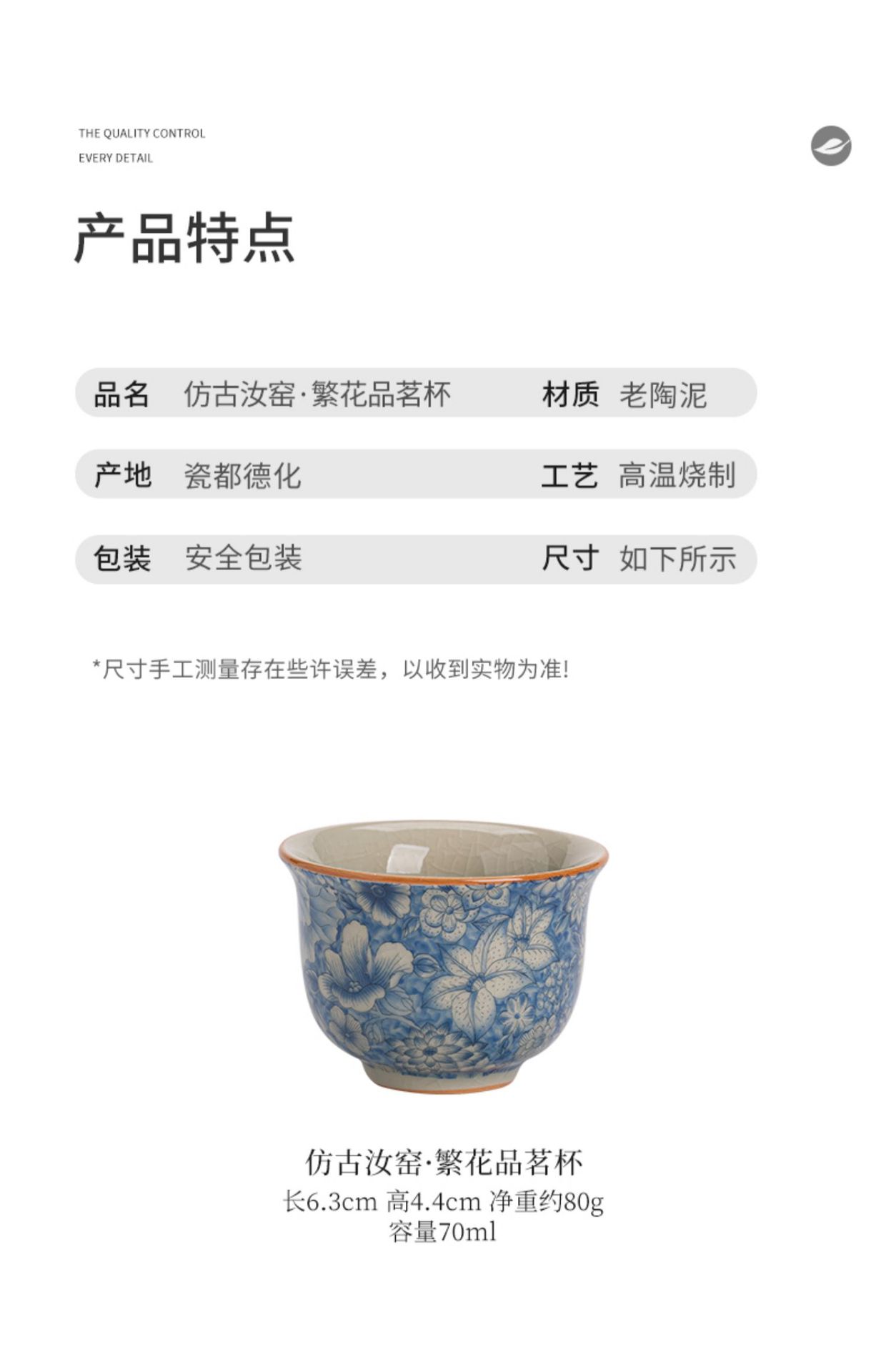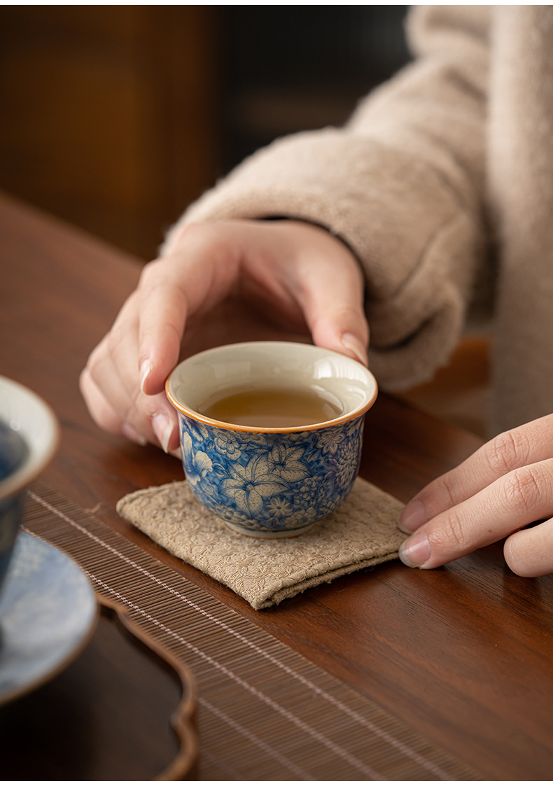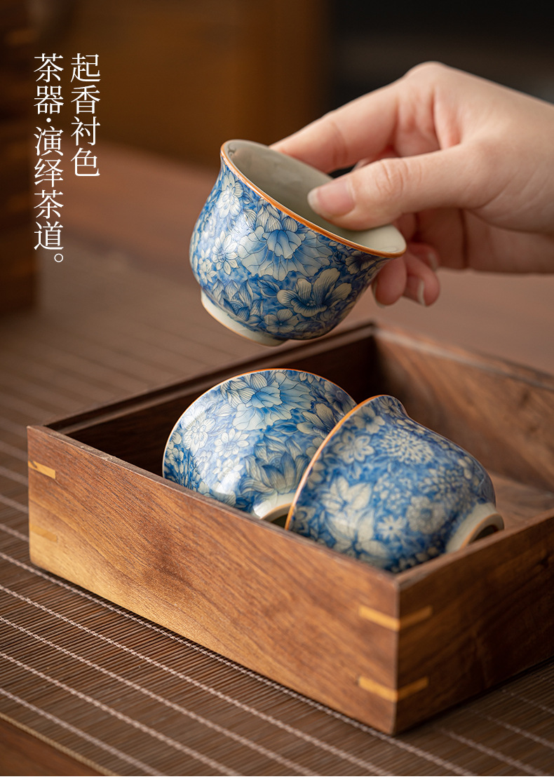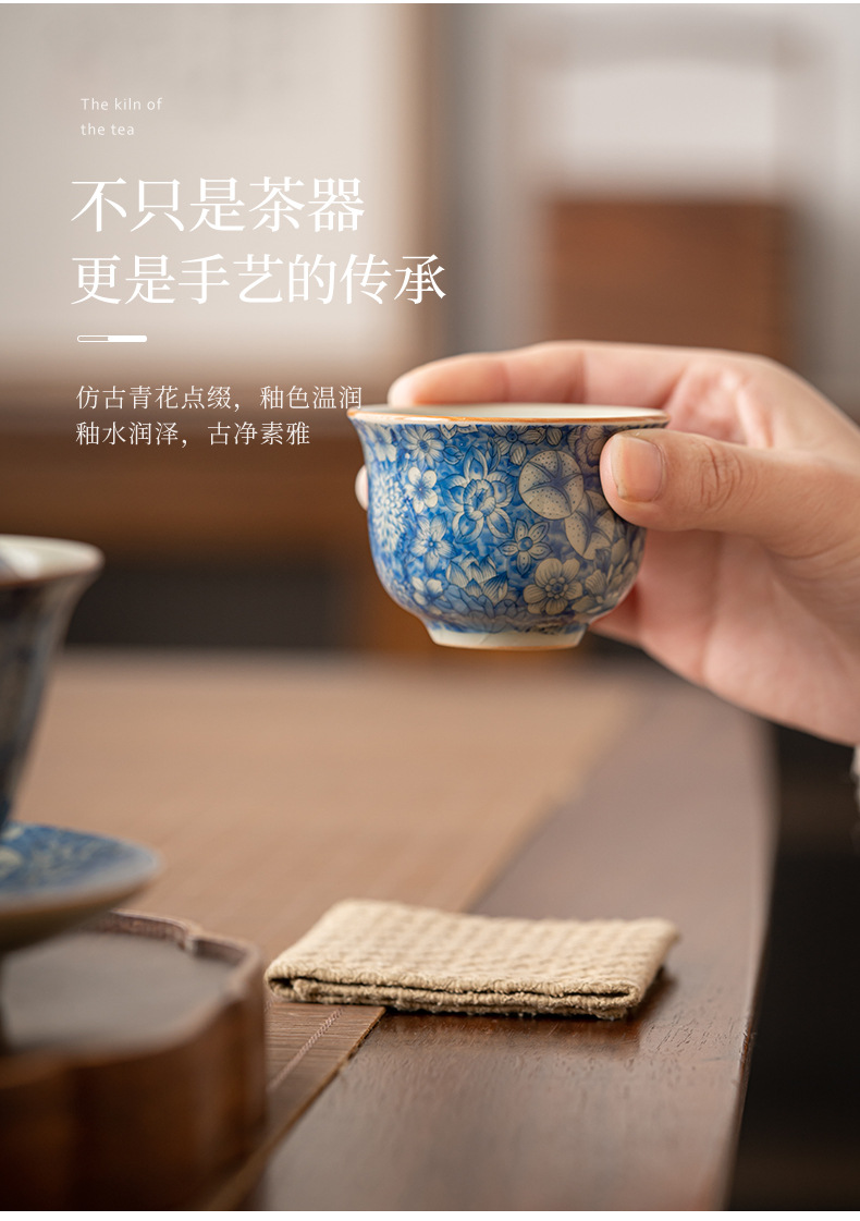 Tách trà hoa văn Ru Kiln, tách trà gốm sứ gia dụng, chén trà cá nhân, bộ ấm chén trà, tách trà chính, tách trà đơn màu xanh trắng