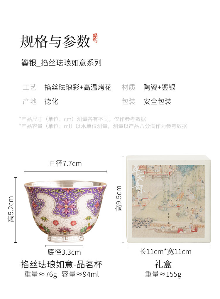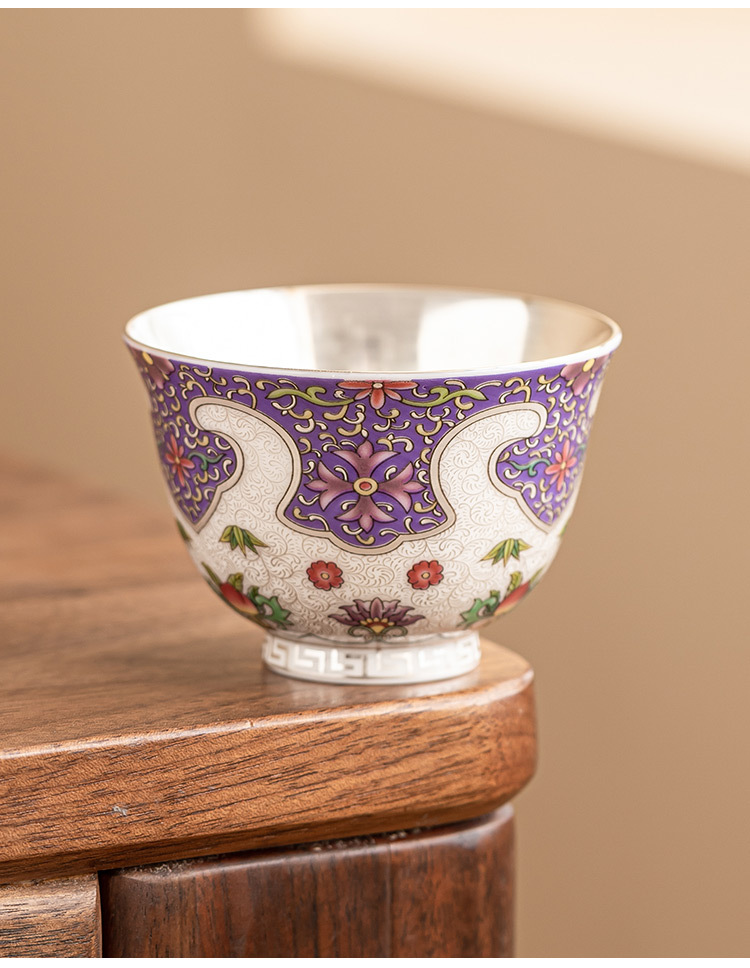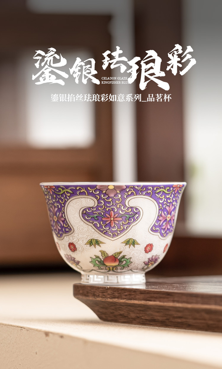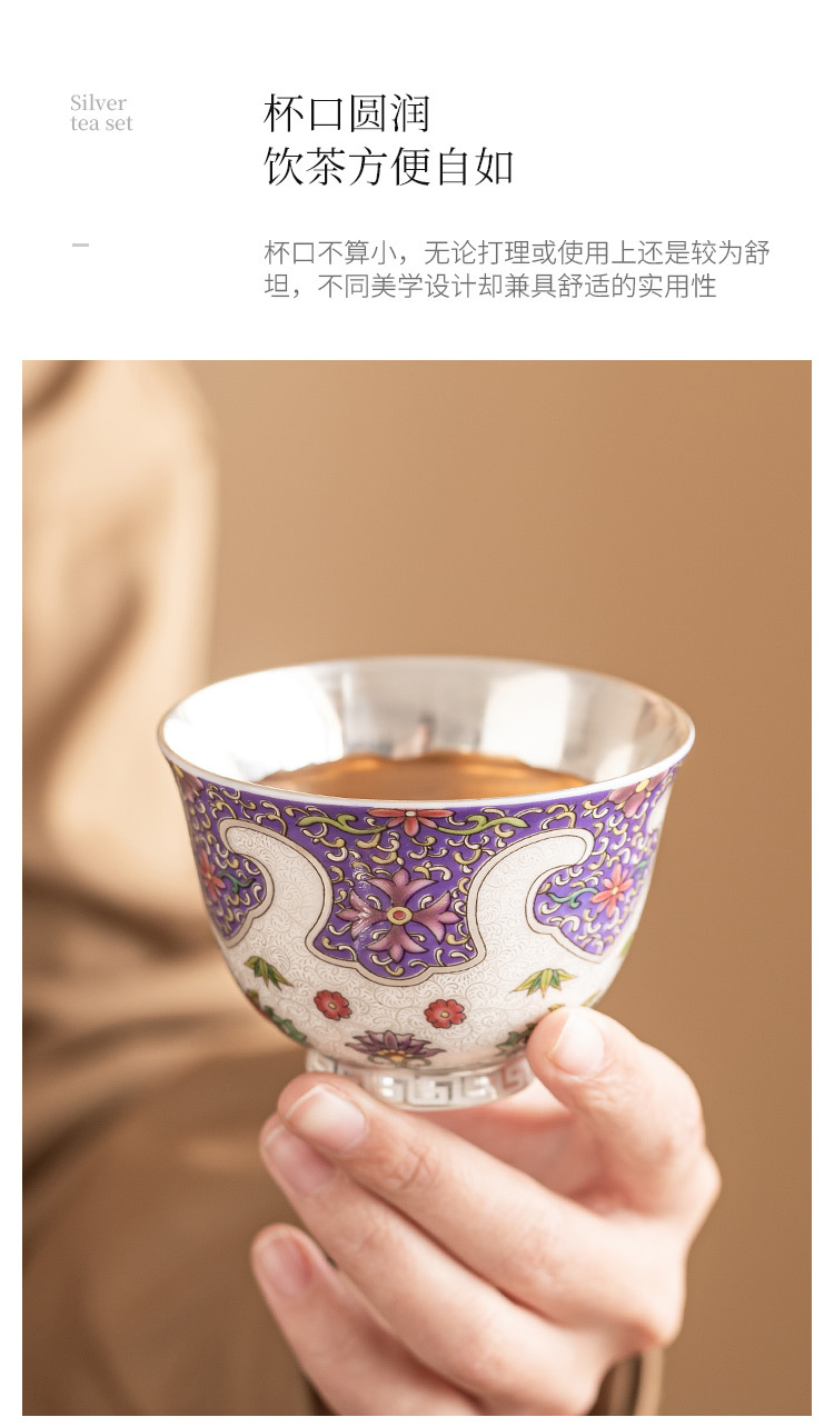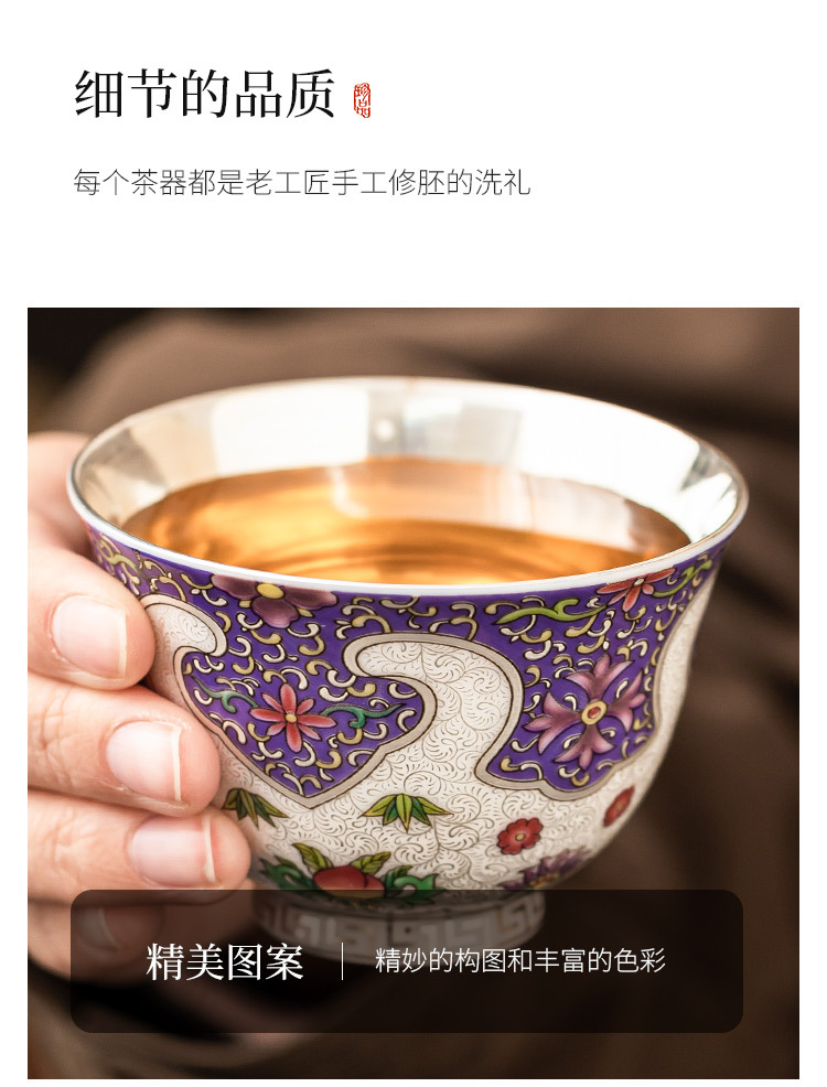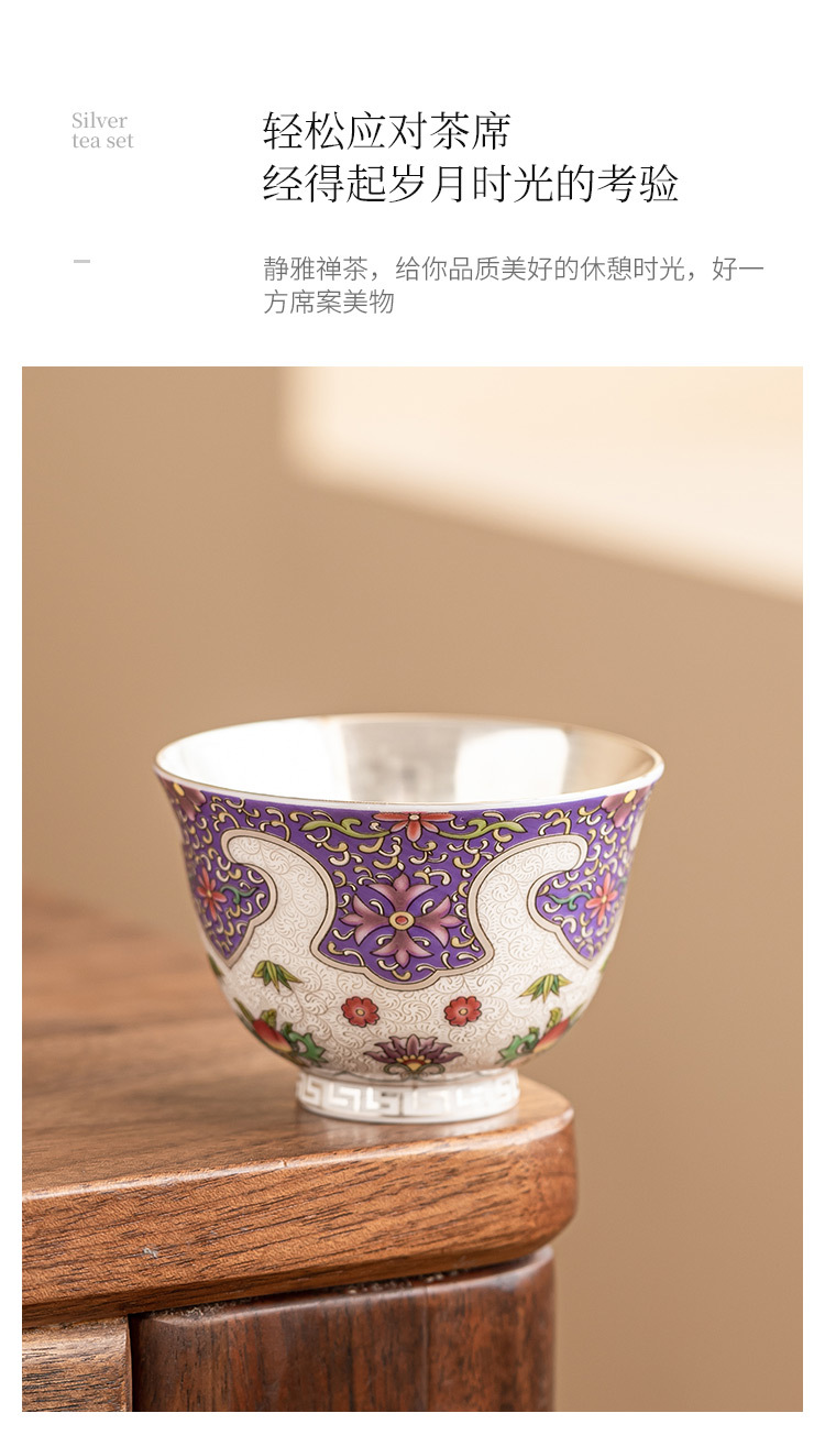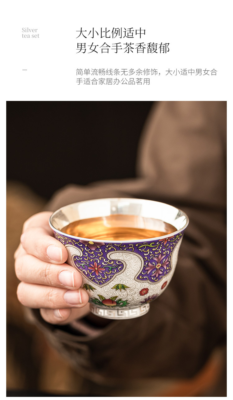 Tách trà men cloisonné 999 cốc chủ nhân cao cấp mạ bạc cốc trà phục vụ hương vị thanh lịch cốc trà cốc đơn