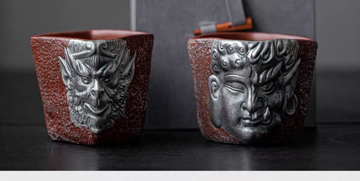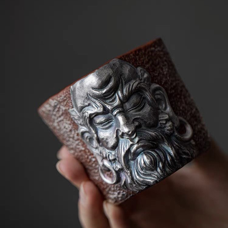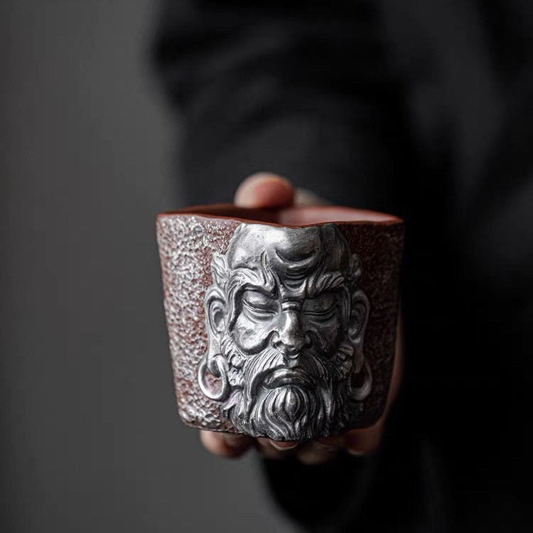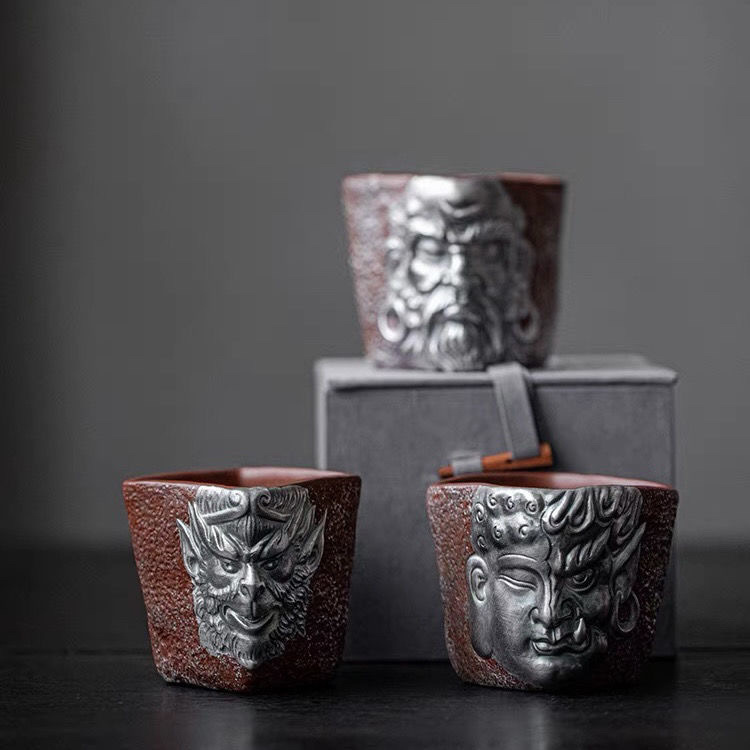 - Tách trà men gốm tím vẽ tranh bạc, tách trà hình vuông khoáng sản thô, tách trà thủ công nổi, bát trà Kung Fu cổ điển mạ vàng bạc