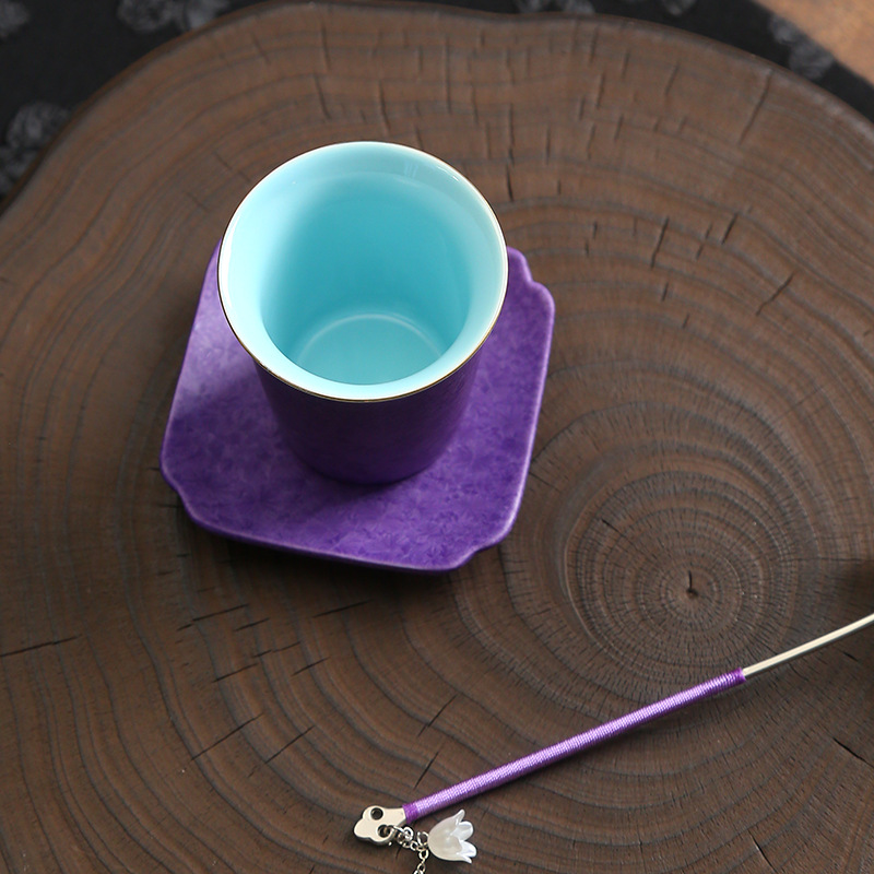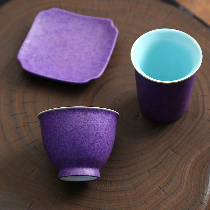 Tách trà men pha lê màu tím, tách trà chống bỏng, bộ trà, cốc uống nước, quà tặng cao cấp, tinh tế, sang trọng và sang trọng