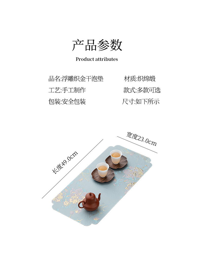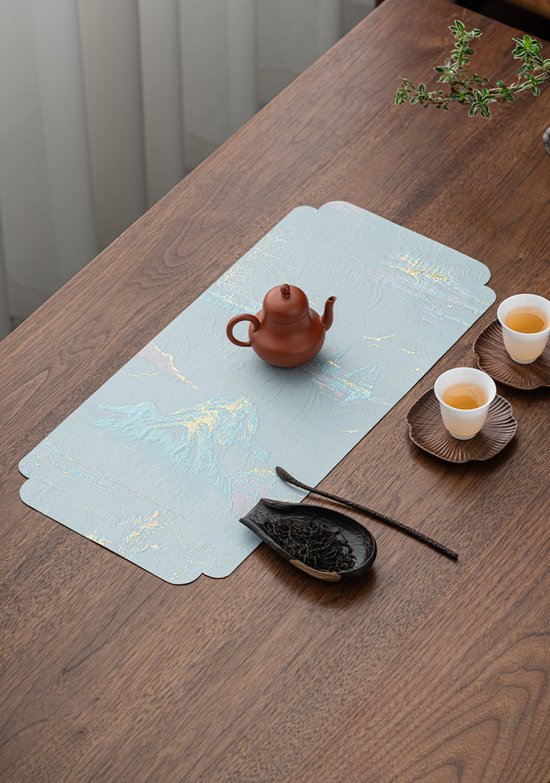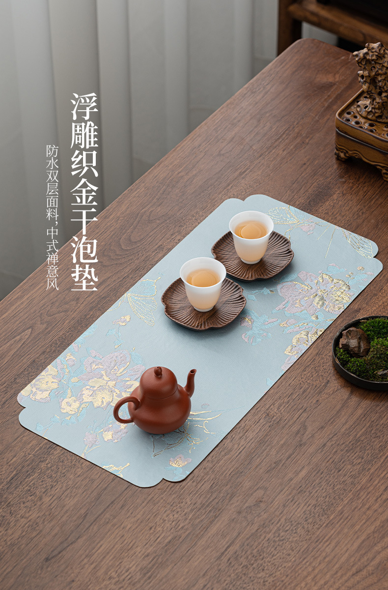 Tấm lót bàn trà khô hai mặt dệt vàng nổi Tấm lót bàn trà khô