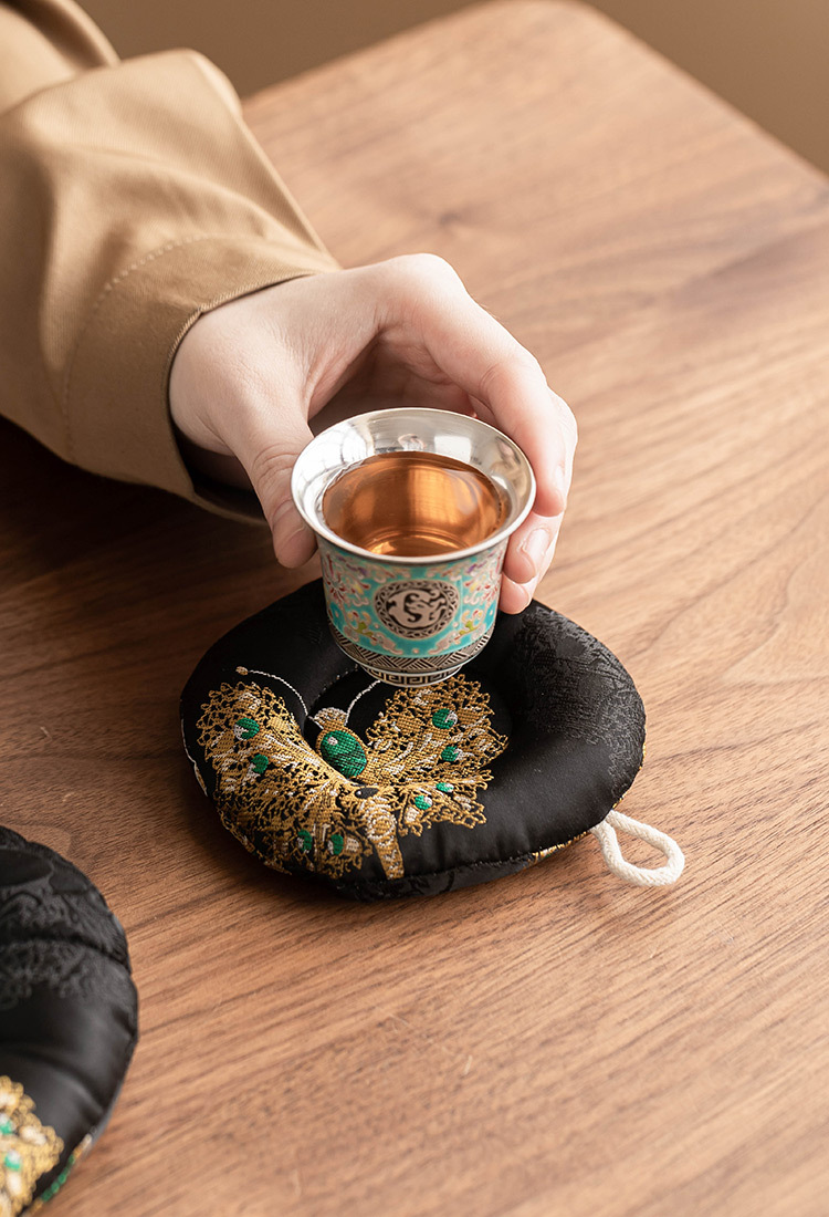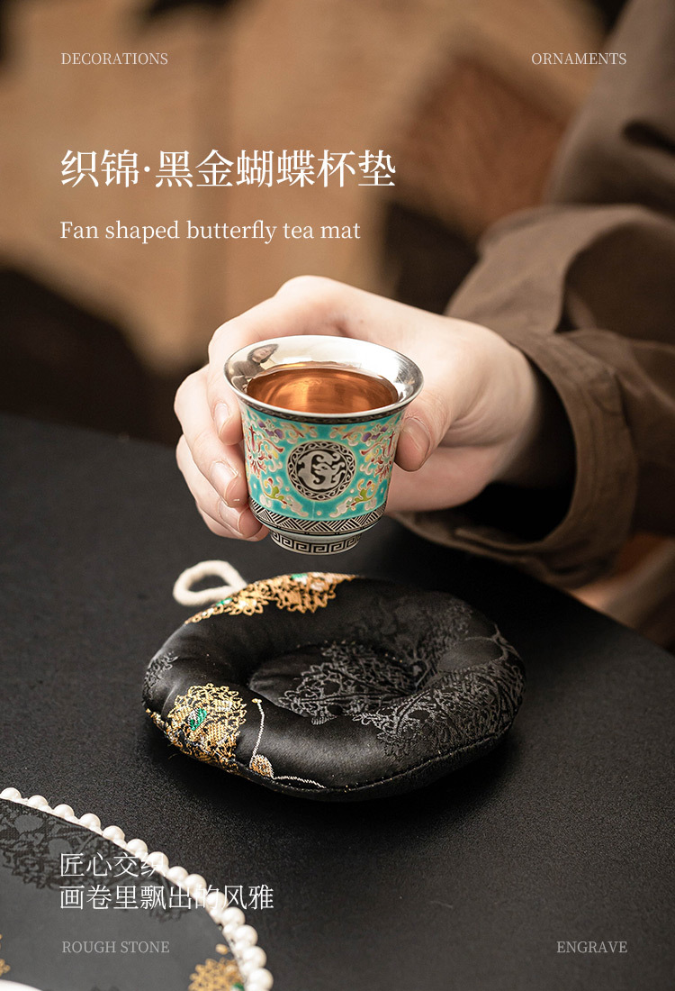 Tấm lót cốc bướm vàng đen thổ cẩm tấm lót bàn trà tấm lót trà tấm lót bằng vải nghệ thuật nắp bát tấm lót cốc trà tấm lót cách nhiệt chống bỏng tấm lót ấm