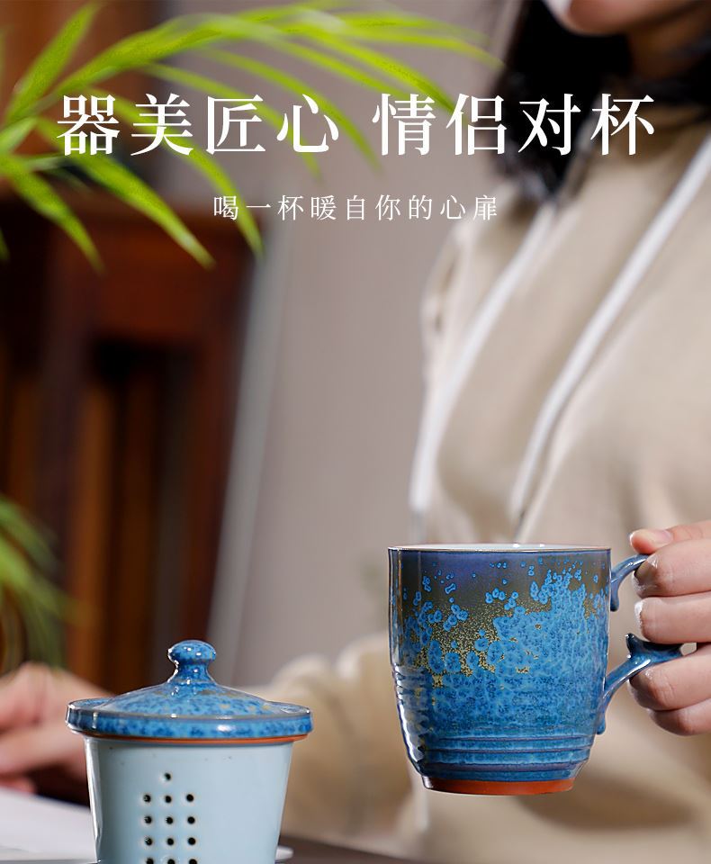 Tang She Zhang Jinxi Floating Jade Blue Jade Tea Tách tách trà cao cấp Cốc lọc nước văn phòng gốm sứ