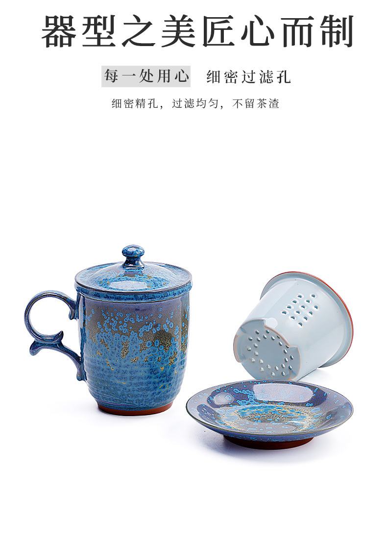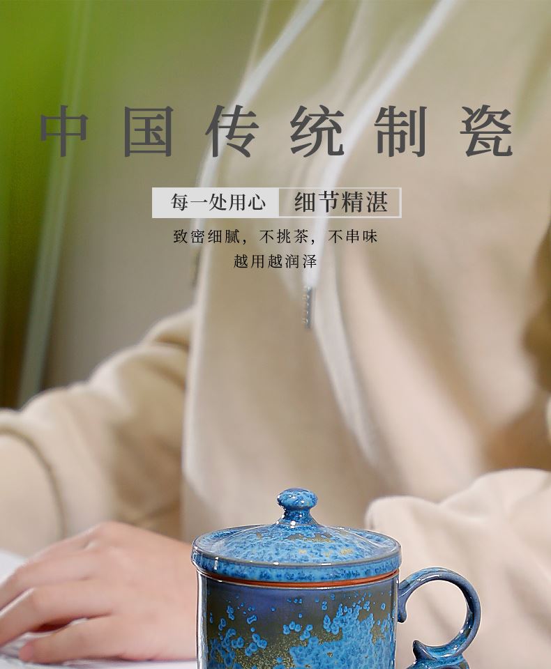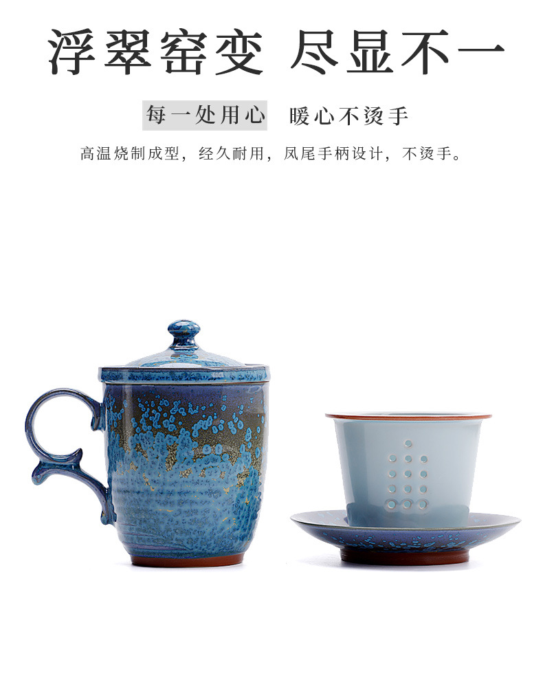 - Tang She Zhang Jinxi Floating Jade Blue Jade Tea Tách tách trà cao cấp Cốc lọc nước văn phòng gốm sứ