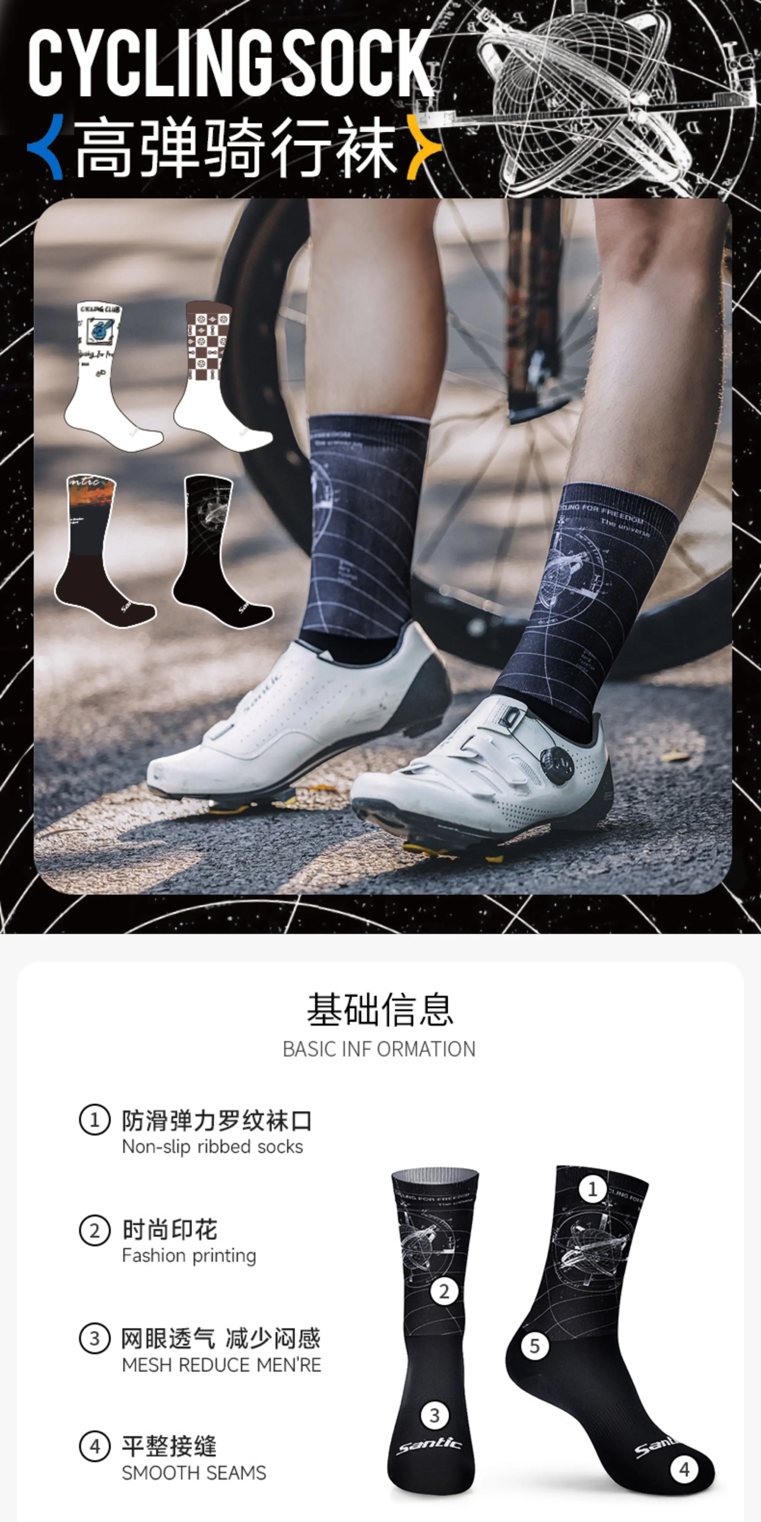 - Tất thể thao đạp xe Santic Tất dài đến giữa bắp chân Tất chạy bộ thoáng khí cho mọi mùa Dòng Poppy