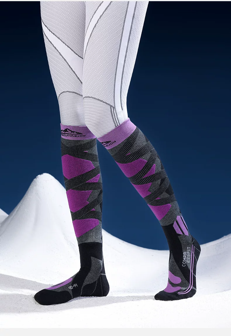 Tất trượt tuyết chuyên nghiệp dành cho nam và nữ, tất ống dài dày bằng len dành cho người lớn dành cho ván đơn và ván đôi, chống xù, thấm mồ hôi, chống trơn trượt và ấm áp.