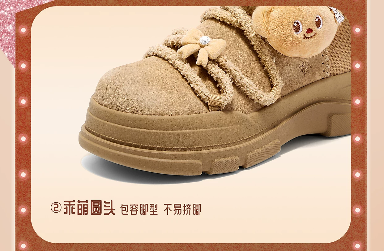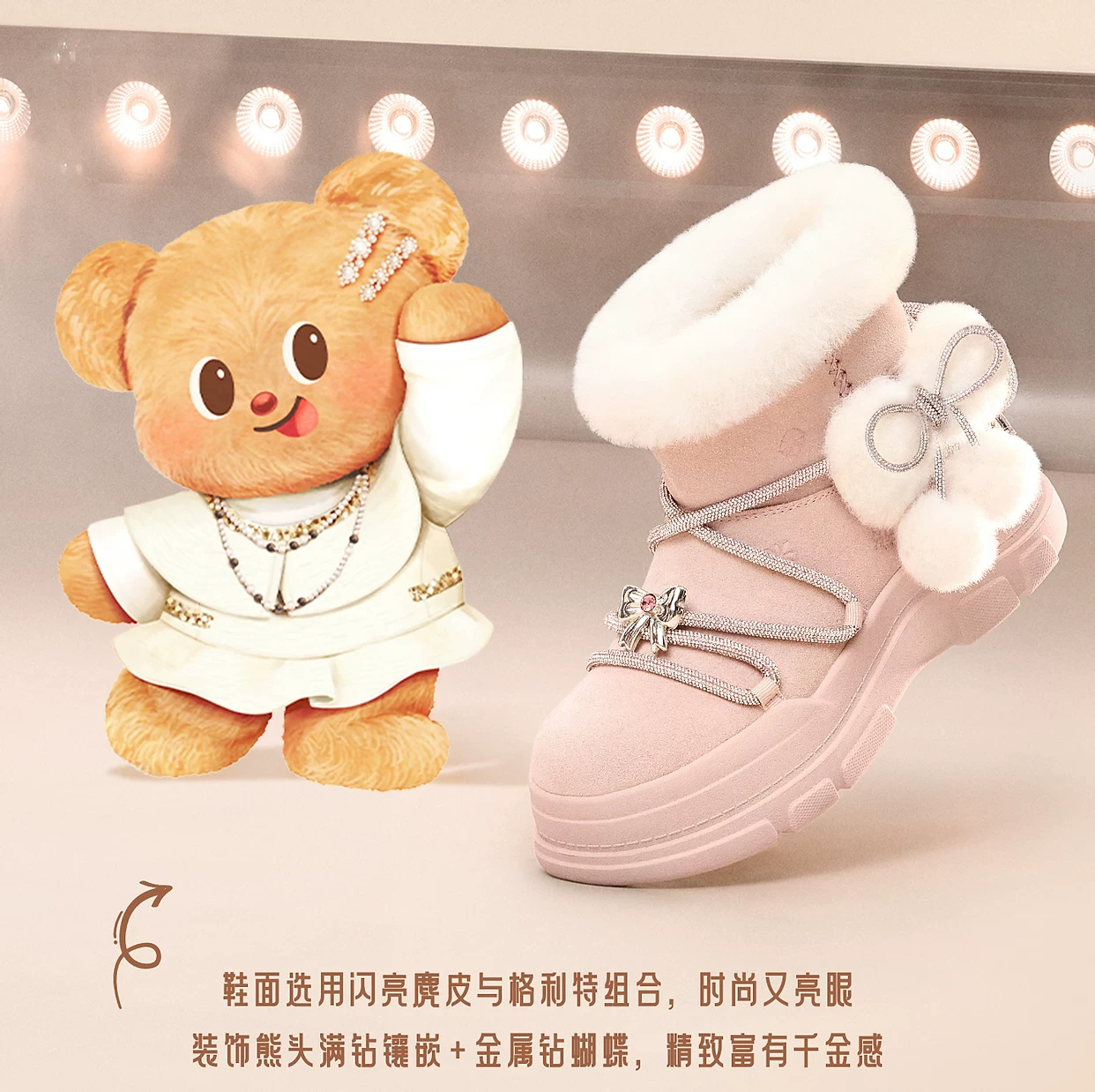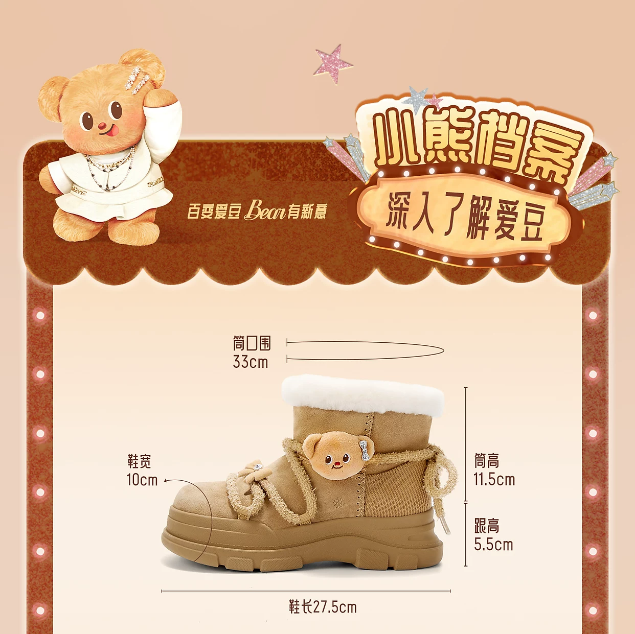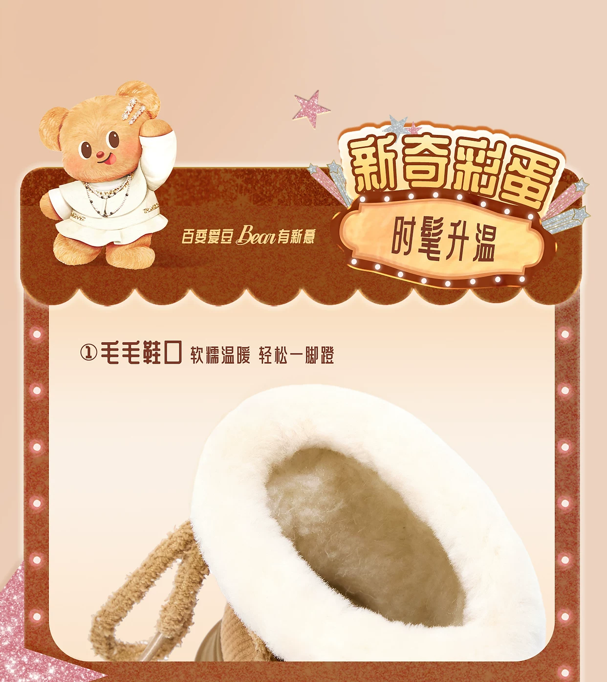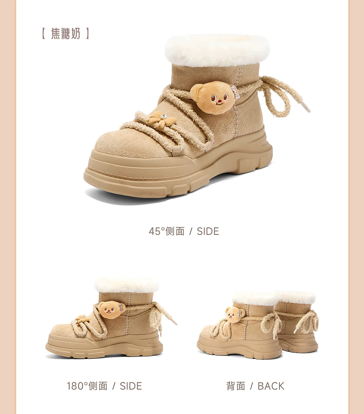 - TATA Butter Bear Giày bốt đi tuyết mùa đông Giày cotton lót lông cừu Giày bốt ngắn nữ ấm áp KRX01DD5
