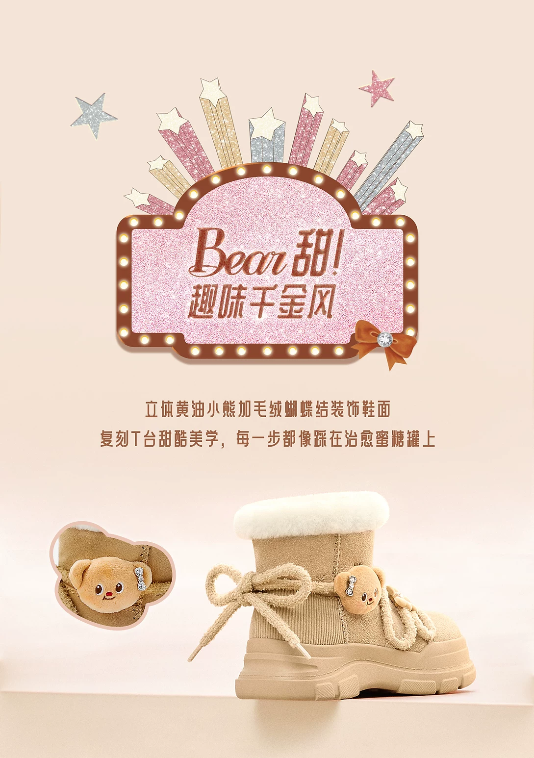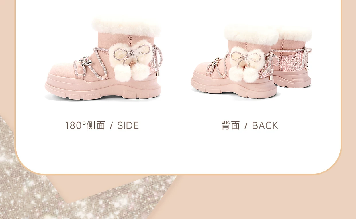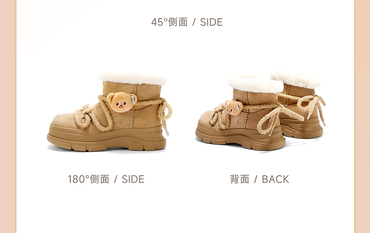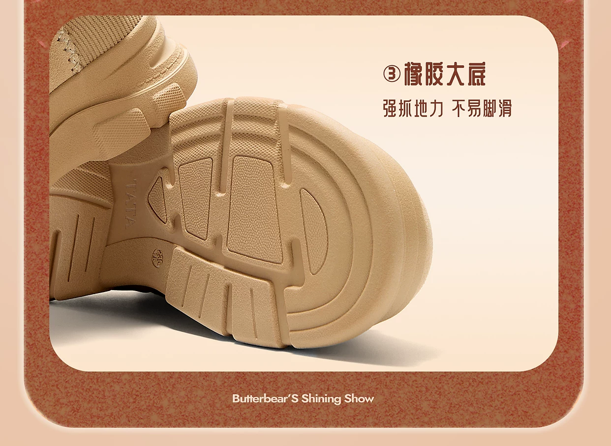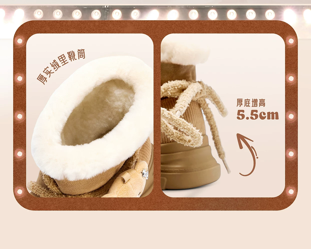- TATA Butter Bear Giày bốt đi tuyết mùa đông Giày cotton lót lông cừu Giày bốt ngắn nữ ấm áp KRX01DD5