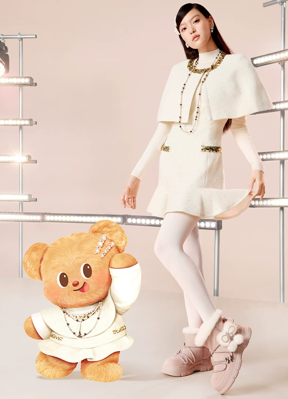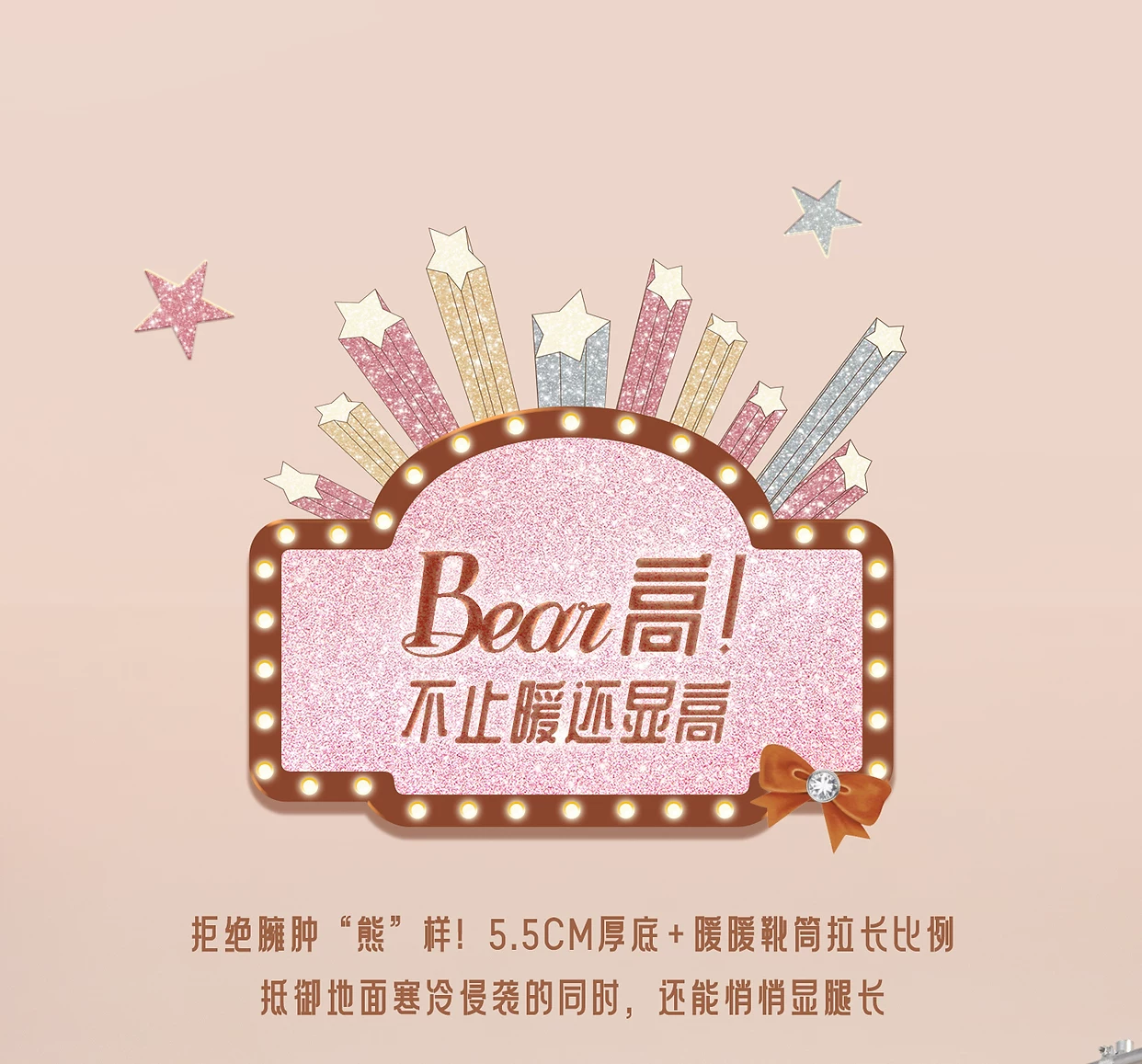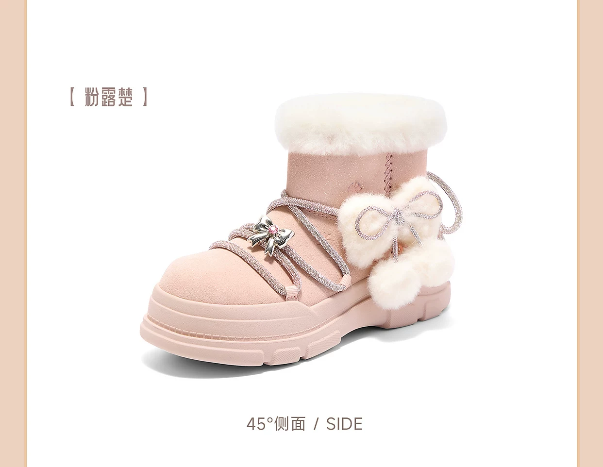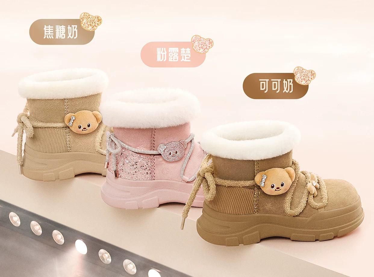 - TATA Butter Bear Giày bốt đi tuyết mùa đông Giày cotton lót lông cừu Giày bốt ngắn nữ ấm áp KRX01DD5
