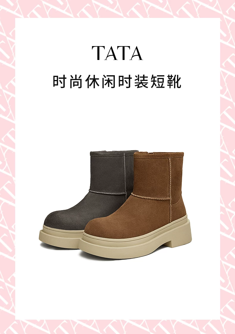 - TATA Đế Dày Lót Lông Cừu Ủng Nữ Giày Bốt Nữ Ấm Da Thật Chính Hãng Da Vintage Giày Boot Cổ Ngắn Mùa Đông 2024 Mới CW501DD4