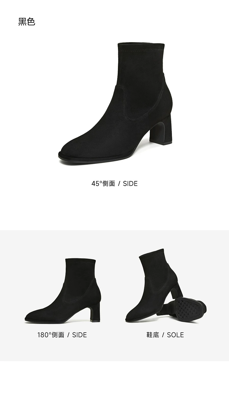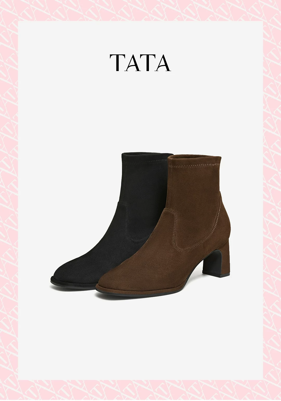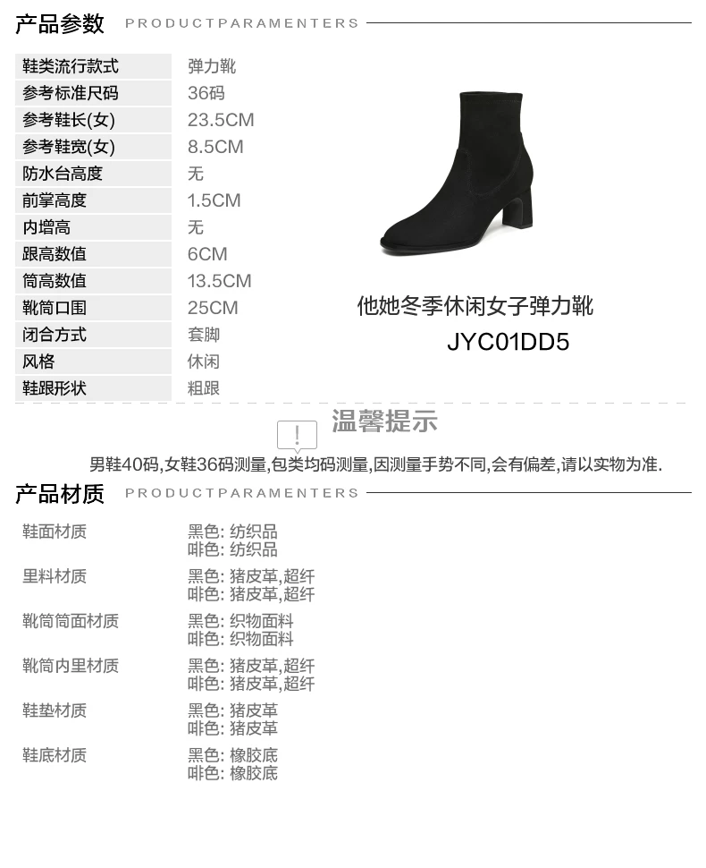- TATA giày bốt của anh ấy 2025 mùa đông giày bốt thời trang mới giày cao gót nữ giày bốt đa năng màu đen co giãn JYC01DD5