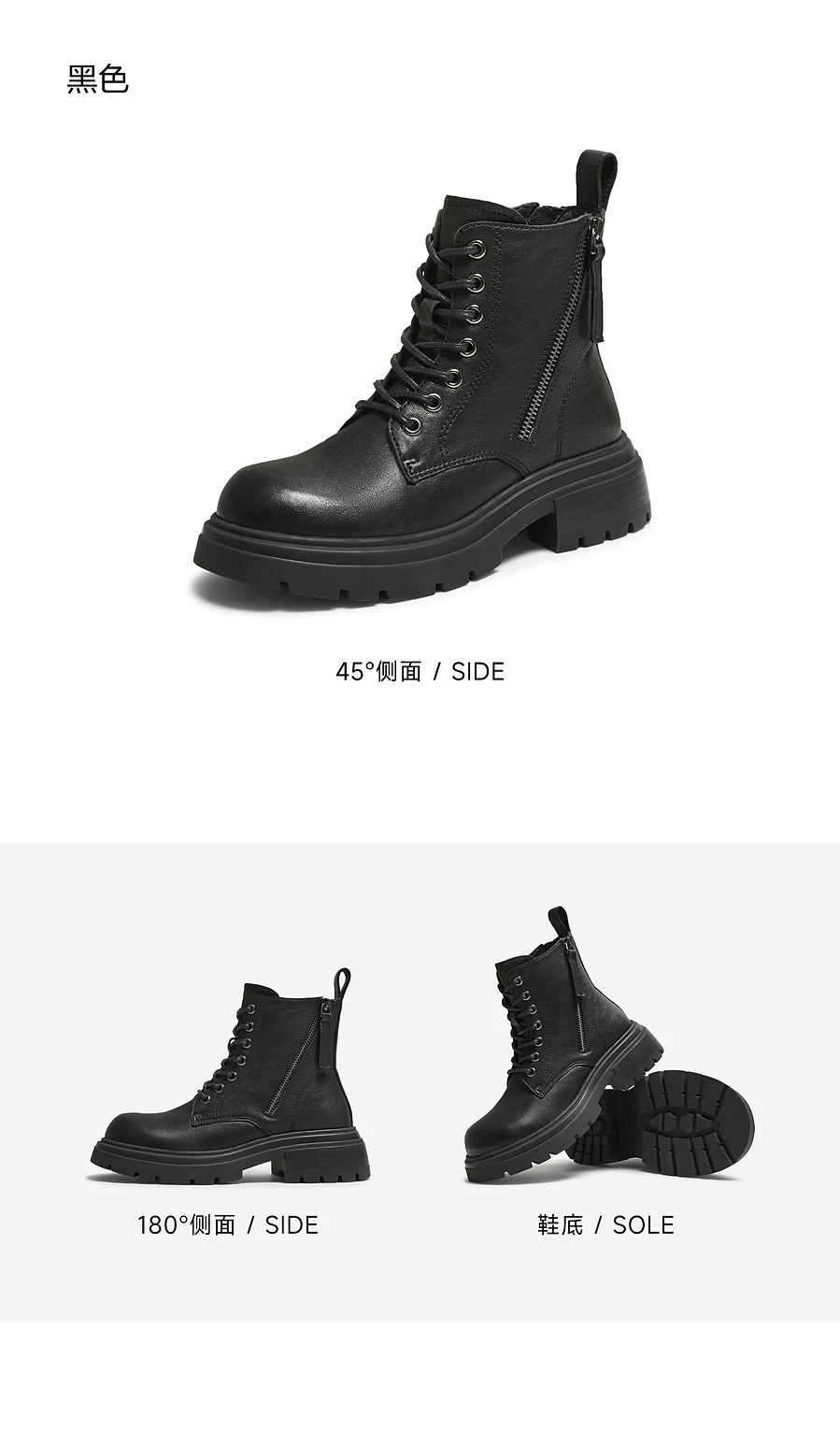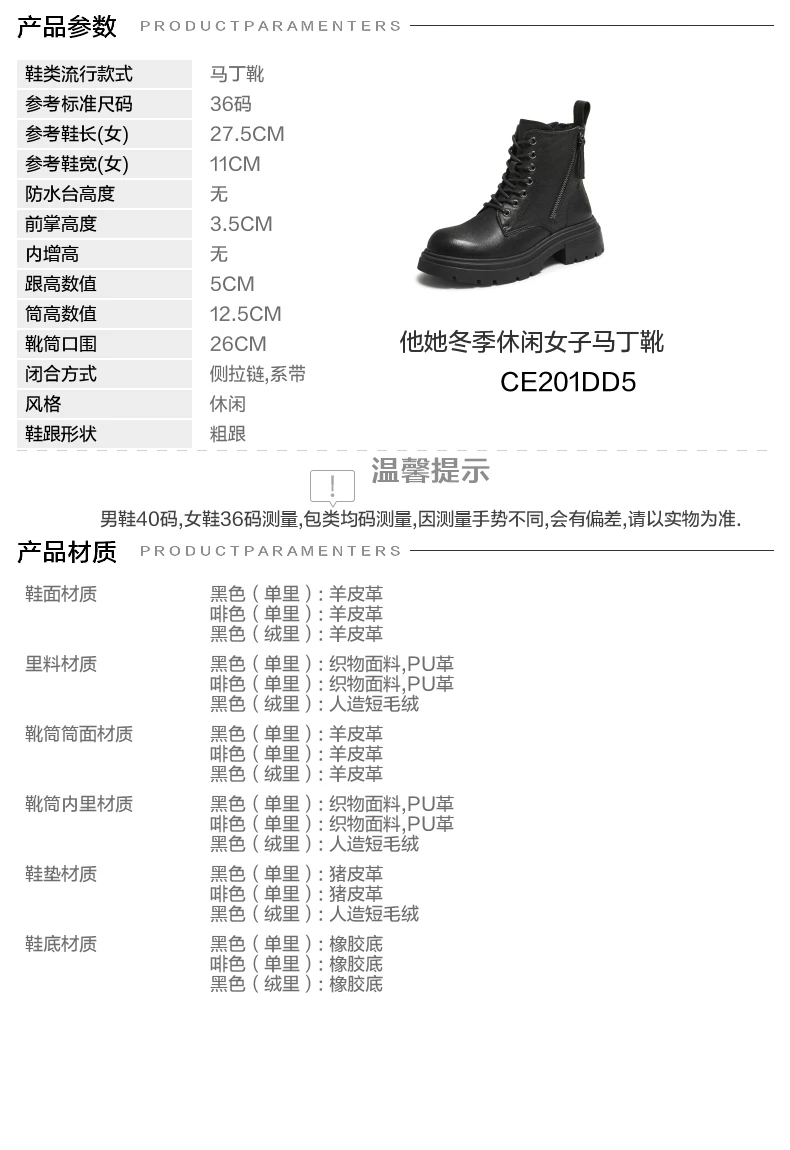 - TATA giày bốt của anh ấy/cô ấy 2025 mùa đông giày bốt thời trang mới giày bốt đa năng giày nữ đơn giản Giày bốt Martin CE201DD5