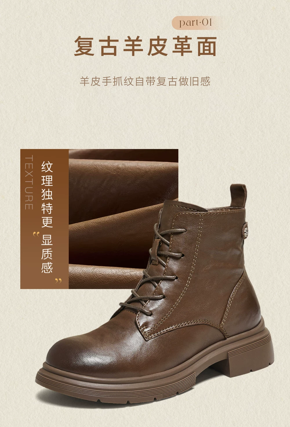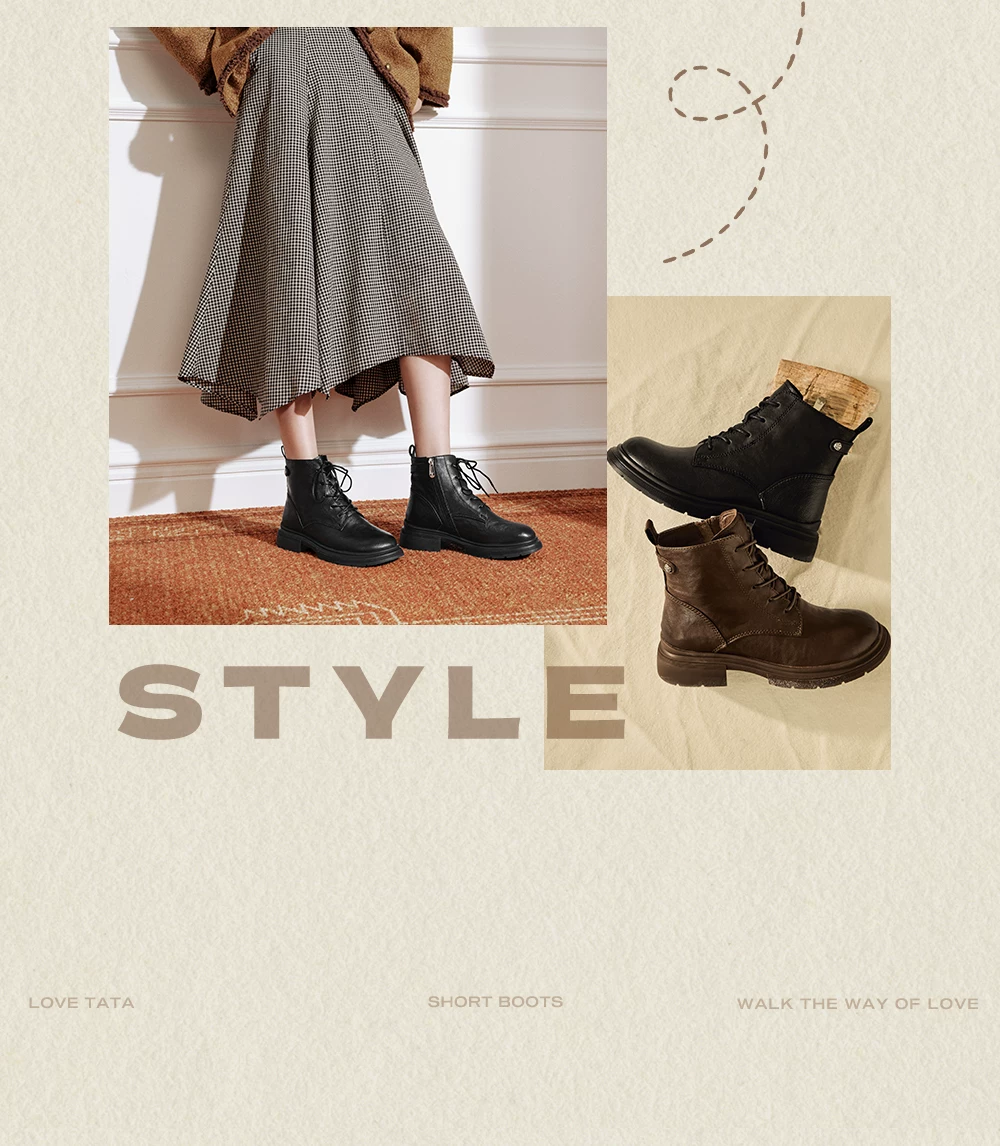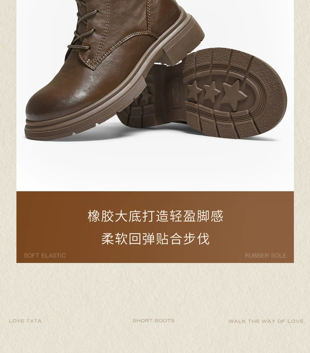 - TATA giày bốt của anh ấy/cô ấy 2025 mùa đông giày bốt thời trang mới giày bốt ngắn có lông cừu giày nữ giày bốt Martin WXB06DD5