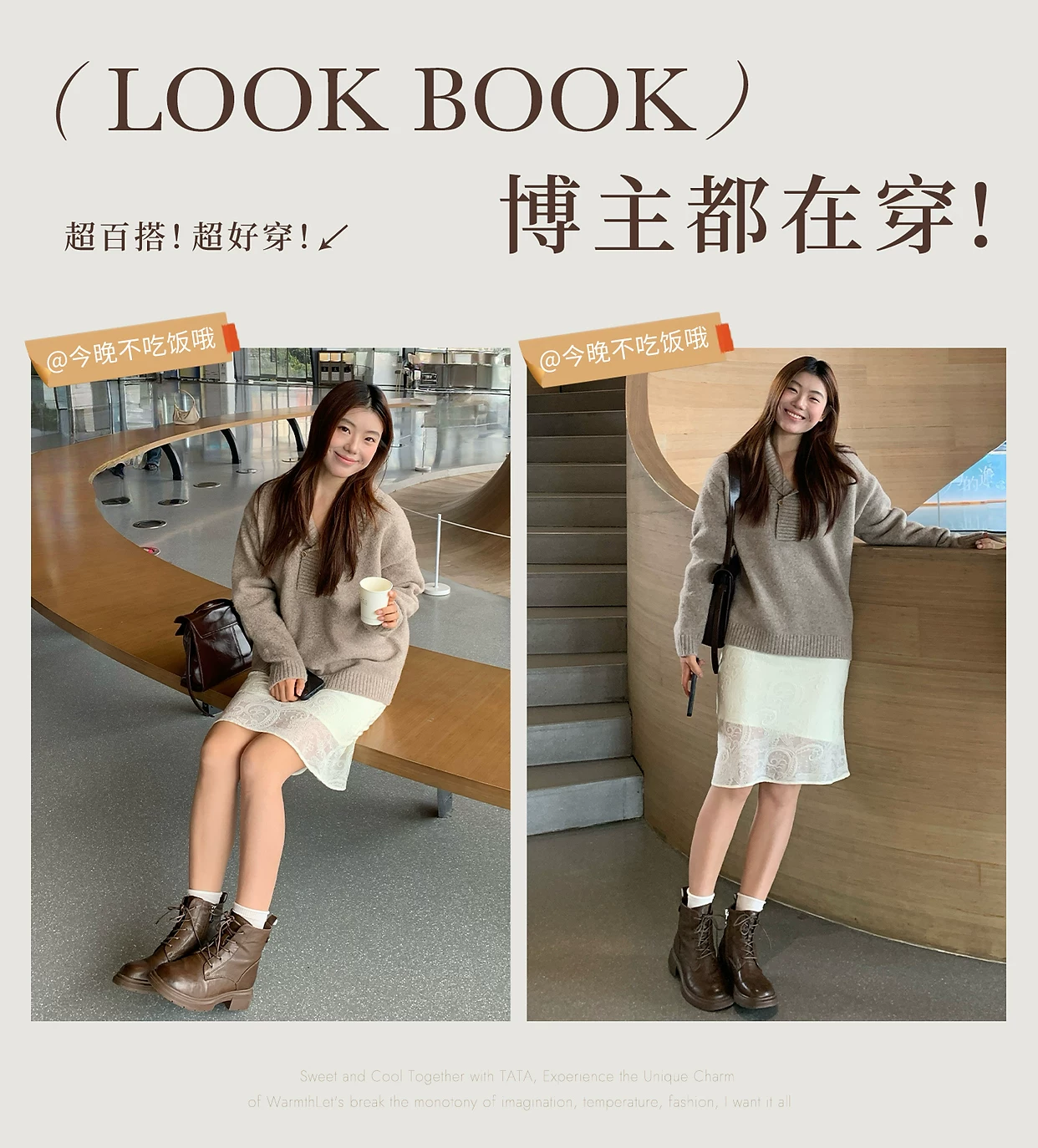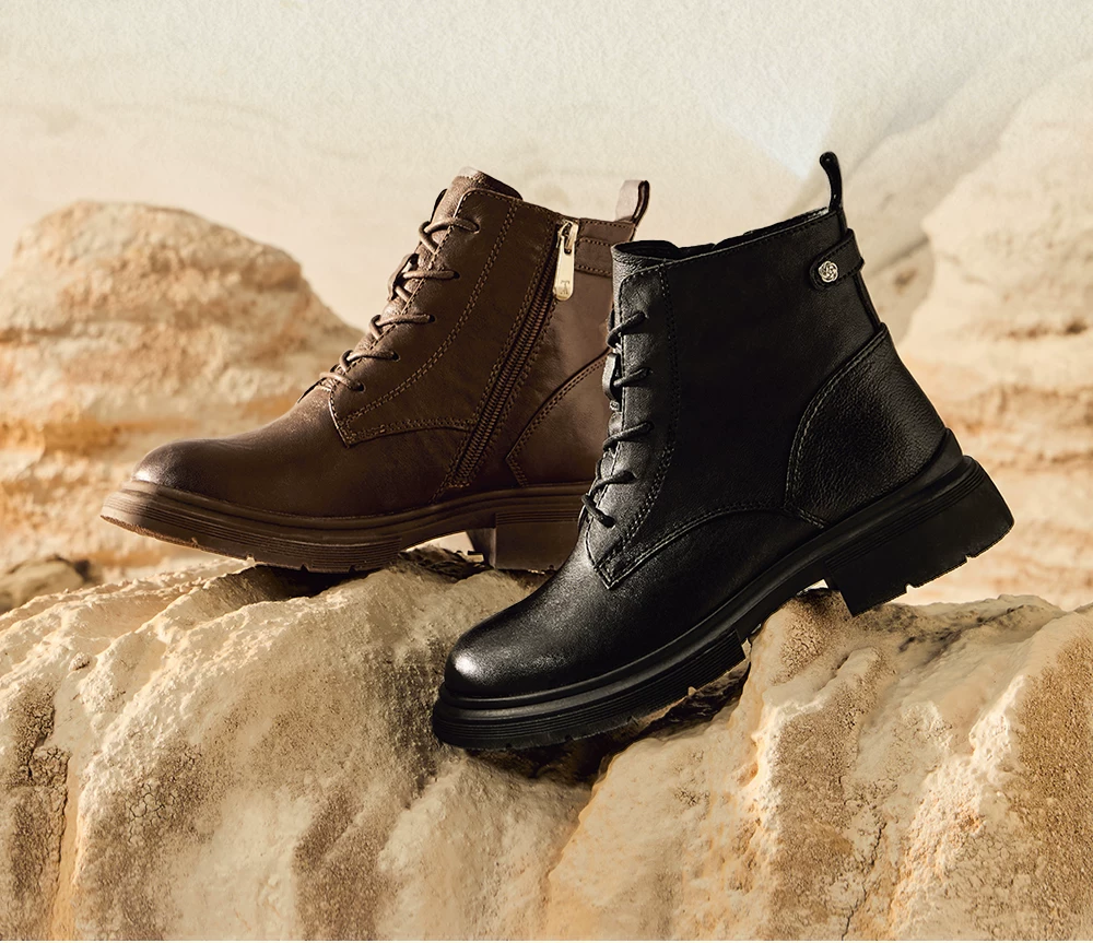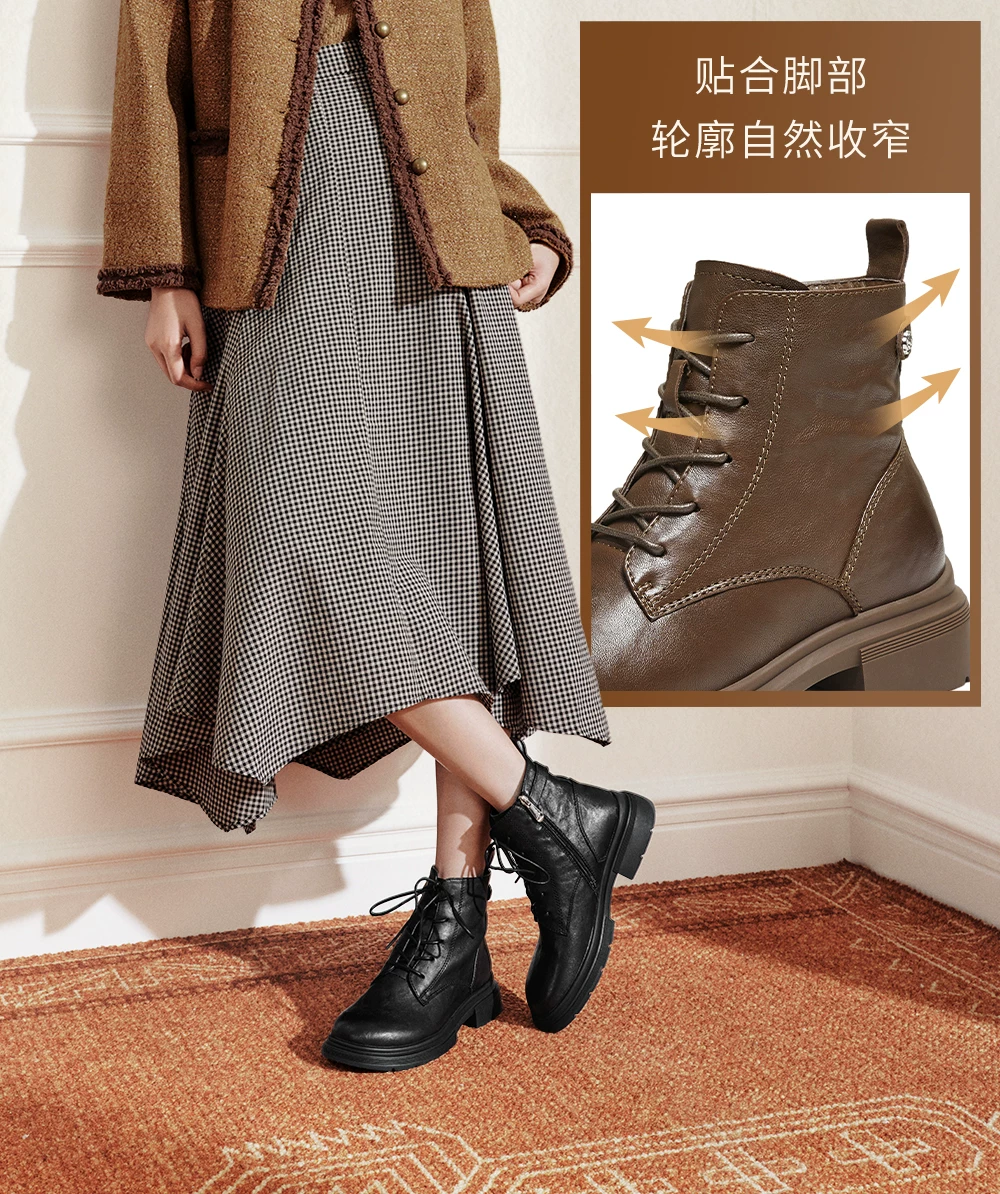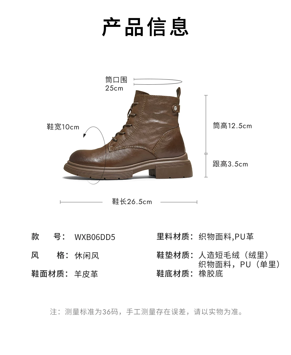 - TATA giày bốt của anh ấy/cô ấy 2025 mùa đông giày bốt thời trang mới giày bốt ngắn có lông cừu giày nữ giày bốt Martin WXB06DD5