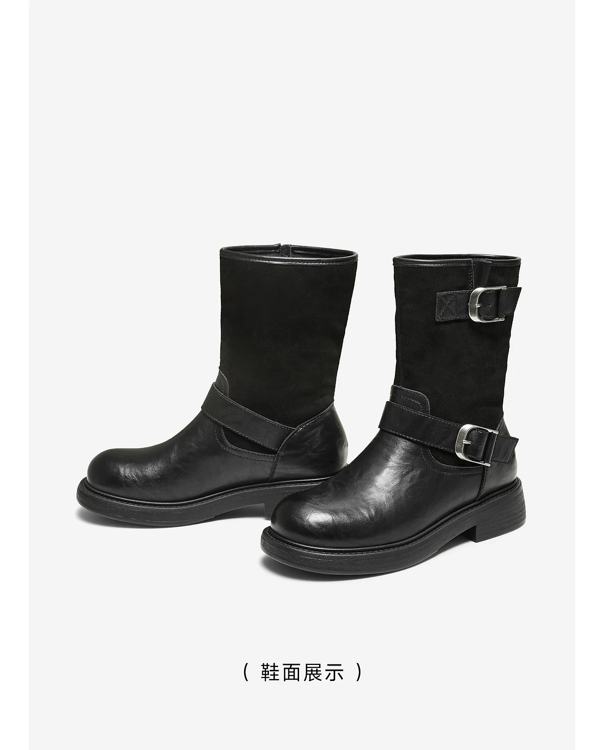 TATA giày bốt mùa đông 2025 kiểu mới giày bốt kiểu miền Tây thời trang giày bốt ngắn giản dị màu đen giày bốt thời trang CHL01DS5