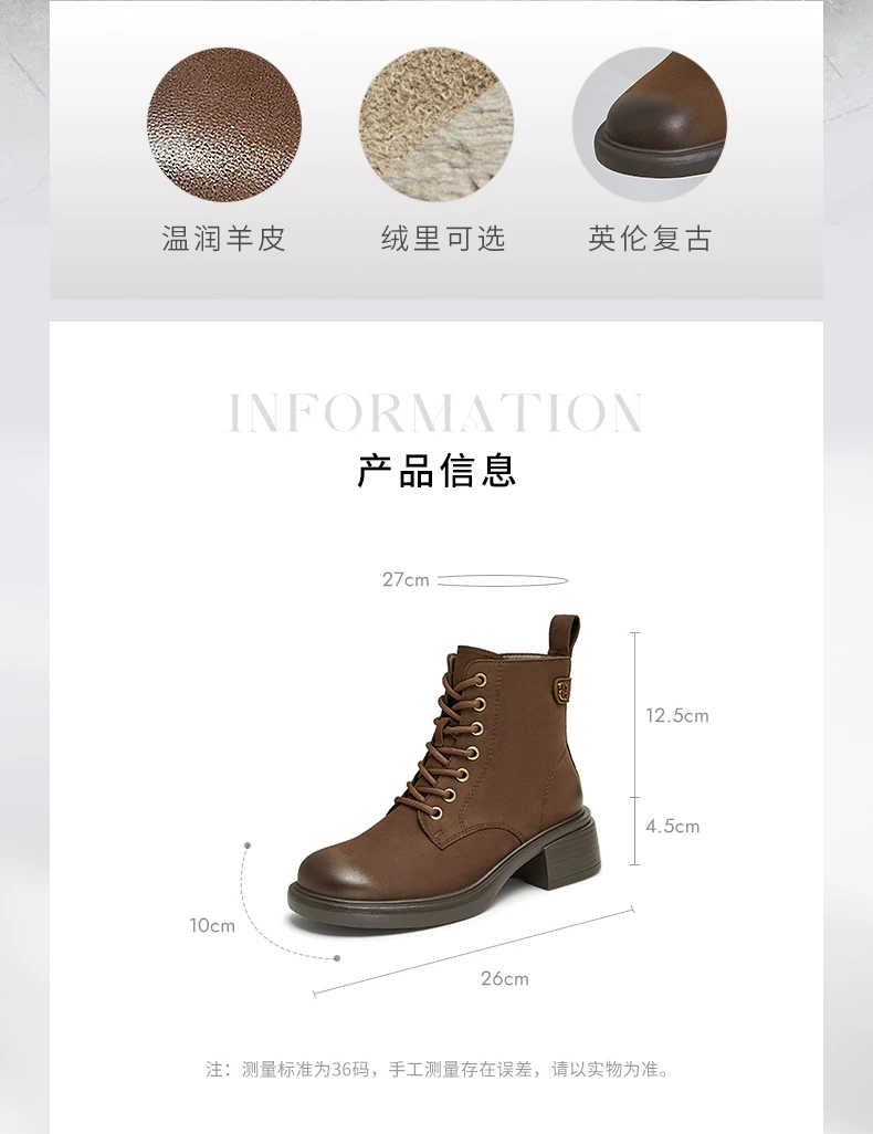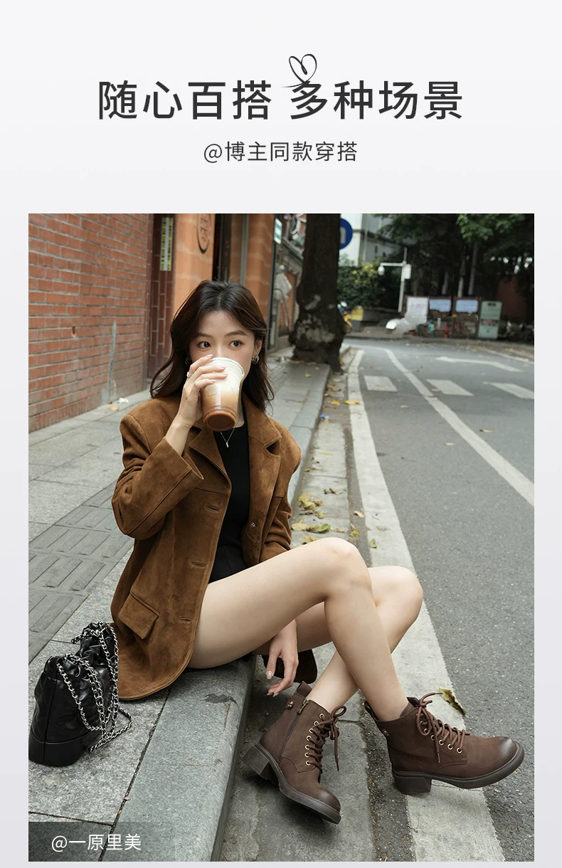 - TATA giày bốt mùa đông của anh ấy/phụ nữ cùng phong cách thời trang giản dị Giày bốt Martin nữ mới bốt ngắn WZQ02DD4