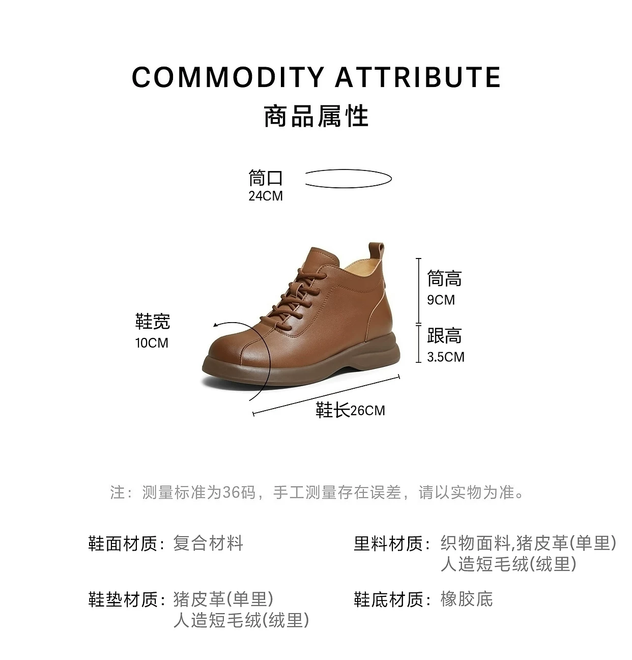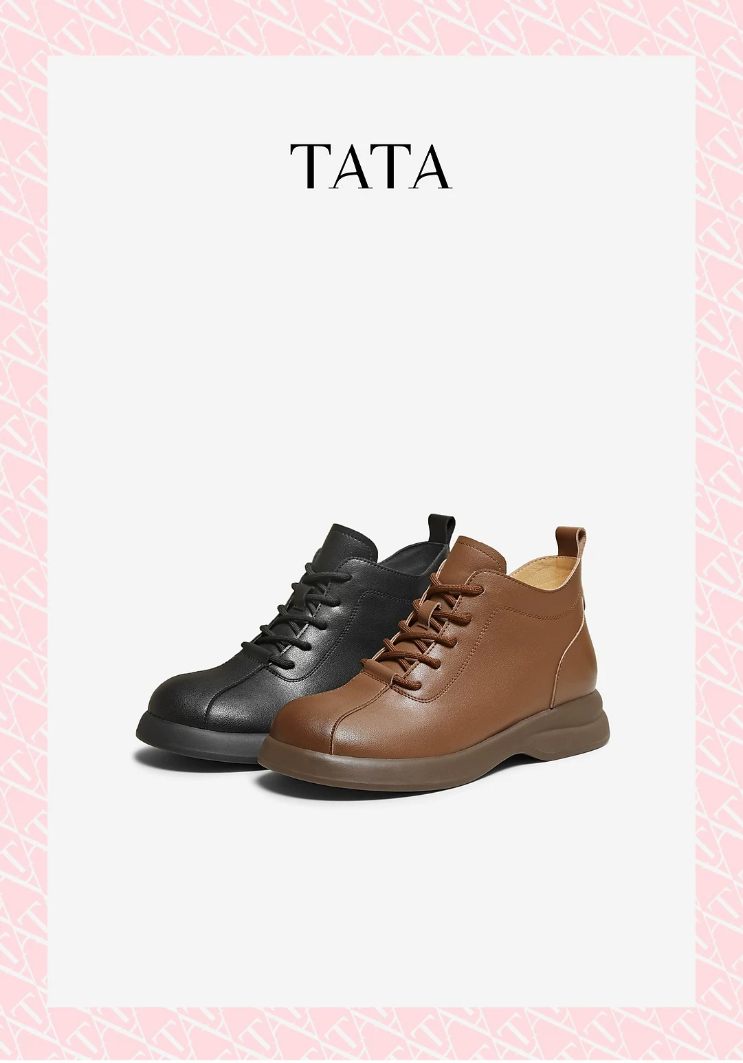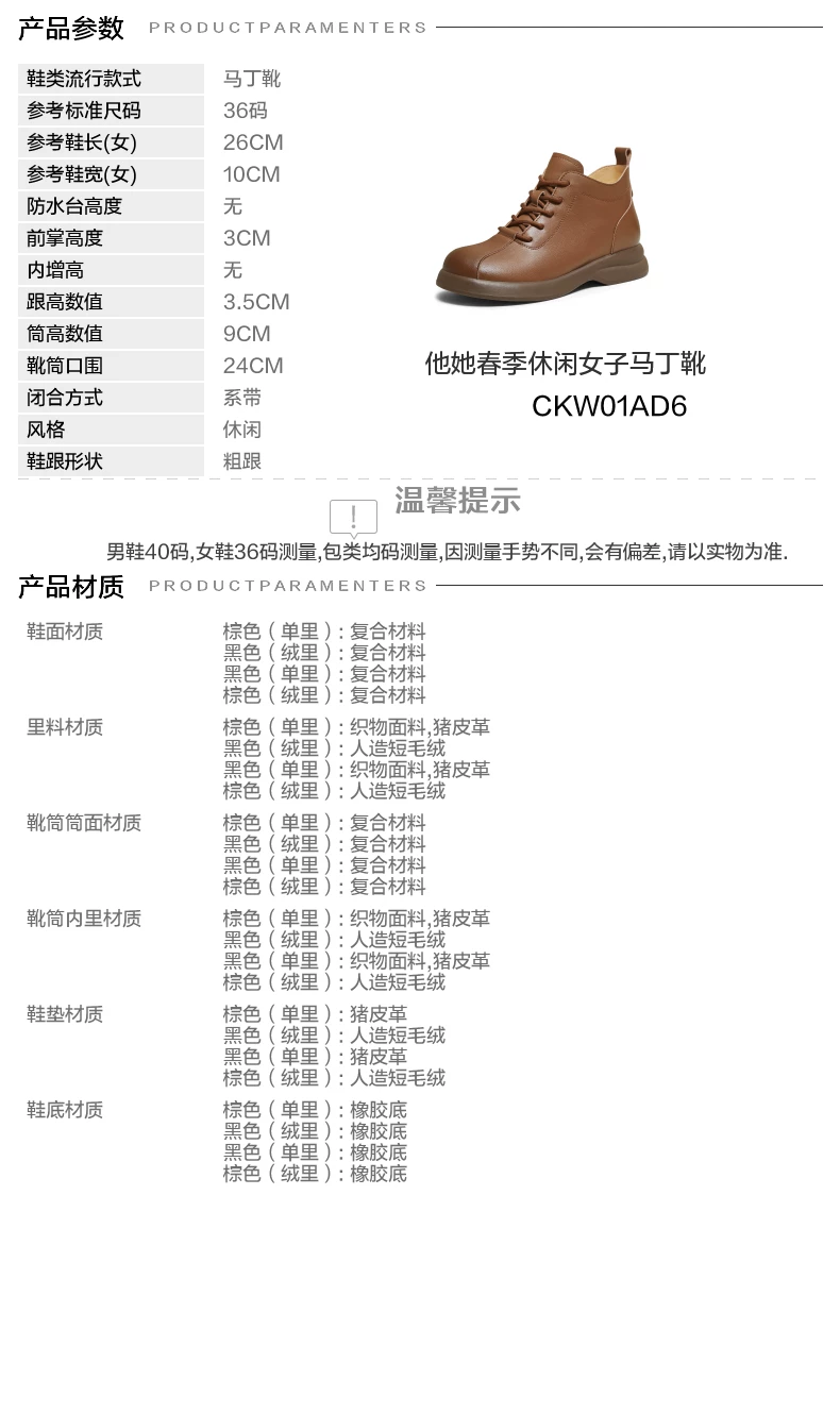 - TATA giày bốt ngắn mùa xuân 2026 mới dành cho nữ giày bốt Martin đế dày lót lông màu nâu CKW01AD6