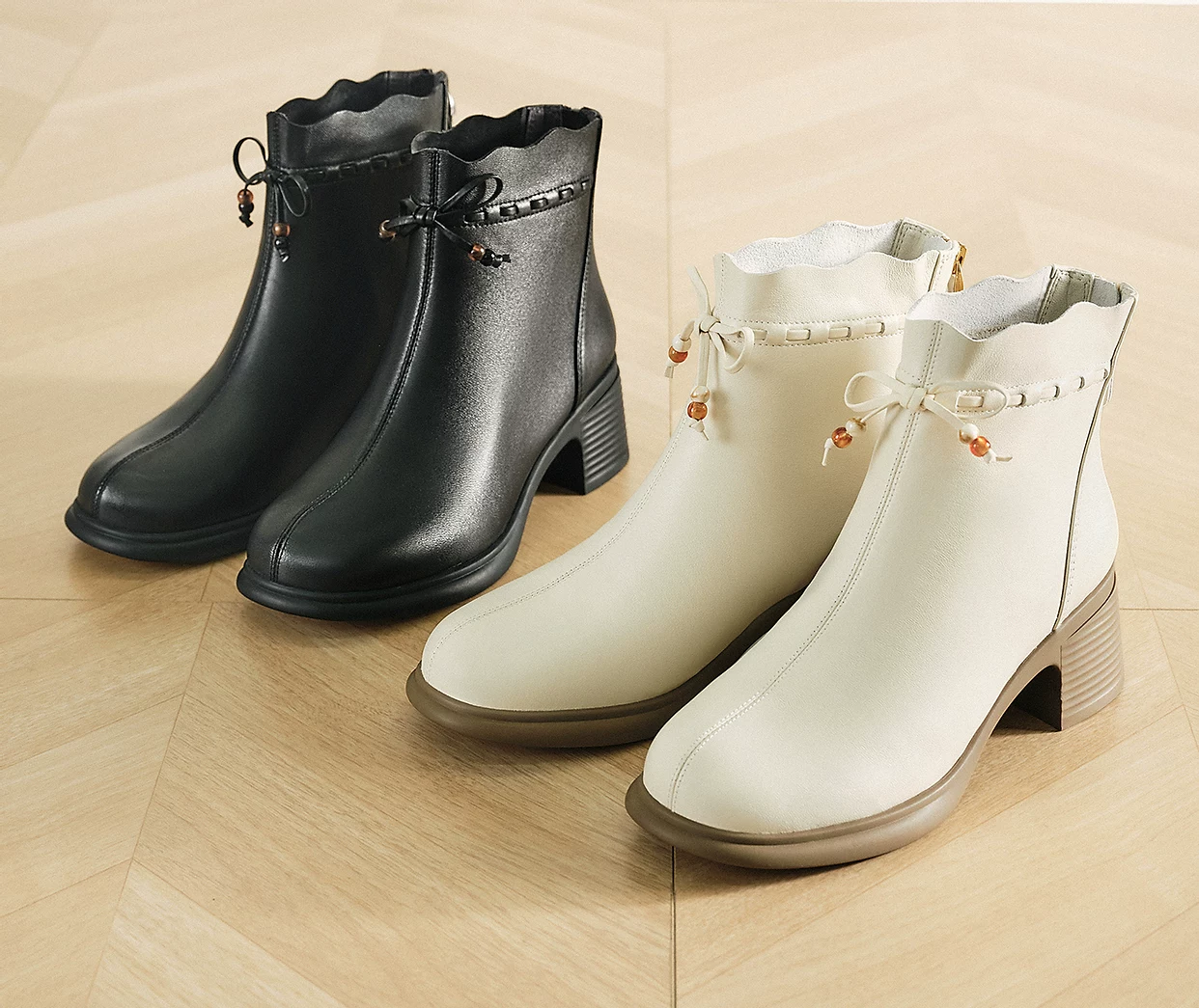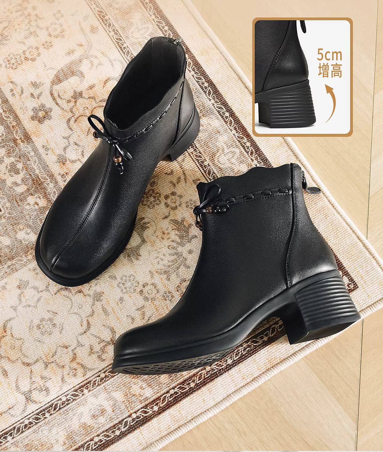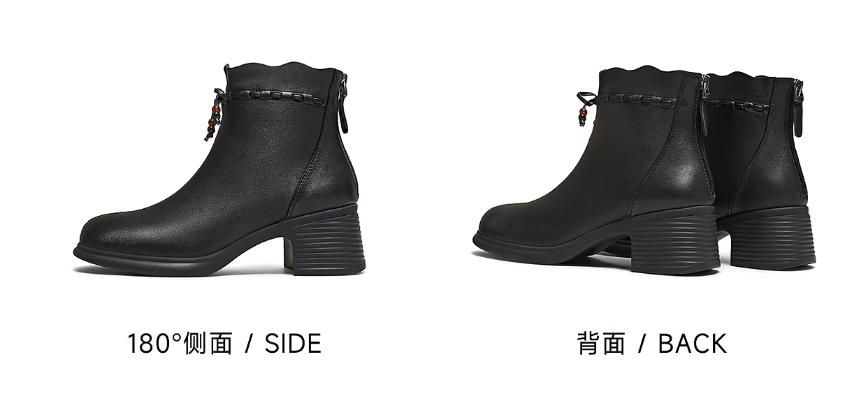 - TATA giày bốt thời trang mùa đông 2025 bằng da cừu có lông cừu Giày bốt da ngắn màu đen Giày bốt đế dày mỏng 7A540DD5