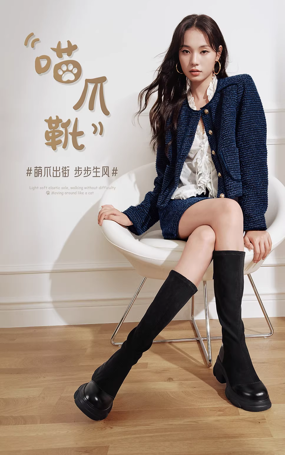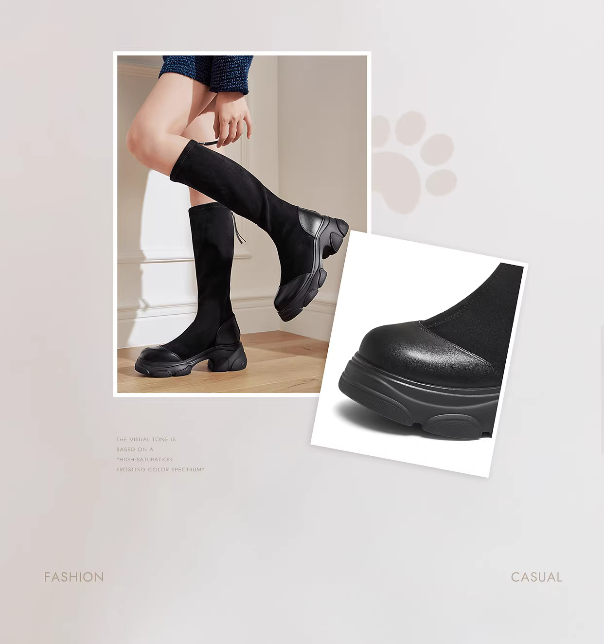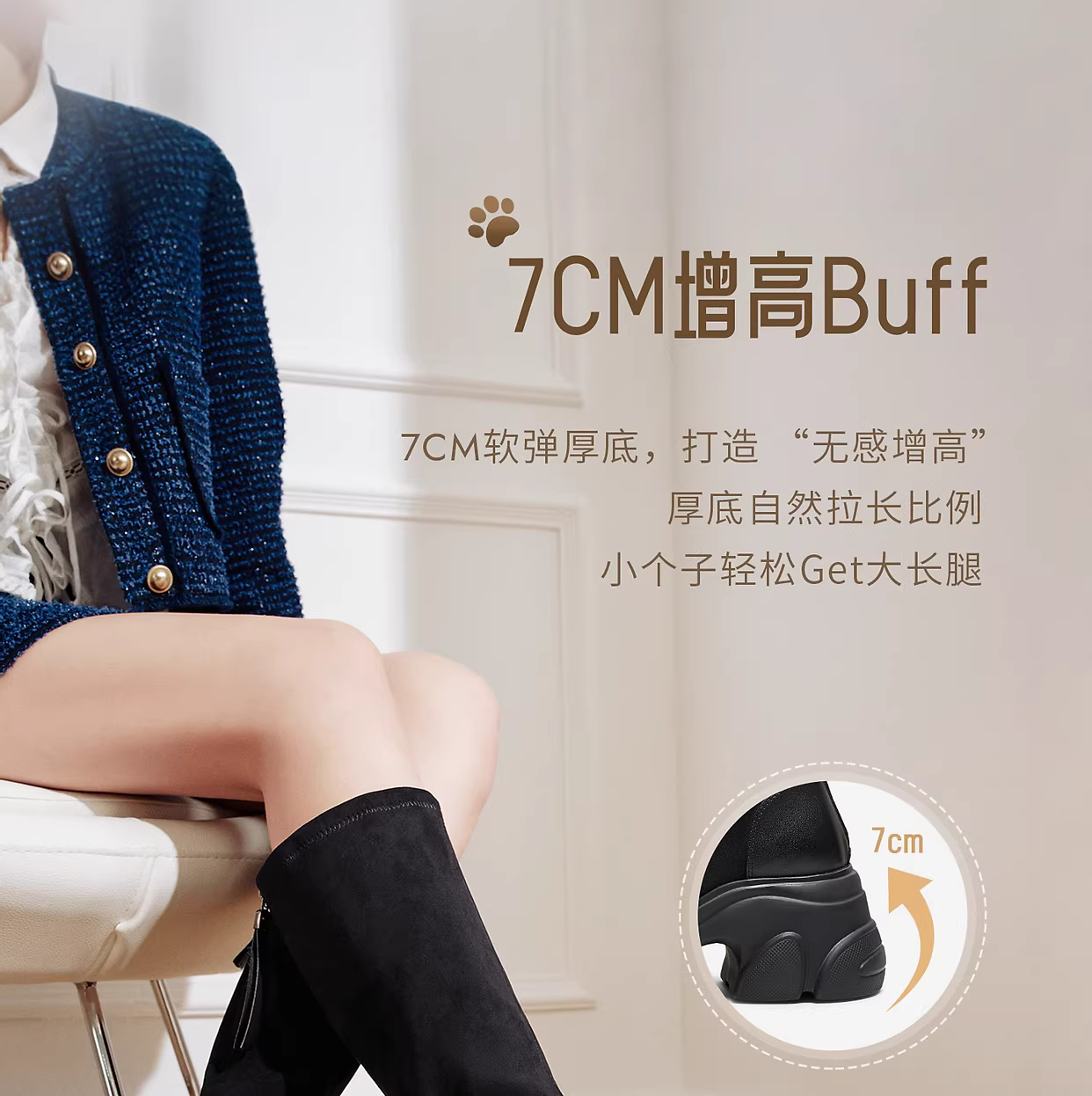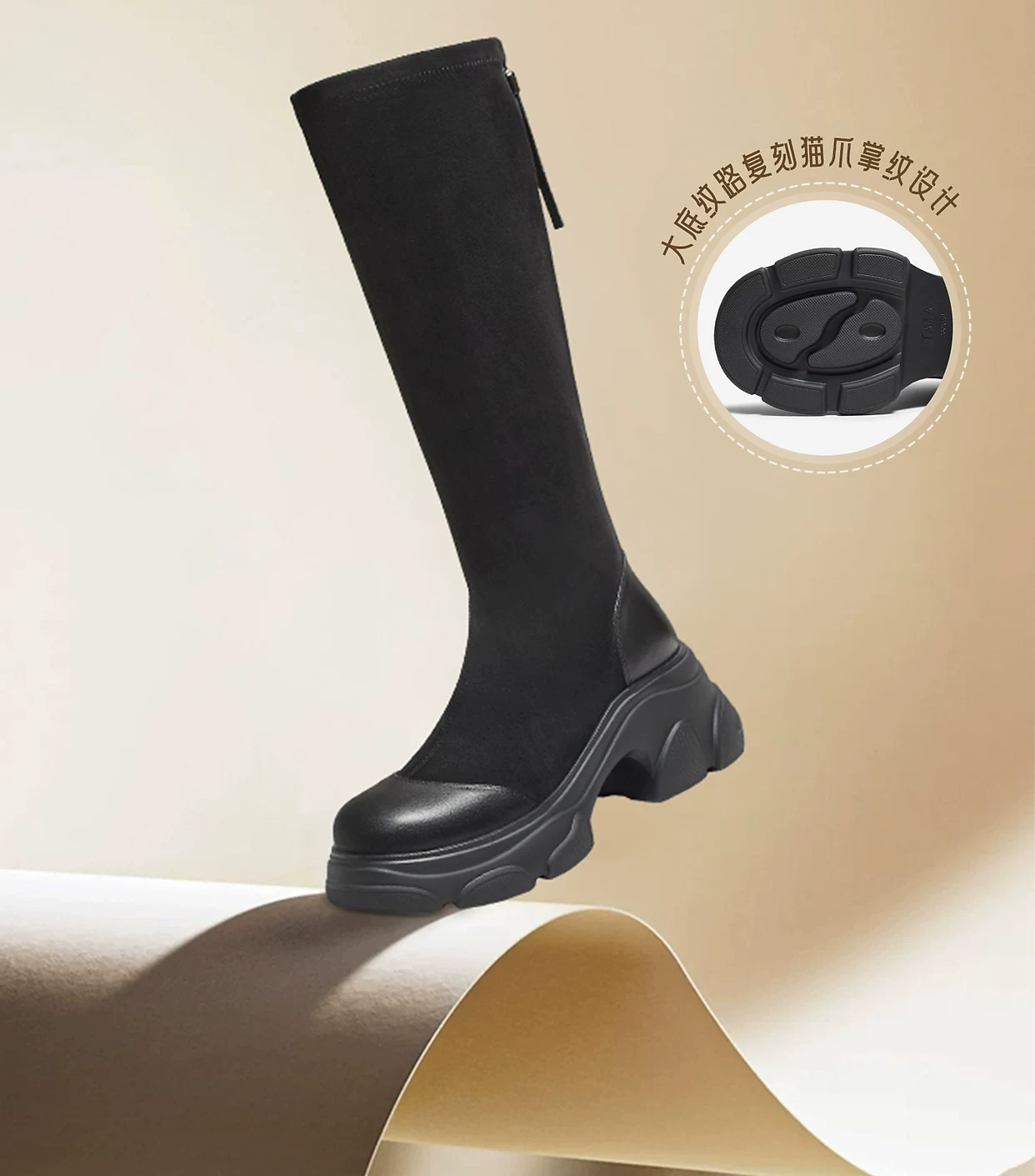 - TATA heermao giày bốt đế dày dài bốt nữ thời trang mùa đông bốt cao cổ bốt thon gọn co giãn CEG06DG5