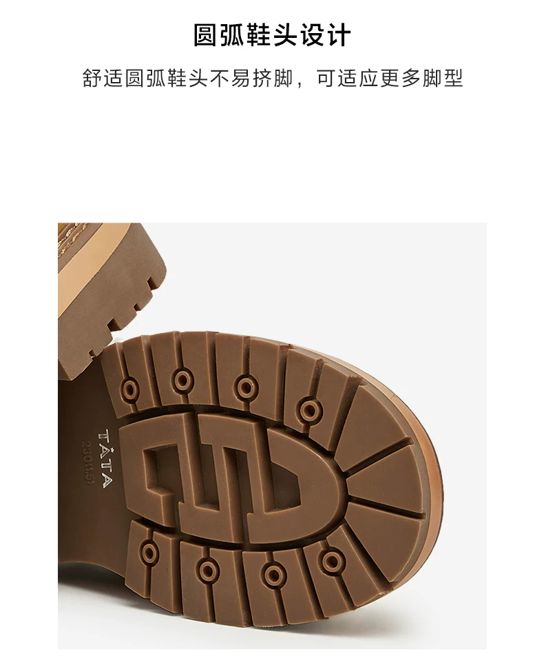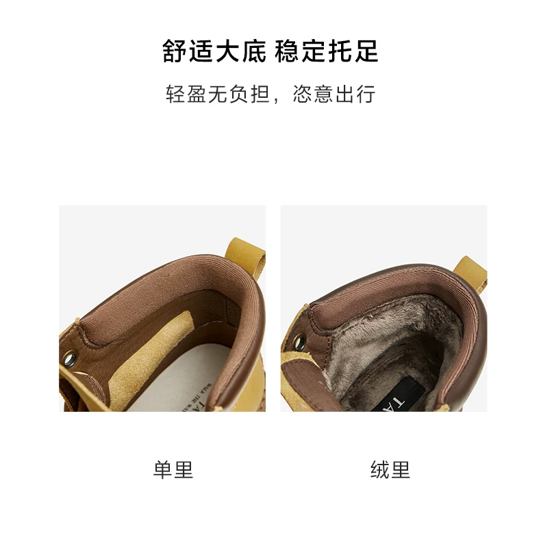 TATA Ngoài Trời Phong Cách Anh Quốc Giày Bốt Màu Vàng Giày Bốt Nữ Có Lớp Lót Lông Cừu Retro Giày Bốt Martin Giày Bốt Ngắn Mùa Đông Mới WZR01DD4