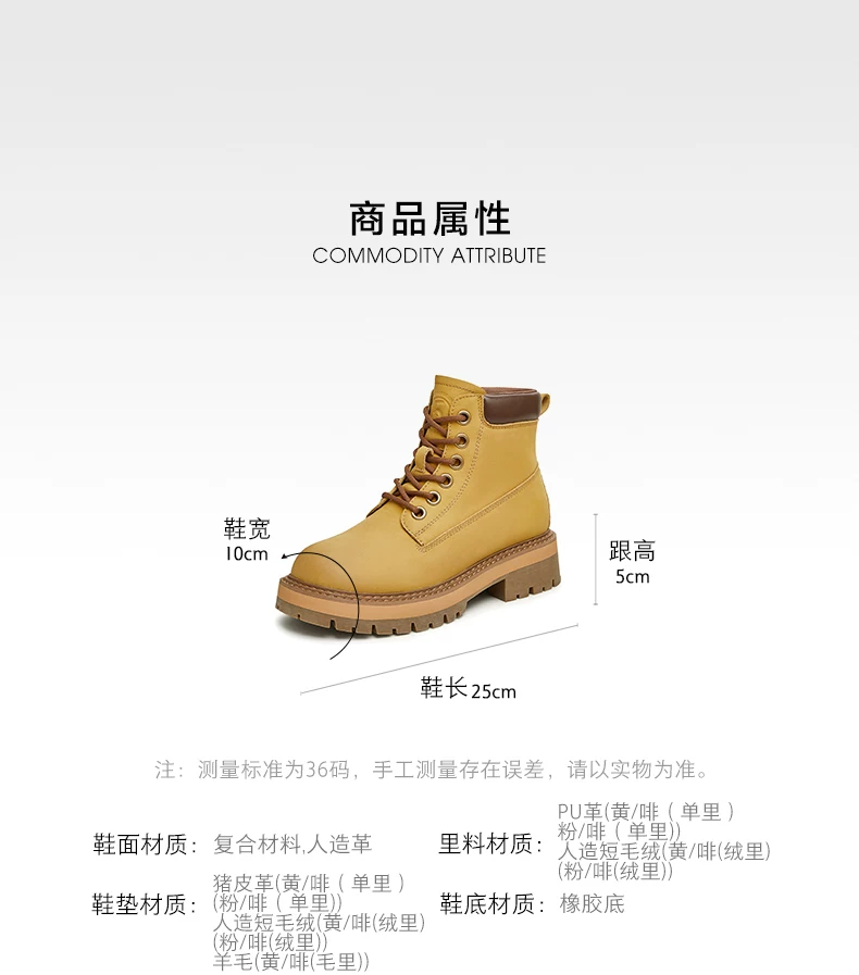 - TATA Ngoài Trời Phong Cách Anh Quốc Giày Bốt Màu Vàng Giày Bốt Nữ Có Lớp Lót Lông Cừu Retro Giày Bốt Martin Giày Bốt Ngắn Mùa Đông Mới WZR01DD4