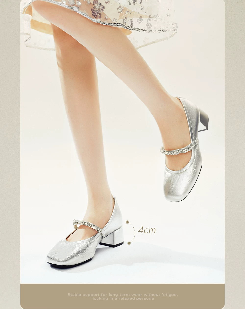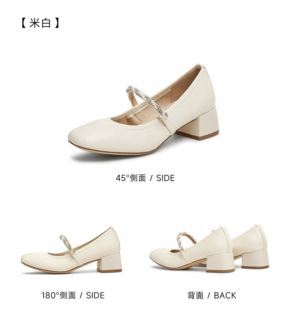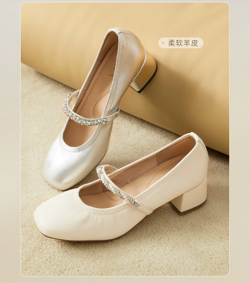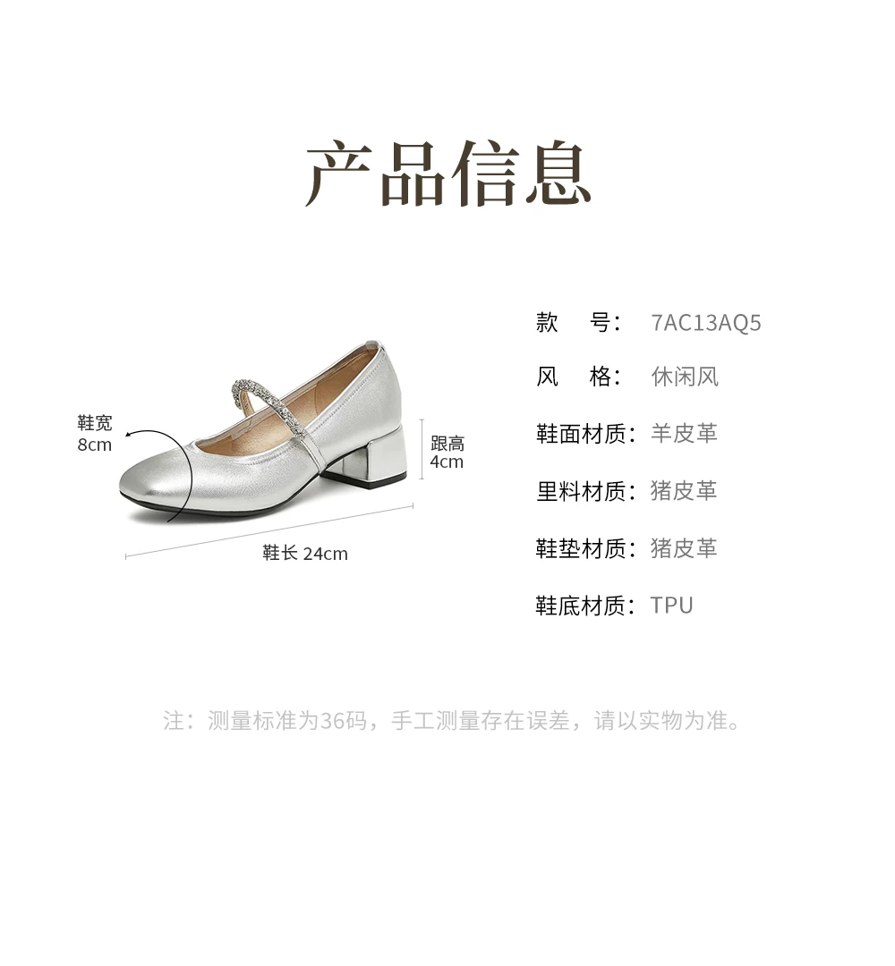 - TATA Sweetheart Mary Jane 2025 giày nữ mới da cừu gót nhọn giày đơn màu bạc giày da nhỏ 7AC13AQ5