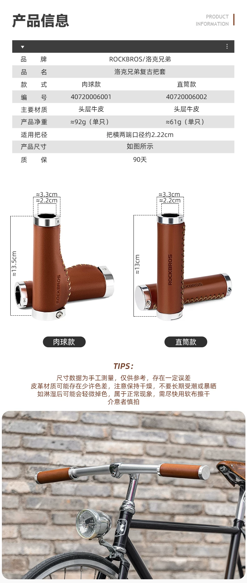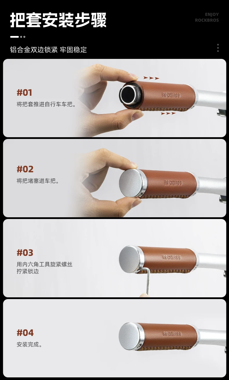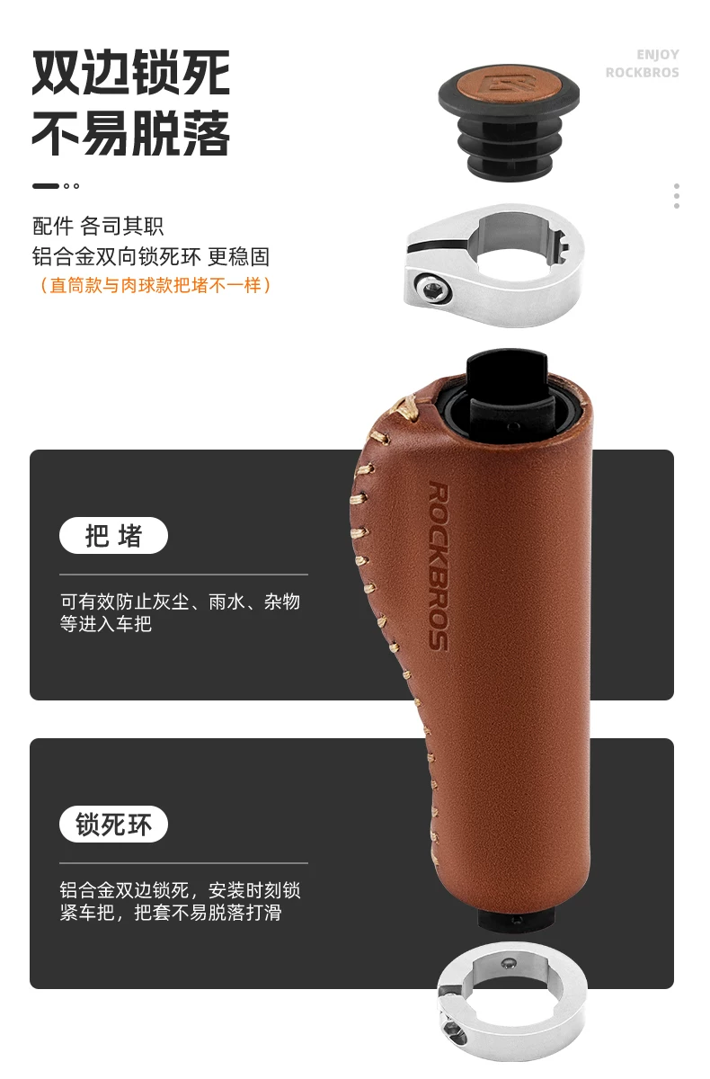 - Tay cầm xe đạp Rock Brothers, tay cầm xe đạp gấp du lịch leo núi bằng da retro, phụ kiện đi xe đạp, tay lái phụ